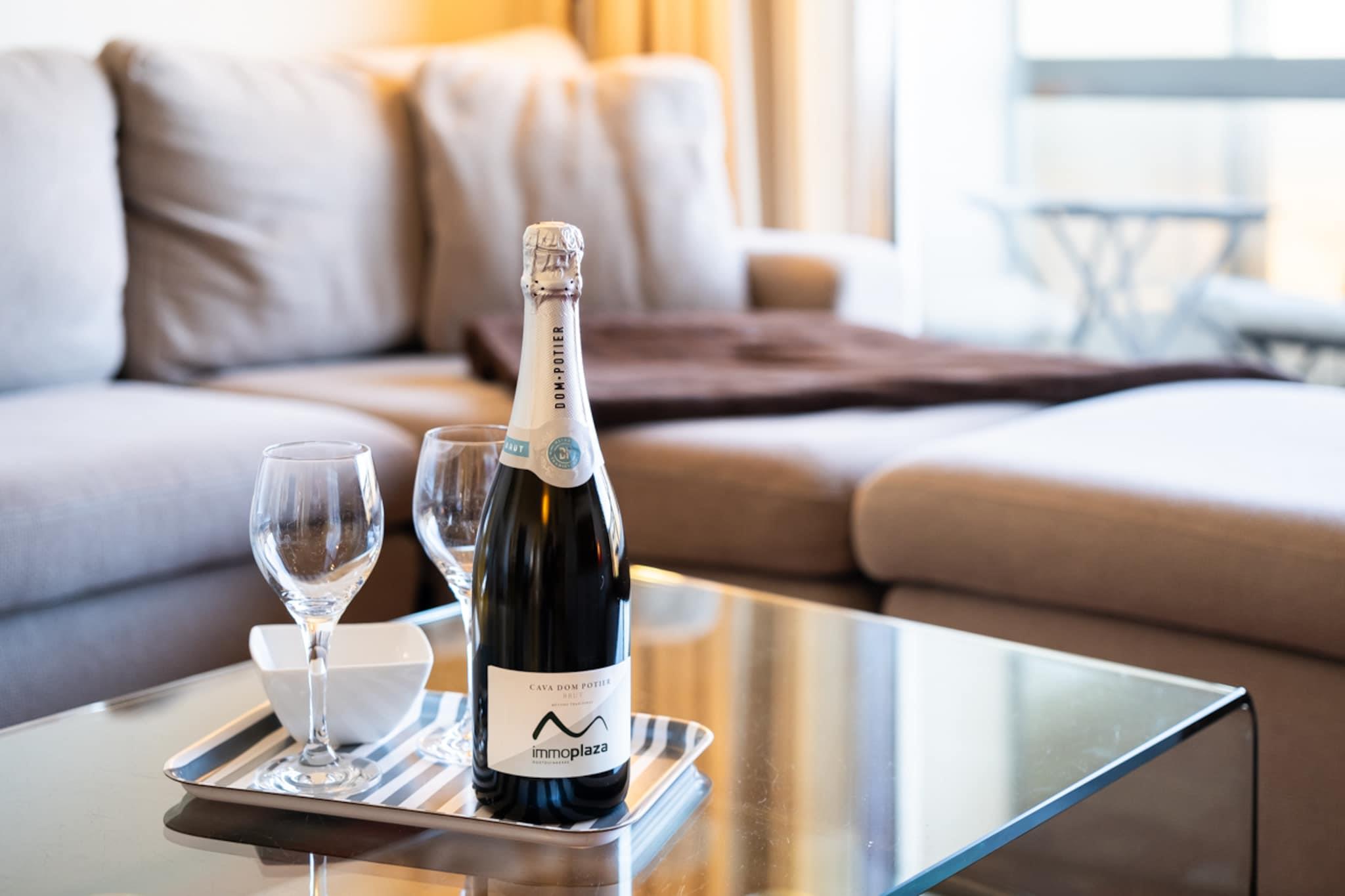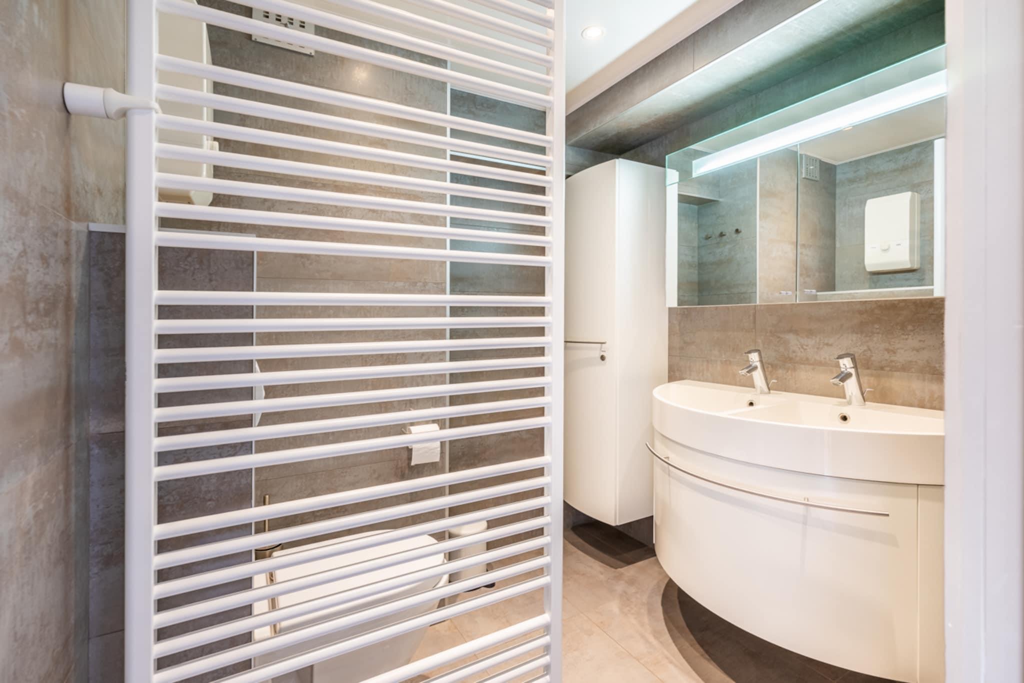 On the 2nd floor: (open kitchen(hob, hood, coffee machine, oven, microwave, dishwasher), Living/diningroom(TV(flatscreen, digital), dining table, seating area, balcony), bedroom(double bed(twin duvet, 160 x 200 cm), balcony), bedroom(bunk bed(duvet), bunk bed(duvet), balcony), bathroom(shower, washbasin, washbasin, toilet)) heating(electric), parking, lift