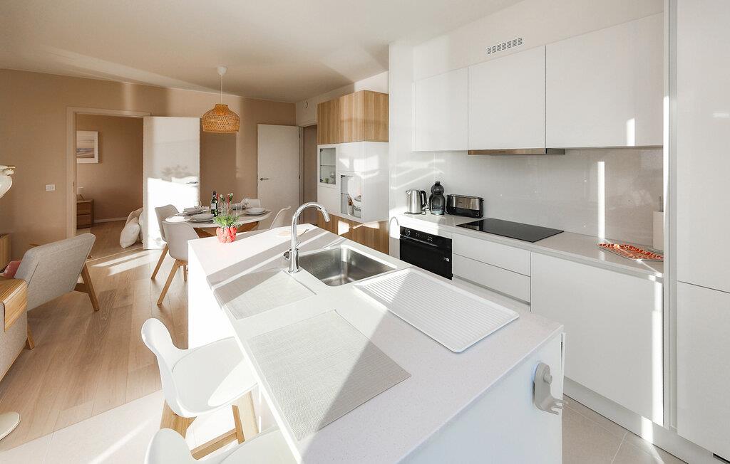 Diese helle und geschmackvoll eingerichtete Ferienwohnung im 10. Stock bietet Ihnen ein behagliches Refugium für eine entspannte Auszeit am Meer. Zaubern Sie kulinarische Highlights und nehmen Sie für harmonische Mahlzeiten im lichtdurchfluteten Wohnbereich Platz. Machen Sie es sich abends im einladenden Wohnzimmer gemütlich, streamen Sie einen Film oder vertiefen Sie sich in ein gutes Buch.