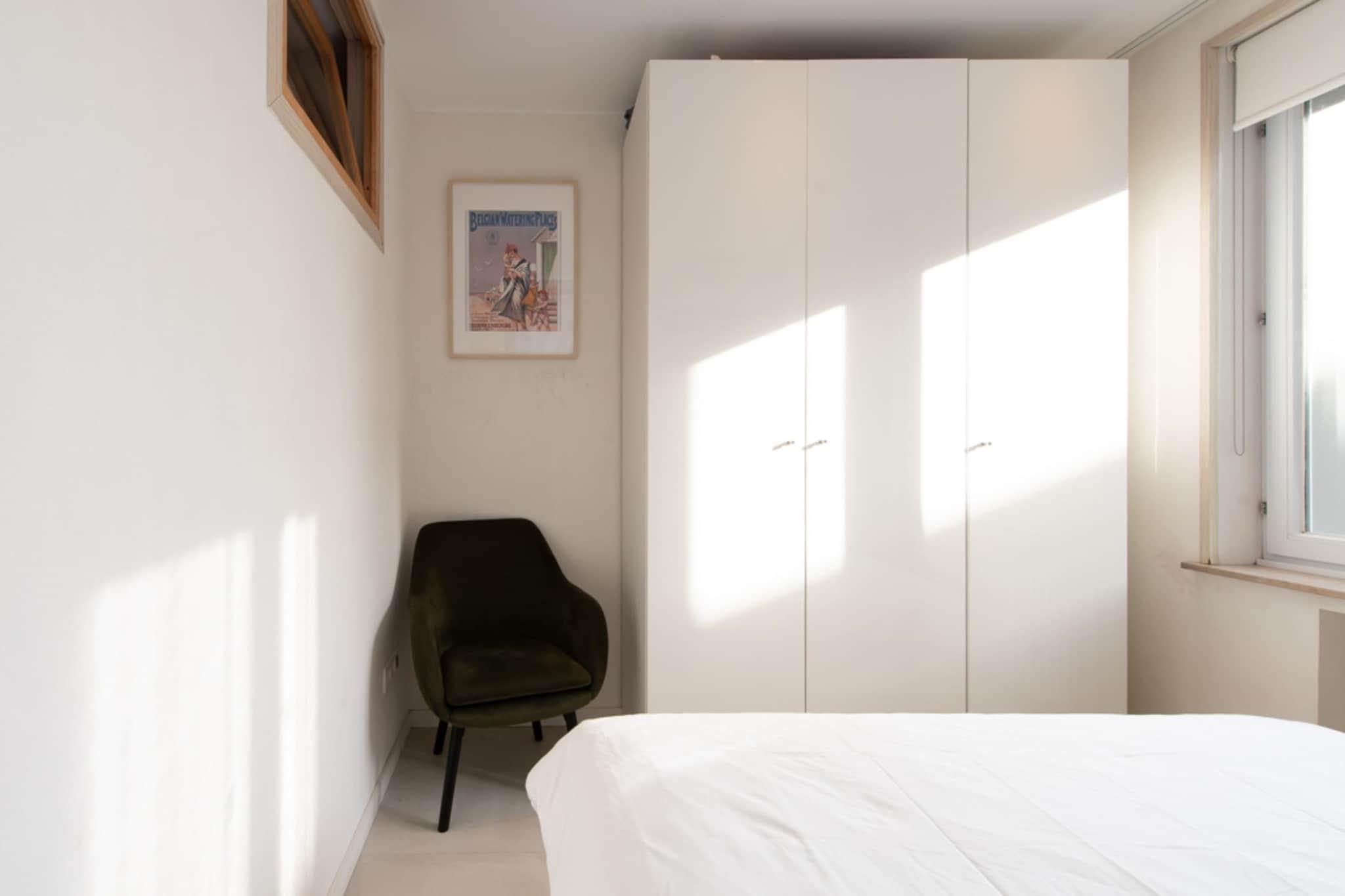 This cozy, well-appointed 1-bedroom apartment is located on the 7th floor of a building next to the Albert I Promenade and offers a beautiful sea view. With modern amenities such as WiFi, digital TV and a dishwasher, it offers everything you need for a pleasant stay. The apartment offers an open view of the sea and the breakwater and is a short walk from the city center, shopping streets, Casino Kursaal, restaurants and the Visserskaai. The living room has a comfortable sitting area with coffee table, side table and digital TV with DVD player. The open kitchen with sea view is fully equipped with an oven, microwave, kettle, toaster, blender, fridge-freezer, dishwasher, Dolce Gusto, traditional coffee maker and induction hob. For coffee lovers, there is also a cafetière. The bedroom has a double bed with duvet for 2 people. There is also a sleeping area with a bunk bed for 2 people. The apartment has a bathroom with shower, hairdryer and single sink, and for extra convenience there is a separate toilet. Small pets are welcome. The building is non-smoking and has an elevator for easy access to the seventh floor.