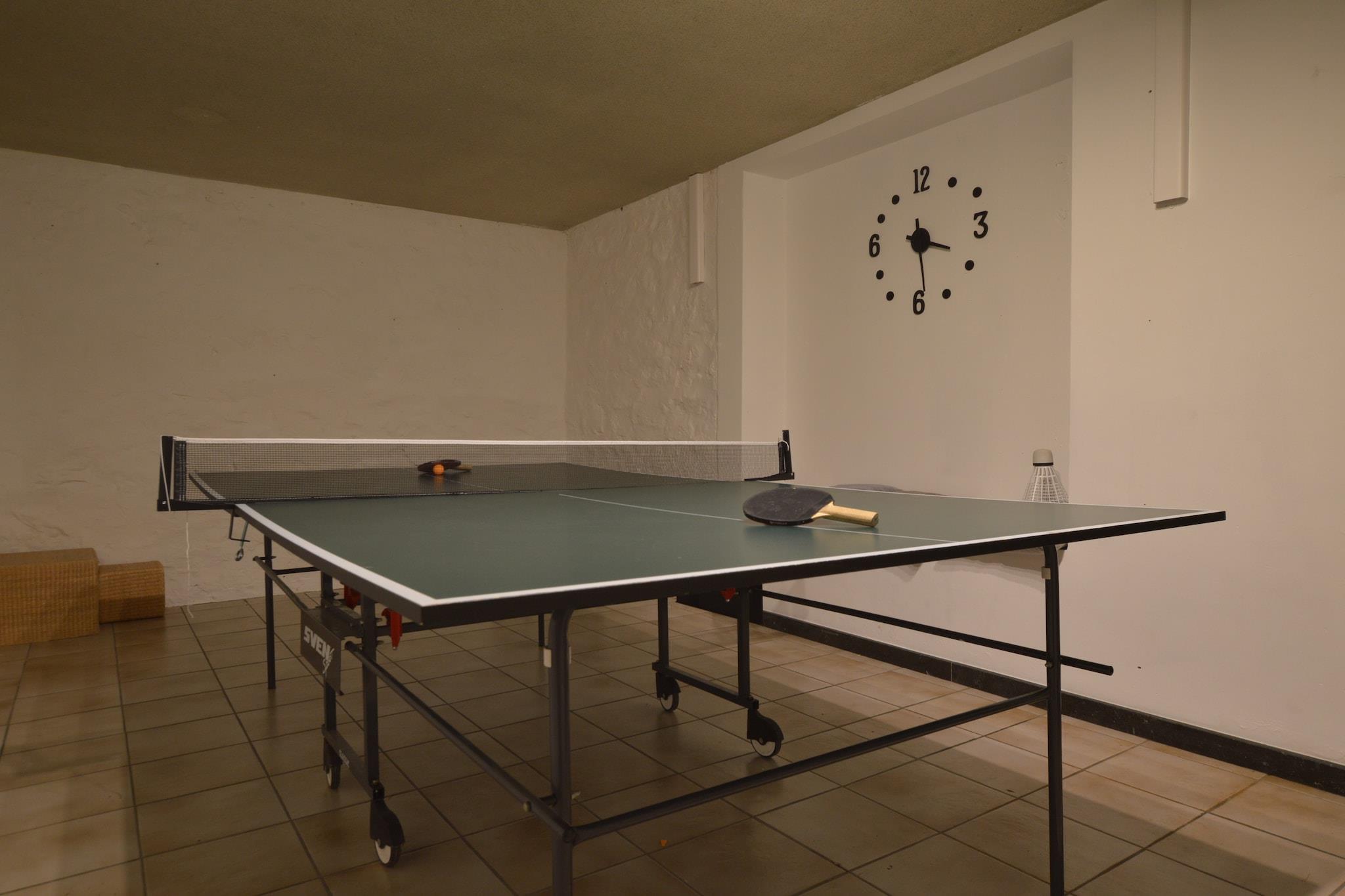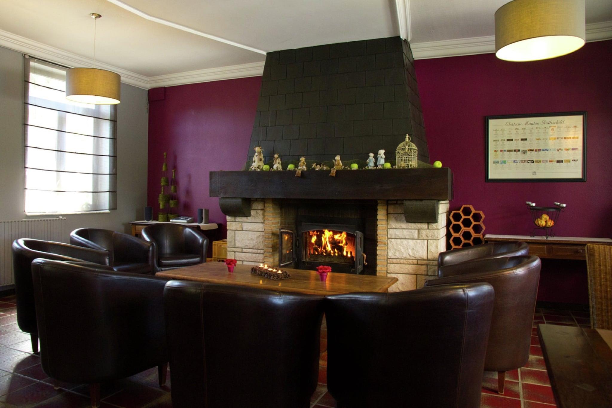 This spacious holiday home in Theux Ardennes is located in the village of Pollour near Spa and has 12 bedrooms making it ideal for big groups up to 24 people. The cosy living room and dining room with fireplace guarantee beautiful moments with friends or family. You can make beautiful hikes in between the valleys, the forests and the Fens. You're about 10 km away from Spa, the city with its terms, pleasant boutiques and restaurants, which is certainly worth a visit. The supermarket is 6 km away from the house. A golf course is at a distance of 5 km. The house comes with a greenhouse and offers a view over the garden. The comfortable rooms are equipped with good beds and private bathrooms, two of which have a bubble bath. On your days indoor you can play table tennis and table football. The nearest airport Charleville-Mézières Airport, 8 km away.