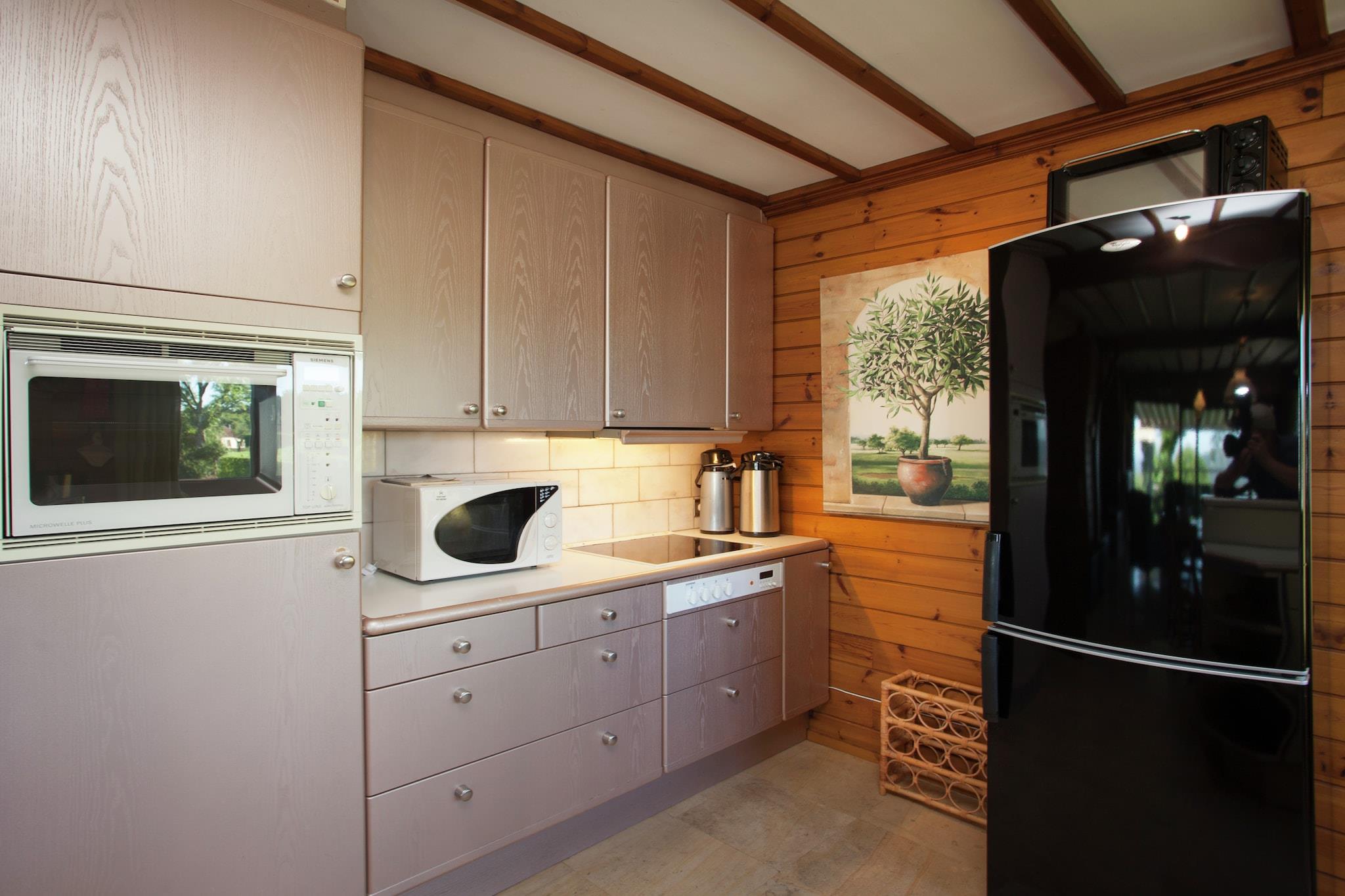 Sitting room(TV(satellite), DVD player, CD player, stereo unit), Sitting room(fireplace), dining room(dining table(8 persons)), open kitchen(bar, cooker(4 ring stoves, electric), coffee machine(filter), oven(grill-oven), combination microwave, dishwasher, fridge(+ freezer), freezer, high chair), bedroom(double bed(twin duvet)), bedroom(bunk bed(duvet)), bedroom(double bed(twin duvet)), Bedroom with bathroom(double bed, bunk bed(duvet), shower, washbasin, toilet), bathroom(shower(unit), 2x washbasin, toilet), pantry, garage, tumble dryer, washing machine, balcony, heating(central), terrace(40 m2), terrace(30 m2), garden(partially fenced, > 1000 m2), bicycle storage, garden furniture(10 persons), BBQ, deckchairs, parasol, boules court, table tennis table