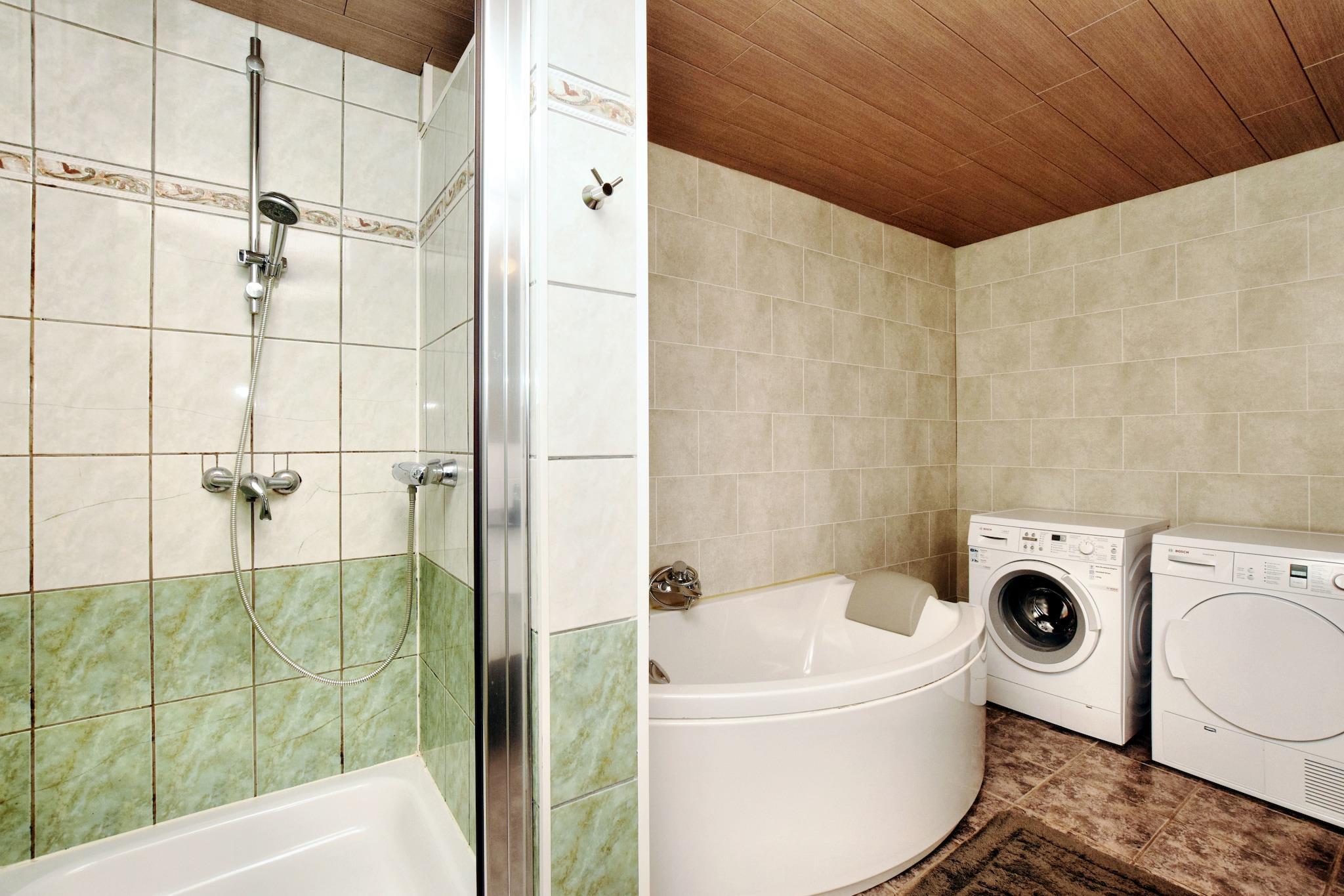 Ground floor: (hallway, Kitchen(cooker(4 ring stoves, ceramic), coffee machine(filter, pads), oven, oven(steam), microwave, dishwasher, fridge(american), 2x high chair), Living/diningroom(TV(satellite), dining table(14 persons), DVD player, radio, CD player, stereo unit), bedroom(double bed), Bedroom with bathroom(2x single bed, double bed, tumble dryer, bath tub, shower, washbasin, washing machine), toilet) On the 1st floor: (bedroom(double bed), bedroom(double bed), bedroom(double bed), bedroom(double bed, children's bed), bathroom(bath tub, shower, 2x washbasin), toilet) Basement: (sauna(shower), swimming pool(private, roofed, 10 x 5 m.)) heating(central), terrace(32 m2), garden(fenced), garden furniture, BBQ, parking, parasol