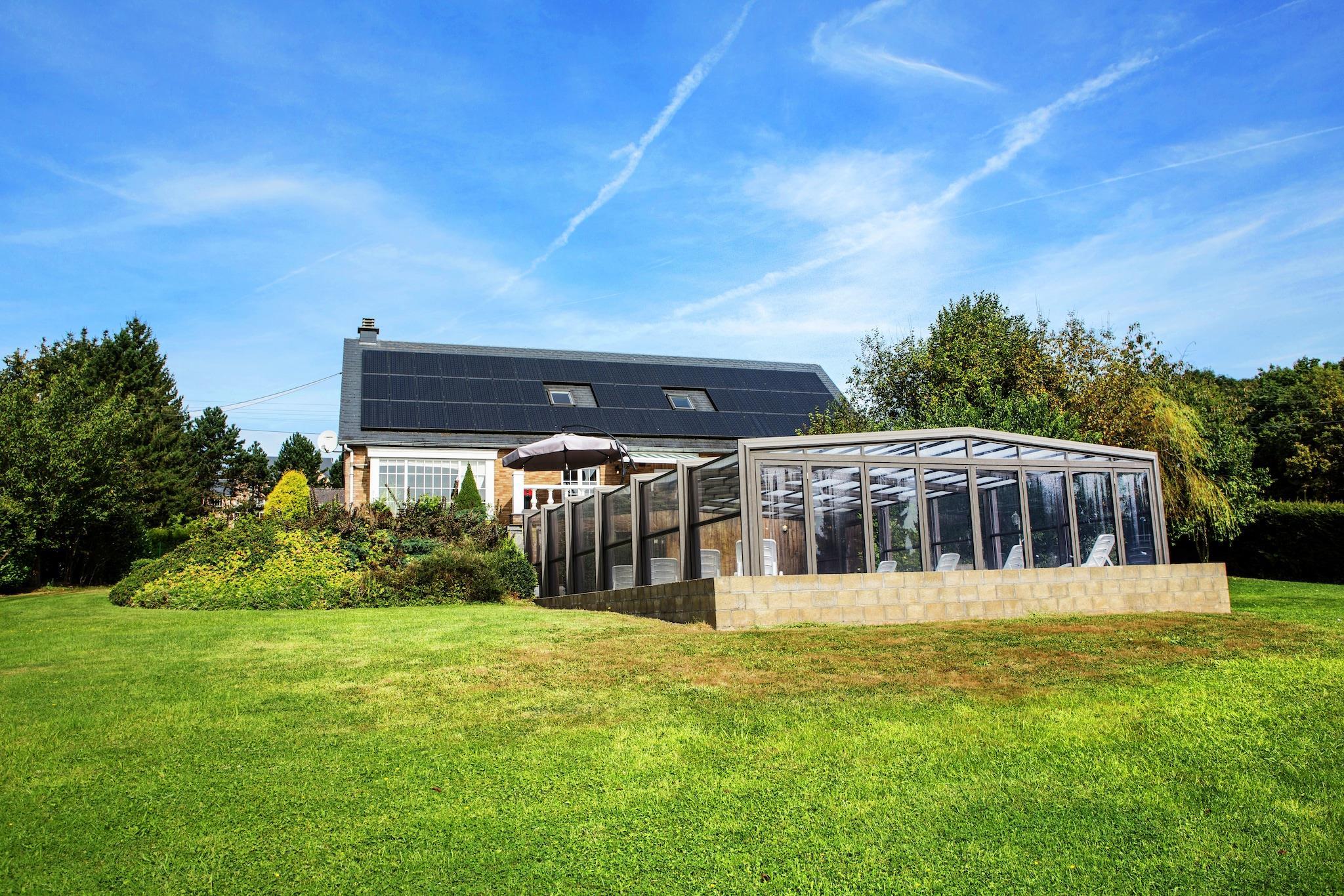 Located in a quiet residential area near Durbuy, this modern 6-bedroom villa offers a luxurious stay for up to 14 guests. With a private indoor swimming pool, sauna, and spacious garden, it’s perfect for families or groups seeking comfort and relaxation in the Ardennes. The villa features a bright living and dining area with a cozy sofa and fireplace, a fully equipped kitchen, and a dining table for 14. The well-made beds, towels, and shower gel provide a hotel-like welcome. Step outside to enjoy the large terrace with barbecue and panoramic views of the surrounding greenery. The forest is within walking distance, and the village of Septon with shops and a supermarket is just 3 km away. Explore Durbuy, Durbuy Adventure Park, and the Barvaux golf course, all nearby. Note: A EURO25 fee applies for check-ins after 6 PM. Pets: 2 allowed for a small fee.