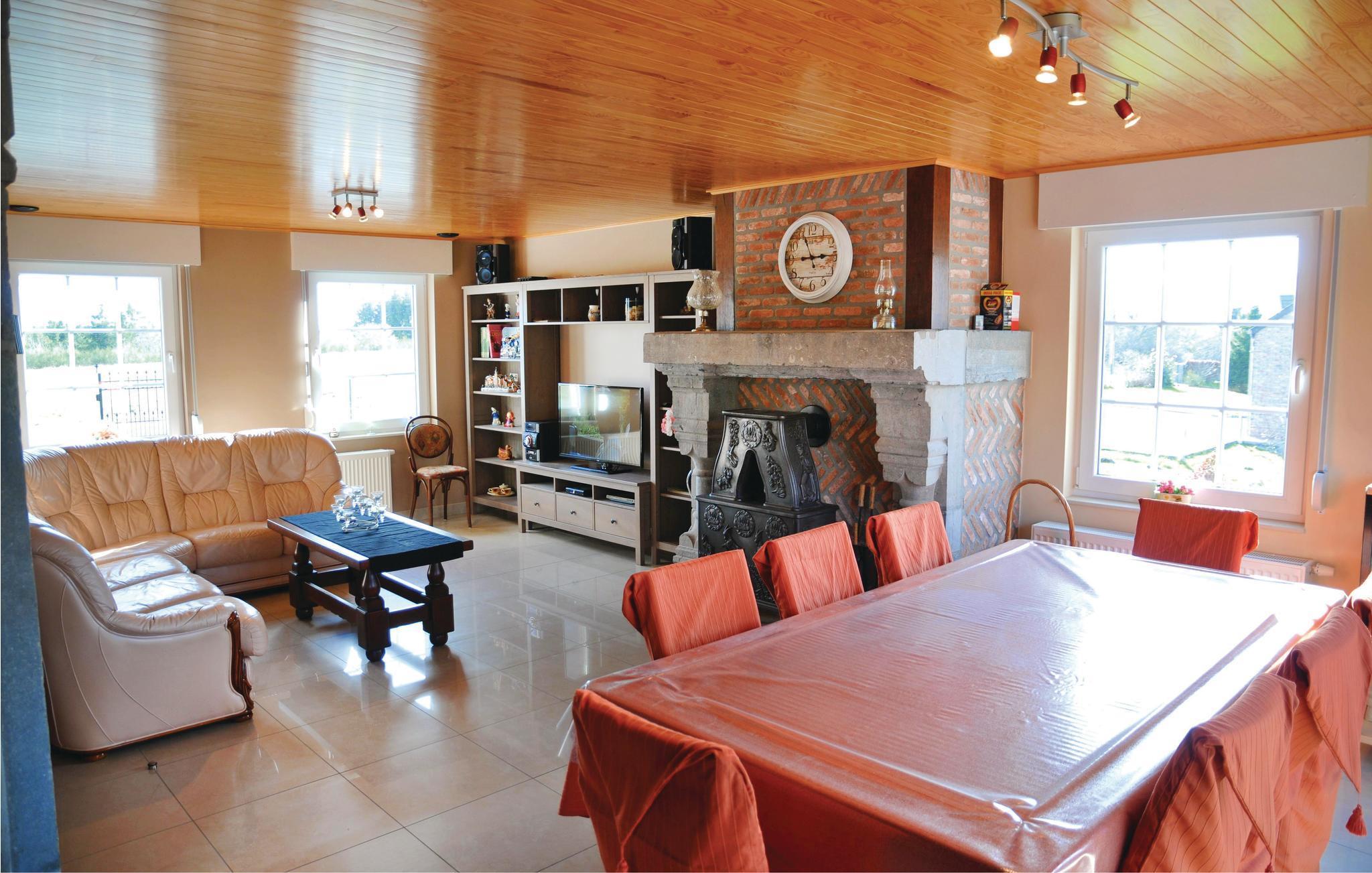 Das Ferienhaus Morice steht in Hanglage in einem Wohngebiet in der Nähe von Durbuy. Sie haben hier einen herrlichen Blick auf die umliegende hügelige Landschaft. Durbuy, die kleinste Stadt der Welt, ist 12 km entfernt, Rochefort 20 km und Dinant etwa 40 km. In dieser Region können Sie wirklich eine Menge unternehmen und erleben: Kajak fahren, Mountainbike fahren, Wandern, Reiten und die vielen berühmten Sehenswürdigkeiten besuchen, wie etwa die Grotten von Han, Rochefort und Hotton, die Zitadellen von Dinant und Namur, die Burgruine von La Roche, das Hare-Krishna-Schloss in Durbuy, die Brauerei von Maredsous und die Gärten von Annevoie. Für Familien ist das Chevetogne Freizeitgebiet ein absolutes Paradies. Hier gibt es nicht weniger als 12 Spielplätze, Ruderbootfahren auf den kleinen Seen, Liegewiesen, 3 Schwimmbäder und einen Streichelzoo. Dies alles haben Sie ganz in der Nähe, und doch ist Ihre Unterkunft besonders schön ruhig gelegen. Es gibt noch einige weitere Häuser in der Gegend, aber die Grundstücke sind so groß, dass man kaum von direkten Nachbarn sprechen kann. Im Dorf können Sie Bio-Produkte direkt vom Bauern kaufen. Versuchen Sie sich auch im Bauerngolf, einer vergnüglichen, flämischen Variation des normalen Golfspiels. Ihr Ferienhaus ist erst vor Kurzem fertiggestellt worden und ist mit allem Komfort ausgestattet. Von dem großen Wohn- und Essbereich im Erdgeschoss betreten Sie eine große Sonnenterrasse. Auch befinden sich auf dieser Etage noch ein Schlafzimmer und ein Badezimmer. Im ersten Stock befinden sich vier Schlafzimmer mit jeweils einem Doppelbett (140 cm breit) sowie ein Schlafzimmer mit einem Einzelbett. Im Untergeschoss befinden sich die Garage und ein Spielzimmer mit Kicker, Billardtisch und einem Fernseher mit X-Box. Von da haben Sie Zugang zu dem eingezäunten Garten über eine weitere, überdachte Terrasse. Das Ferienhaus Morice ist eine wunderbare Unterkunft für einen Urlaub mit mehreren Familien.