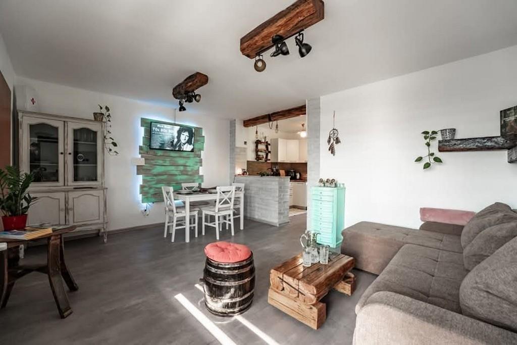 Apartment can accommodate 4 guests. Beds are situated in 1 sleeping rooms, but also in the living room, within 59m2. Guests can use a private terrace to enjoy the warm summer evenings. Food can be prepared using barbecue which is shared with other guests too. This accommodation unit welcomes pets at an additional charge.