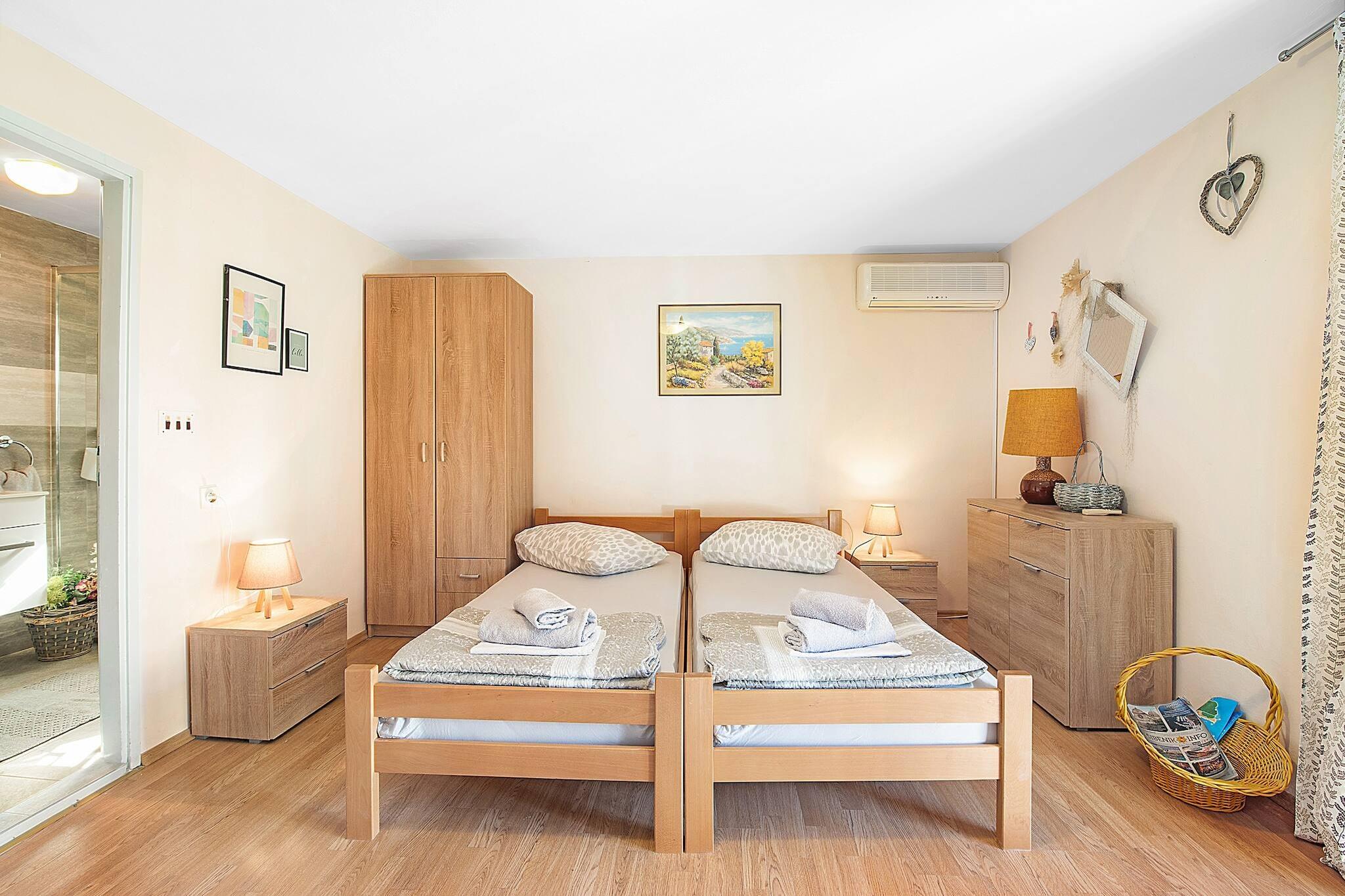 This charming 45 m² apartment in Šibenik-Brodarica is the perfect choice for families or small groups, offering comfortable accommodation for up to three guests. The apartment features a cozy bedroom with two single beds and a convenient sofa bed in the living area. It also includes a private entrance, air conditioning, and a lovely balcony with garden views. Guests can enjoy essential amenities such as WiFi, a flat-screen satellite TV, and free parking on-site. Smoking is allowed, but pets are not permitted, and the apartment is not suitable for youth groups. A baby cot and high chair are available upon request. Located just 600 meters from both sandy and rocky Brodarica Beach, this apartment offers easy access to the crystal-clear Adriatic waters. The property is also within walking distance to a supermarket (400 meters) and the local Konoba Oceanik restaurant, perfect for dining out. For those looking to explore further, Krka National Park is just 17 km away, and the historic town of Šibenik is only 8 km away. The popular Aquapark Dalmatia is also close by, offering fun for the whole family. Split Airport is conveniently located 55 km away. Inside, the apartment boasts a fully equipped kitchen with a stove, oven, fridge, coffee machine, and essential kitchenware, making meal preparation easy and convenient. There is also a washing machine, a dining area, and a coffee/tea maker. For added safety and convenience, the apartment is equipped with a fire extinguisher and a first aid kit.