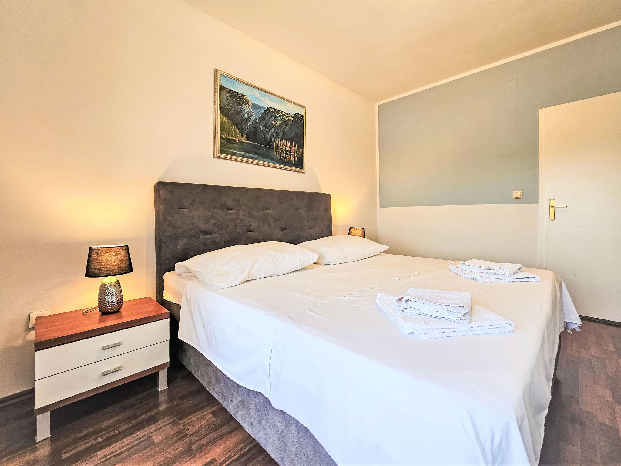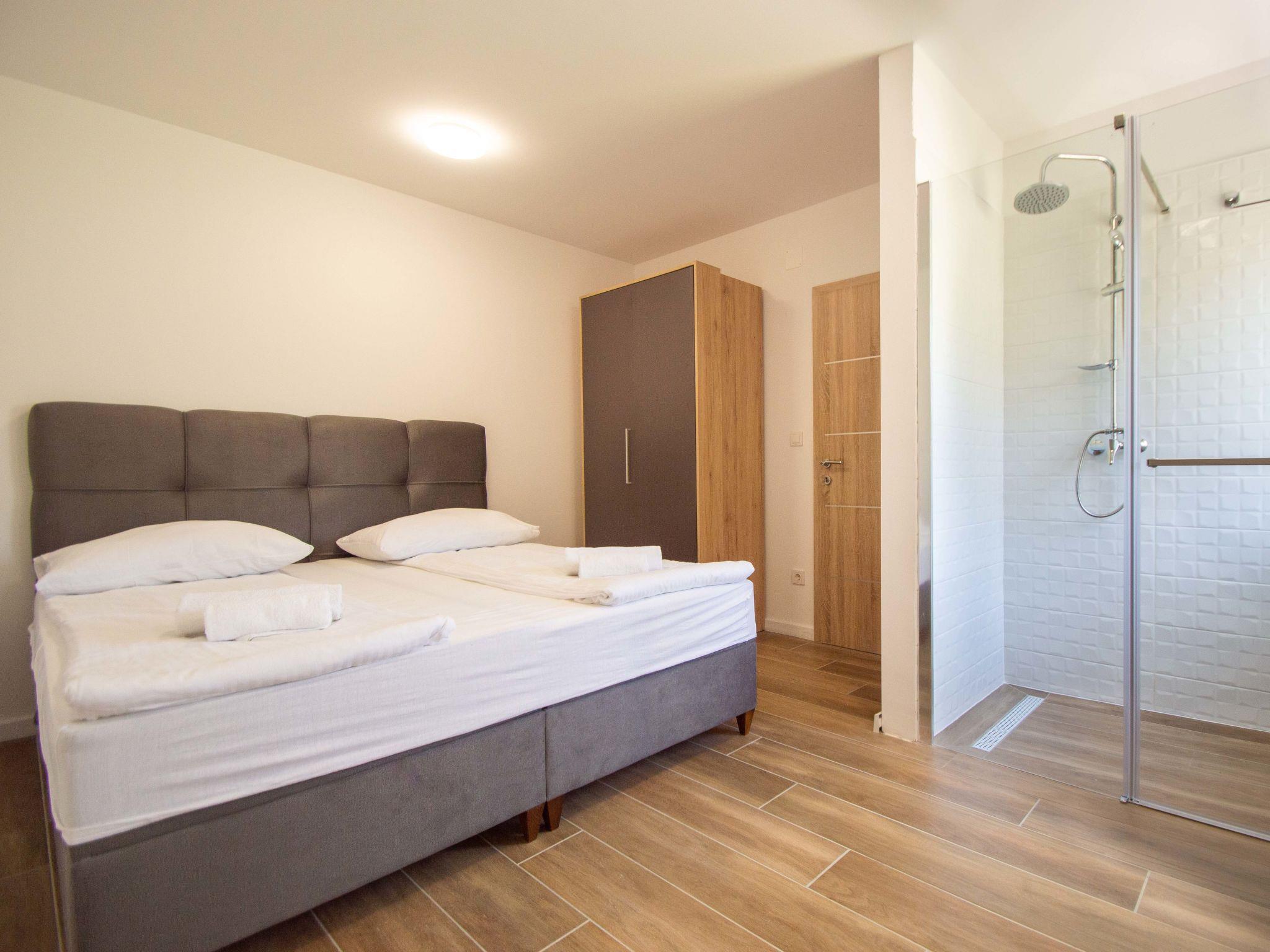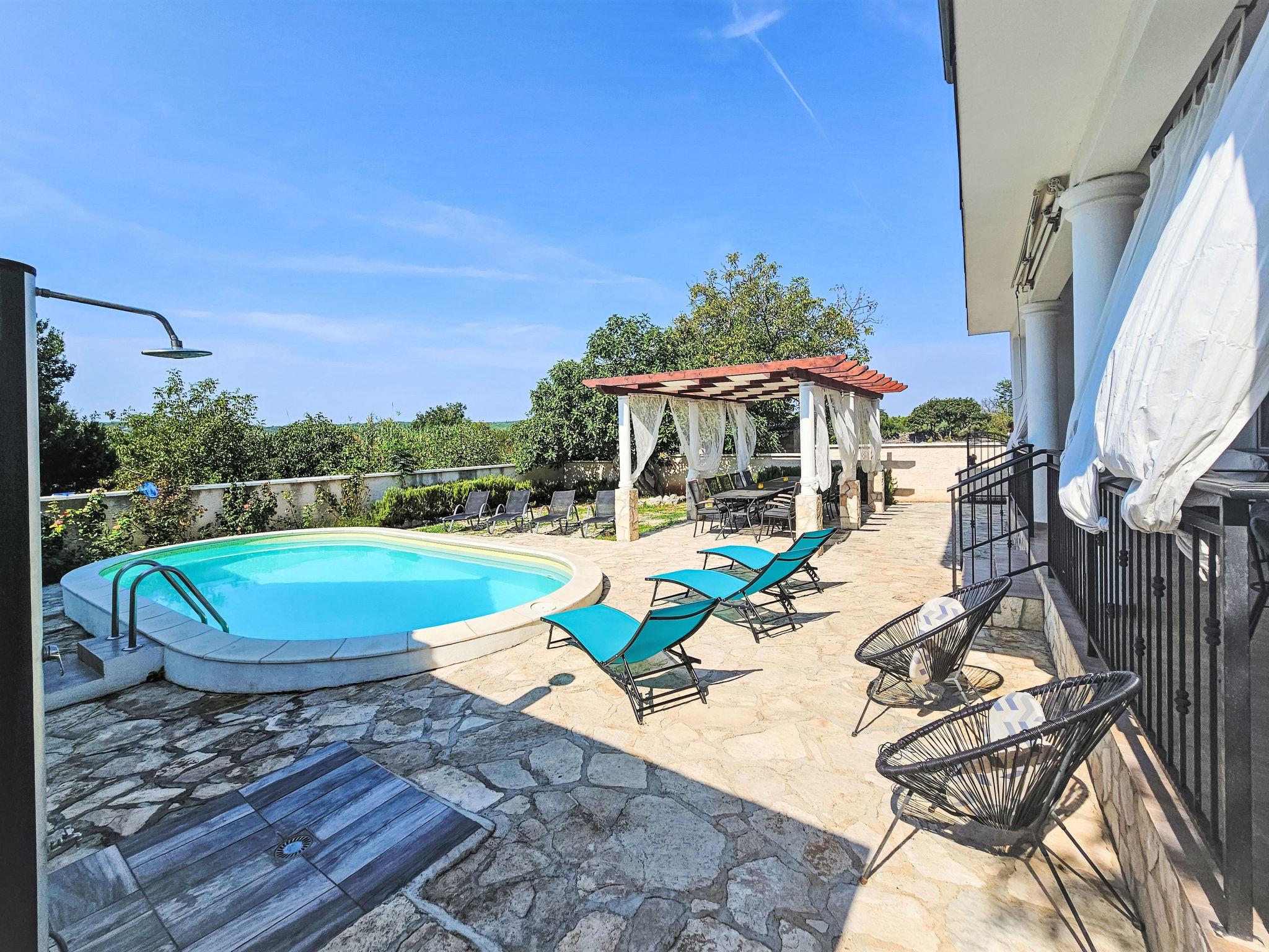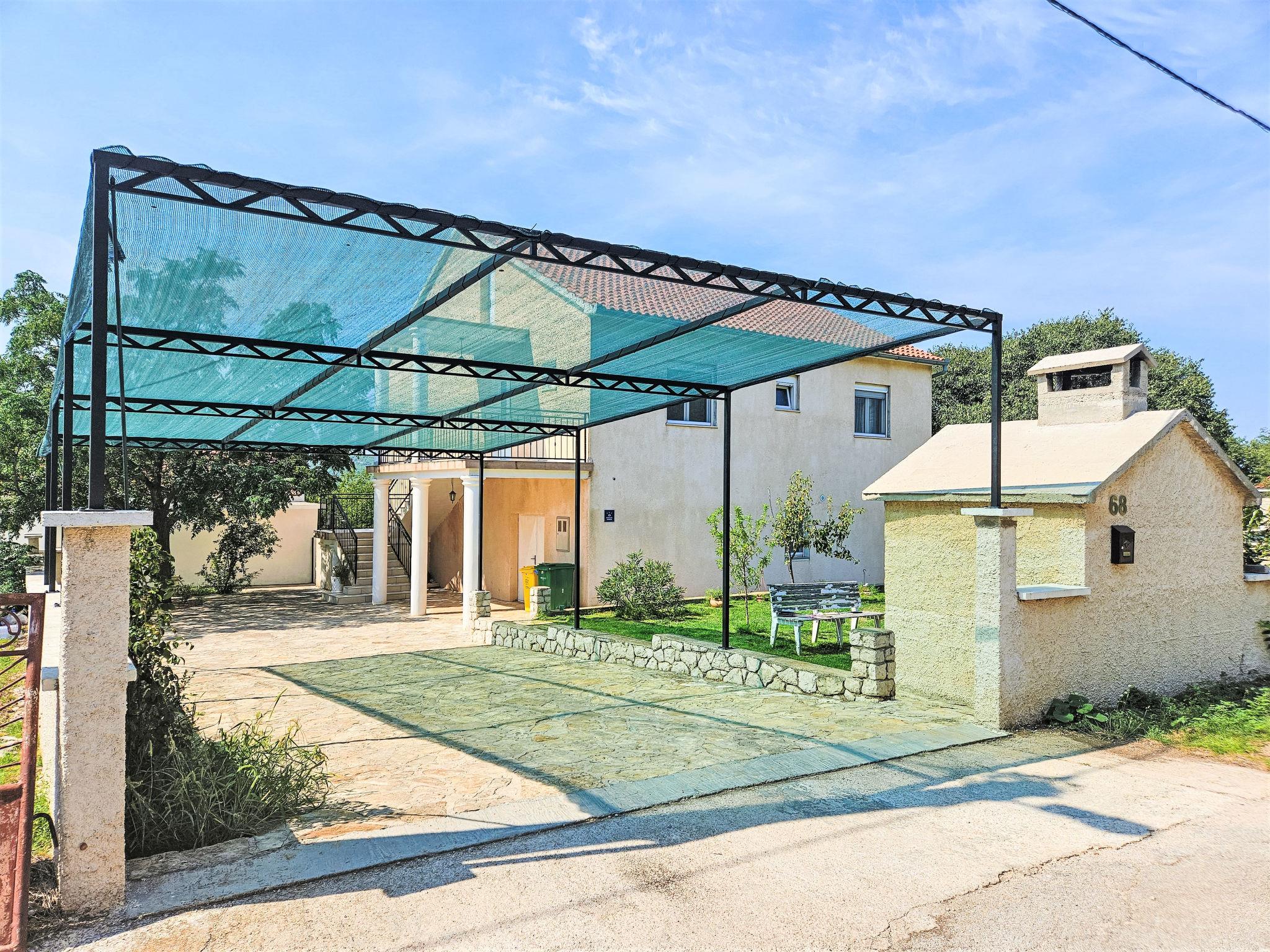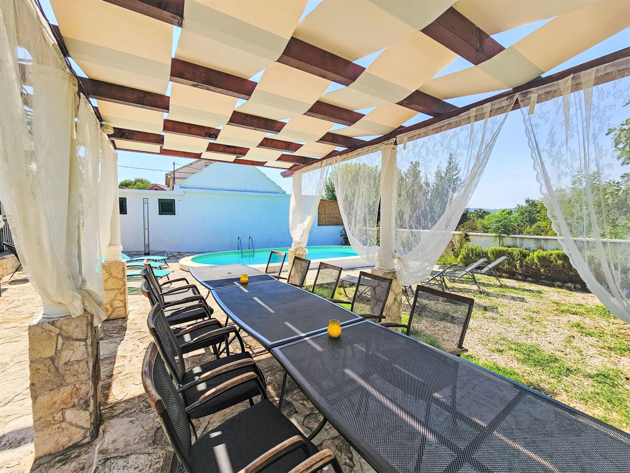 Dubrava: Beautiful single-family house "Joy on Countryside", 2 storeys. 8 km from the centre of Šibenik, in a quiet, sunny position, 8 km from the sea. Private: property 1'000 m2, wildlife garden and trees, swimming pool angular (7 x 3 m, 26 m2, depth 150 cm, seasonal availability: 01.Jun. - 10.Sep.). Outdoor shower, terrace (10 m2), garden furniture, barbecue. In the house: internet access, trampoline, washing machine. Parking (for 6 cars) at the house on the premises. Shop 2.5 km, restaurant 8 km, bus stop 850 m, pebble beach 10 km. Riding stable 1 km. Nearby attractions: NP Krka 12 km. Please note: suitable for families. Groups of teenagers on request only. Airfield 45 km from the property. The house consists of 3 apartments rented as one unit. Two apartments on the ground floor and one apartment on the first floor.