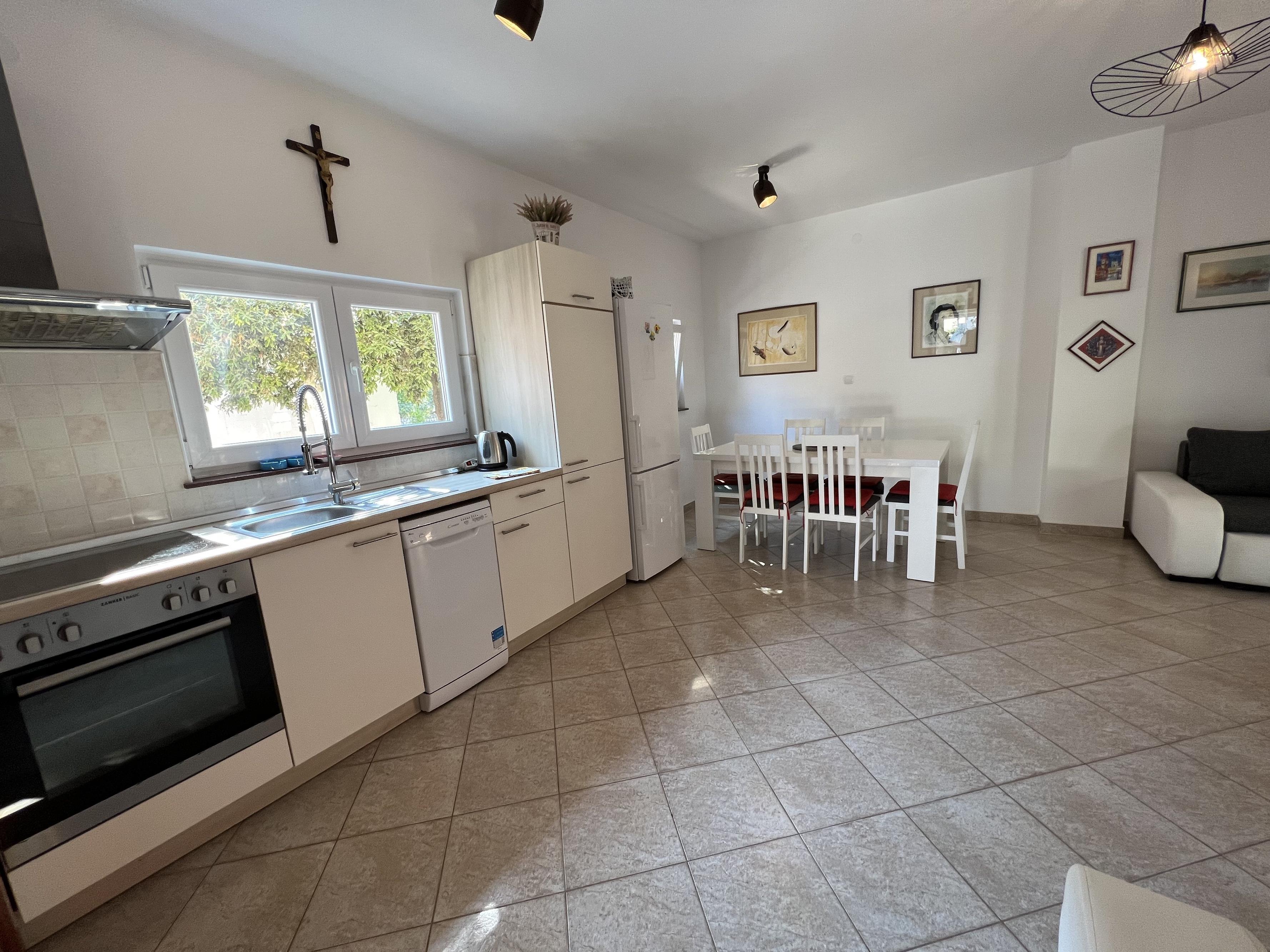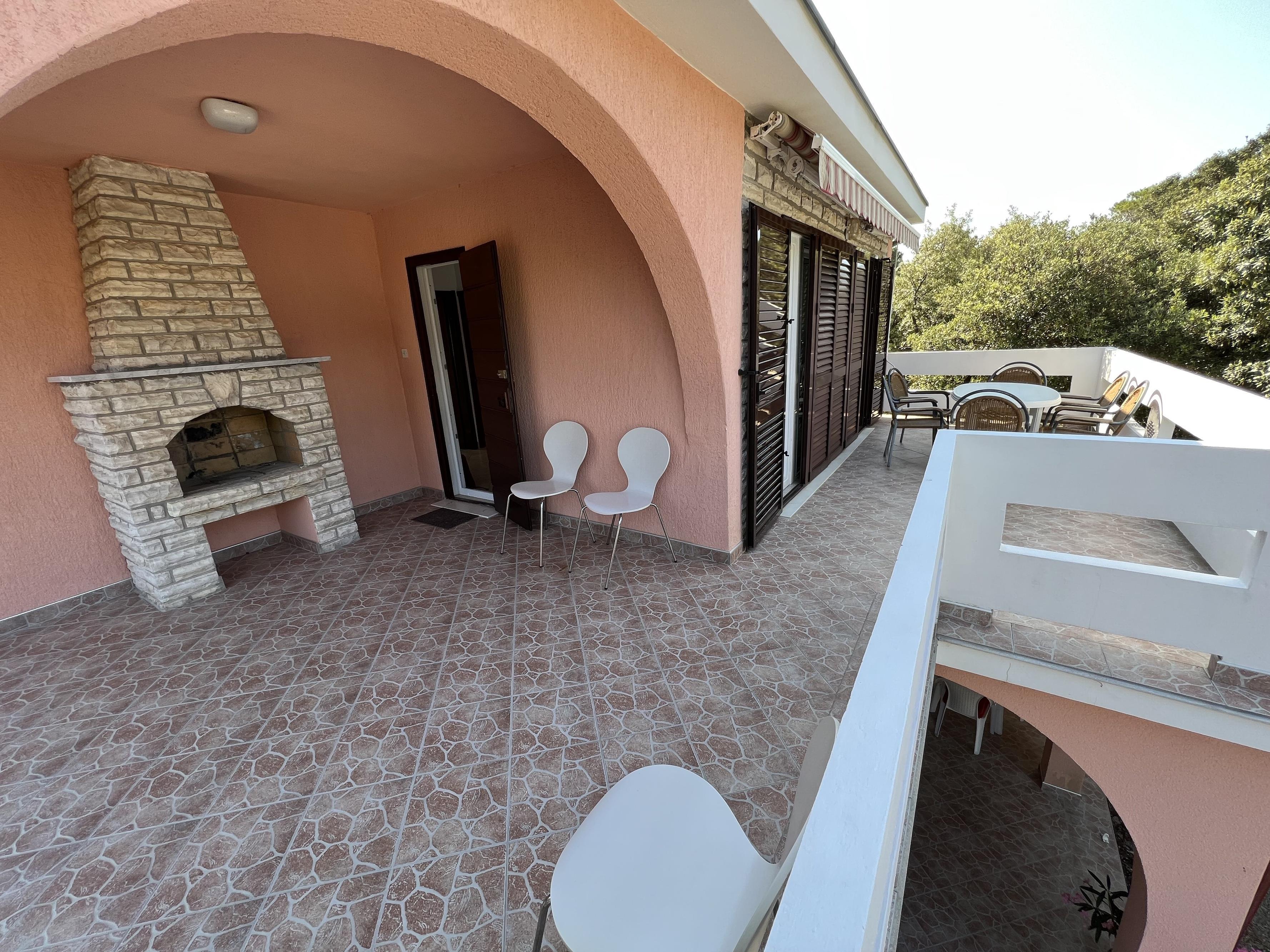 House can accommodate 8 guests. Beds are situated in 3 sleeping rooms, but also in the living room, within 96m2. Guests can use a private terrace to enjoy the warm summer evenings. The house offers the sea view. Food can be prepared using barbecue which is shared with other guests too. This accommodation unit welcomes pets at an additional charge.