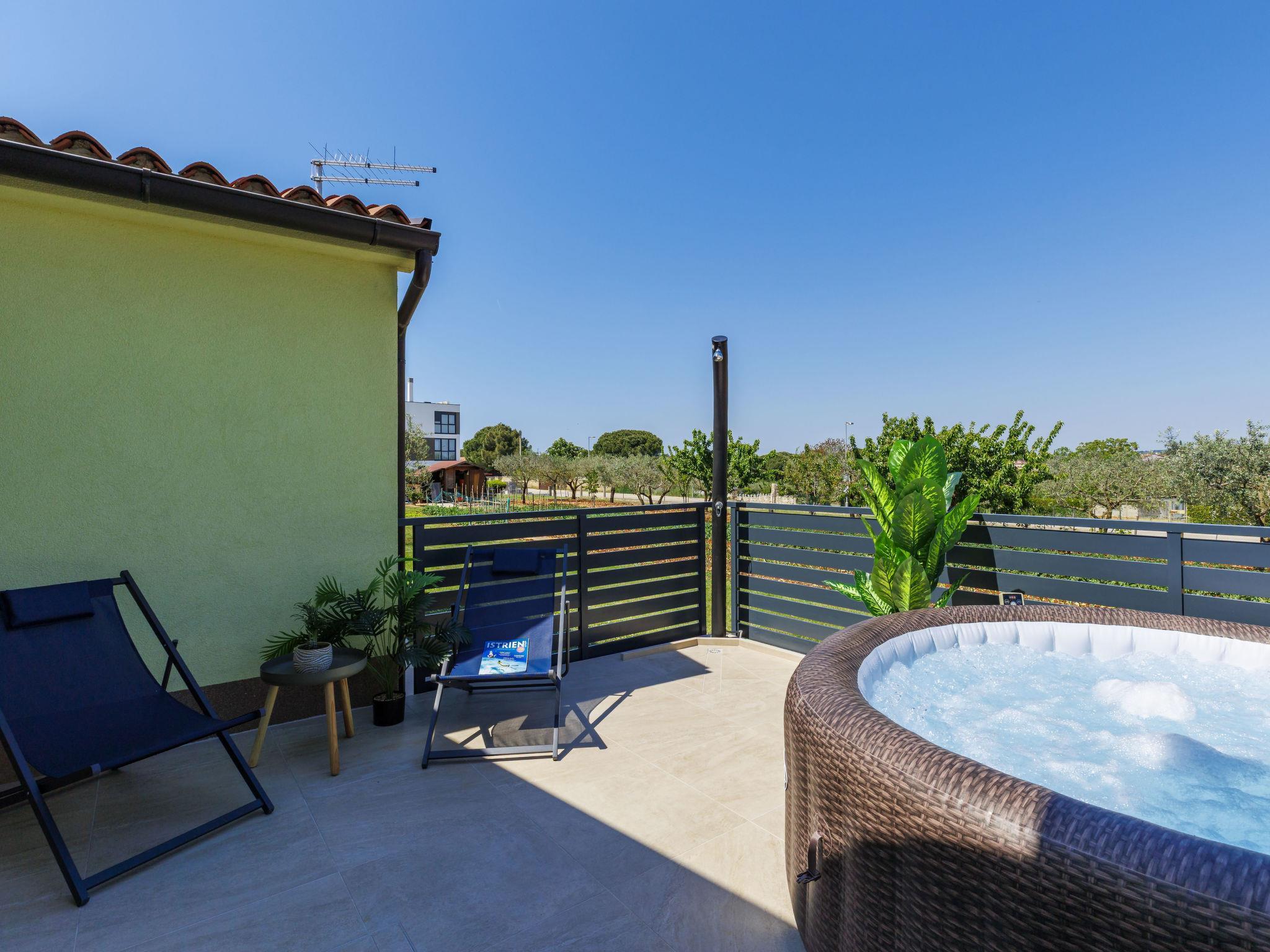 Štinjan 5 km from Pula: Semi-detached house "Branka". 3 km from the centre of Fažana, in a sunny position, 2 km from the sea, 2 km from the beach. Private: property 2'000 m2 (fenced), garden with lawn and wildlife garden. Hot tub, terrace (12 m2), garden furniture, barbecue. In the house: internet access, washing machine. Roofed, parking (for 2 cars) at the house on the premises. Supermarket 2.5 km, restaurant 1.5 km, bus stop 150 m, pebble beach 2 km. Marina 5 km, golf course (18 hole) 5 km, surf school 2 km, sailing school 2 km, tennis 2 km, riding stable 3 km, walking paths from the house 500 m, cycle lane 550 m. Nearby attractions: Amphitheater 5 km. Please note: airfield 15 km from the property.