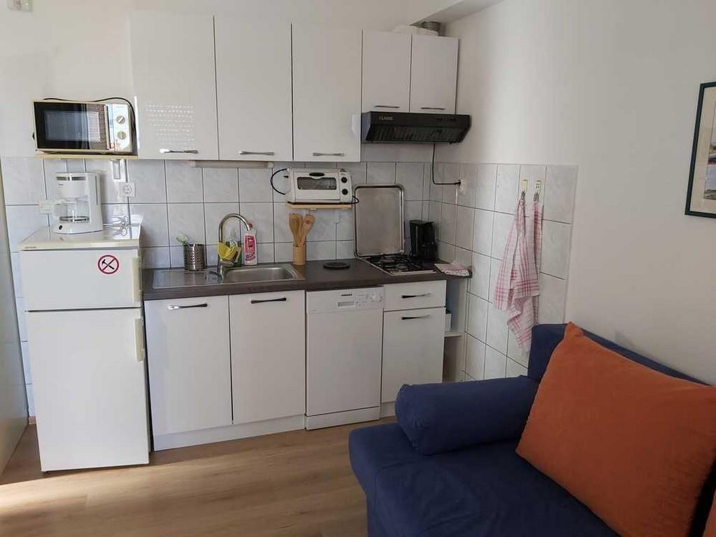 Apartment can accommodate 4 guests. Beds are situated in 1 sleeping rooms, but also in the living room, within 30m2. Guests can use a private terrace to enjoy the warm summer evenings. The apartment offers the sea view. Food can be prepared using barbecue which is shared with other guests too.