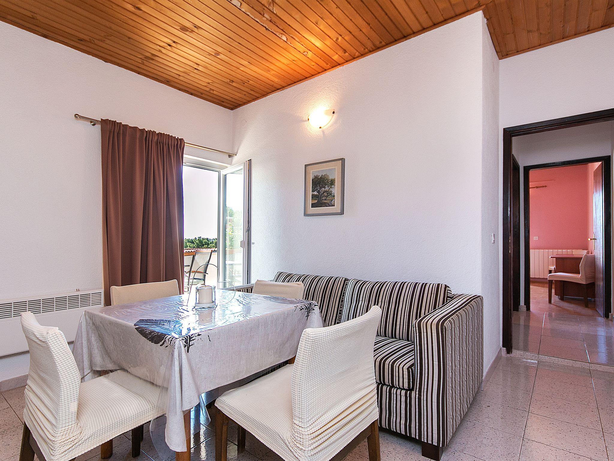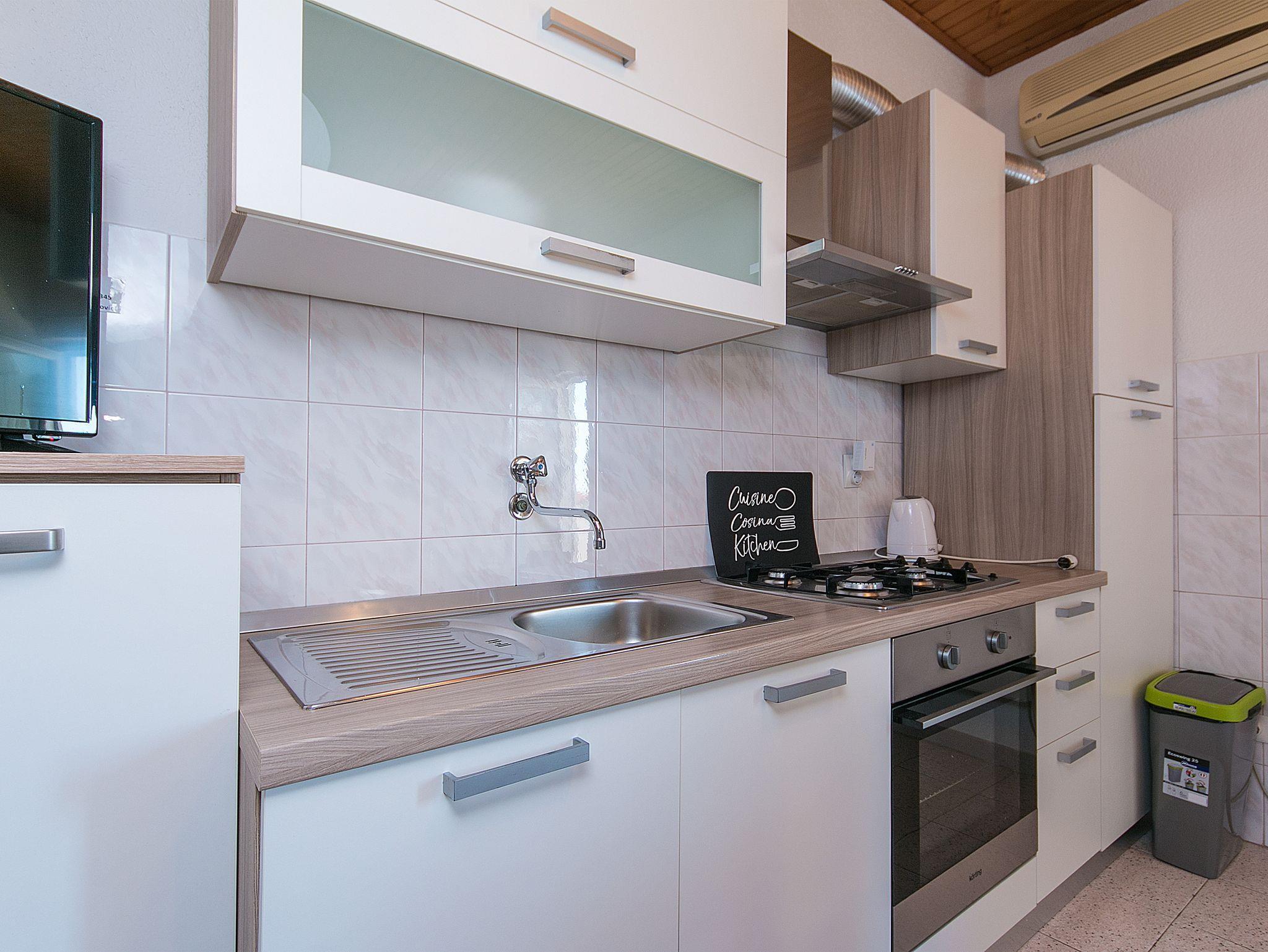 Ferienwohnung bietet Platz für 5 Gäste. Die Betten sind in Schlafzimmern, die es 2 gibt, und in Esszimmer, innerhalb einer Gesamtfläche von 40m2, angeordnet. Die Gäste haben eine eigene Terrasse zur Verfügung, auf der sie in warmen Sommernächten genießen können. Das Apartment bietet Meerblick. IM PREIS INBEGRIFFEN: Kurtaxe, Endreinigung, Parkplatz, Internet, Bügeleisen, Bügelbrett, Föhn. VERBINDLICHE ZUSÄTZLICHE KOSTEN: Aufzahlung für Kurzaufenthalte (prozentualer Zuschlag pro Nächtigungsanzahl: 30% - 1, 20% - 2, 10% - 3). UNVERBINDLICHE ZUSÄTZLICHE KOSTEN: Klimatisierung (10,00 € pro Nacht). Die Verfügbarkeit zusätzlicher Dienstleistungen in Ihrem reservierten Termin und die Preise derselben (falls nicht aufgeführt) müssen im Voraus überprüft werden. Zusätzliche Dienstleistungen die in der Zahlungsaufforderung nicht aufgeführt sind werden direkt beim Vermieter bezahlt, angenommen der Gast nutzt auch diese. Ermäßigung auf den Grundpreis: Gratistag 14=13 (bei einem Aufenthalt von 14 Tagen oder mehr erhalten Sie einen Gratistag für den Aufenthalt bis 31.12.26).