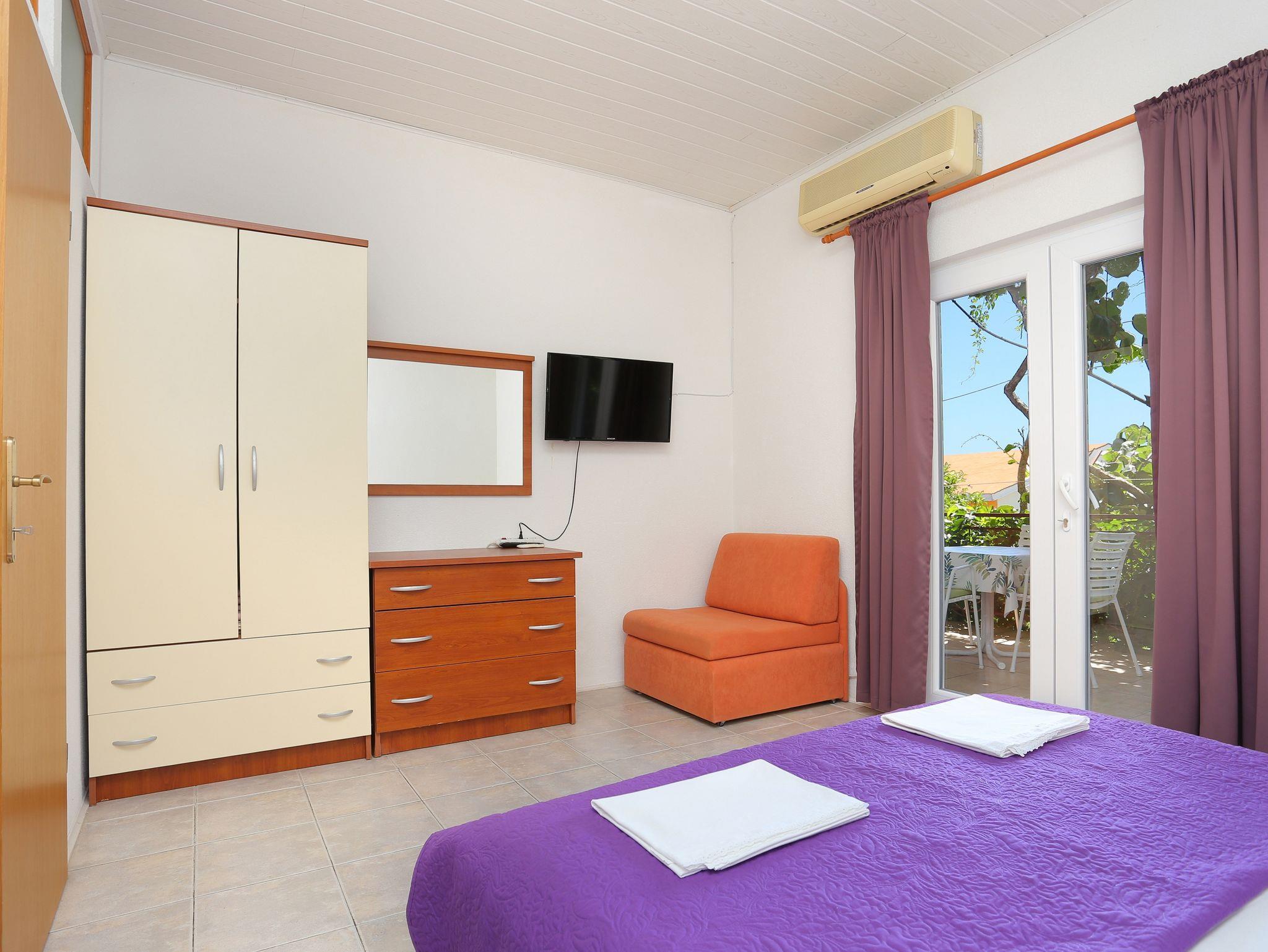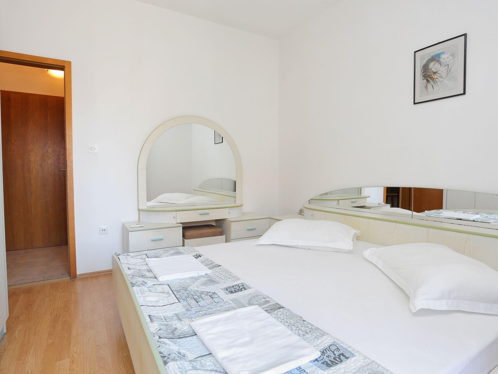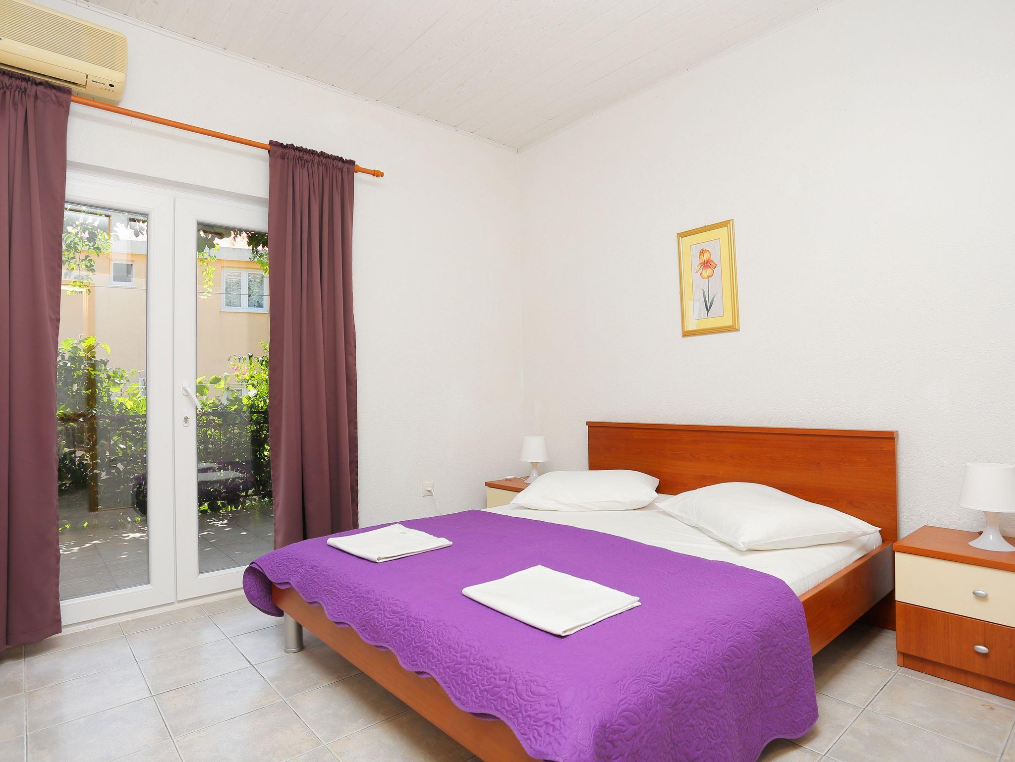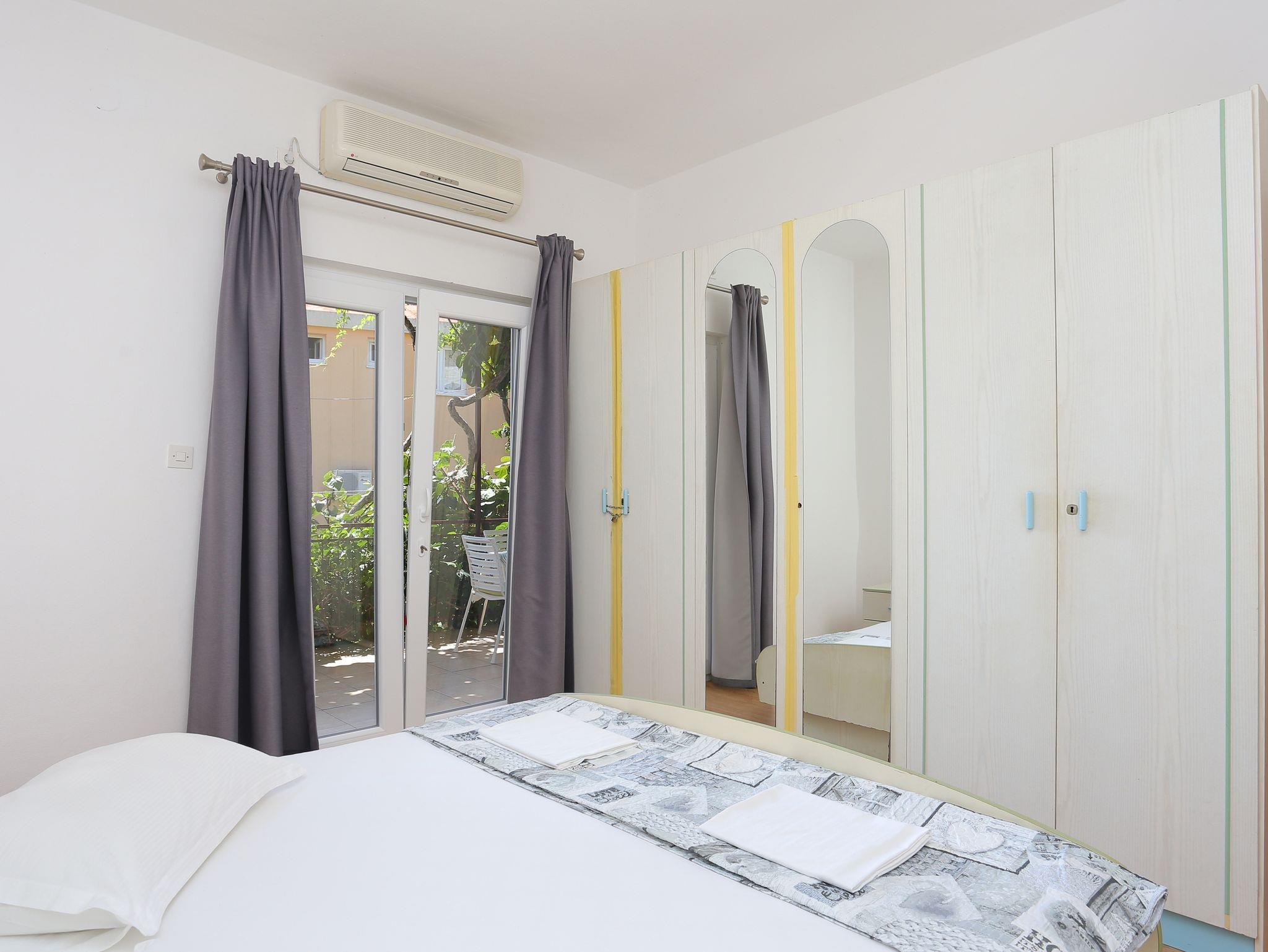 Ferienwohnung bietet Platz für 4 Gäste. Die Betten sind in Schlafzimmern, die es 2 gibt, innerhalb einer Gesamtfläche von 40m2, angeordnet. Die Gäste haben eine eigene Terrasse zur Verfügung, auf der sie in warmen Sommernächten genießen können. IM PREIS INBEGRIFFEN: Kurtaxe, Endreinigung, Parkplatz, Internet, Bügeleisen, Bügelbrett, Föhn. VERBINDLICHE ZUSÄTZLICHE KOSTEN: Aufzahlung für Kurzaufenthalte (prozentualer Zuschlag pro Nächtigungsanzahl: 30% - 1, 20% - 2, 10% - 3). UNVERBINDLICHE ZUSÄTZLICHE KOSTEN: Klimatisierung (10,00 € pro Nacht), Zusatzbett (10,00 € pro Nacht). Die Verfügbarkeit zusätzlicher Dienstleistungen in Ihrem reservierten Termin und die Preise derselben (falls nicht aufgeführt) müssen im Voraus überprüft werden. Zusätzliche Dienstleistungen die in der Zahlungsaufforderung nicht aufgeführt sind werden direkt beim Vermieter bezahlt, angenommen der Gast nutzt auch diese. Ermäßigung auf den Grundpreis: Gratistag 14=13 (bei einem Aufenthalt von 14 Tagen oder mehr erhalten Sie einen Gratistag für den Aufenthalt bis 31.12.26).