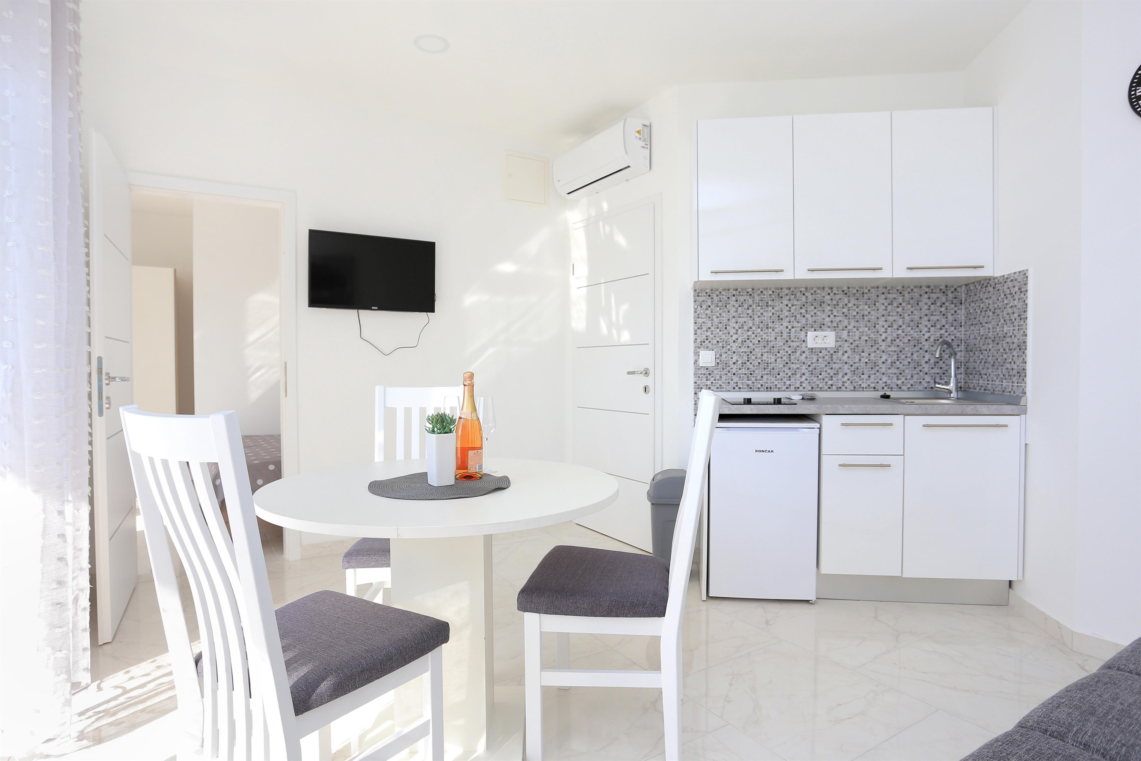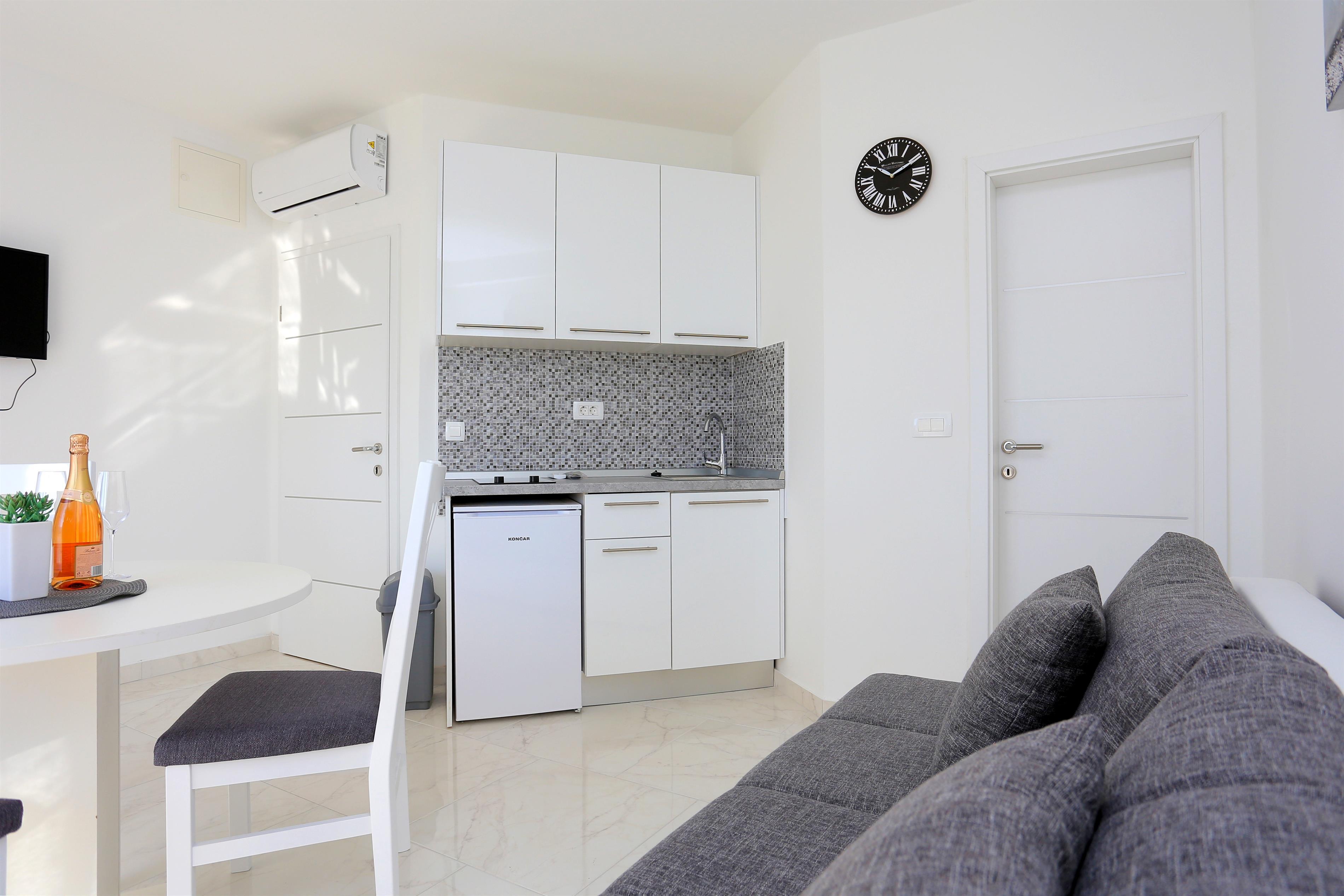Apartment can accommodate 3 guests. Beds are situated in 1 sleeping rooms, but also in the dining room, within 29m2. Guests can use a private terrace to enjoy the warm summer evenings. The apartment offers the sea view. Shared pool is on disposal during stay.
