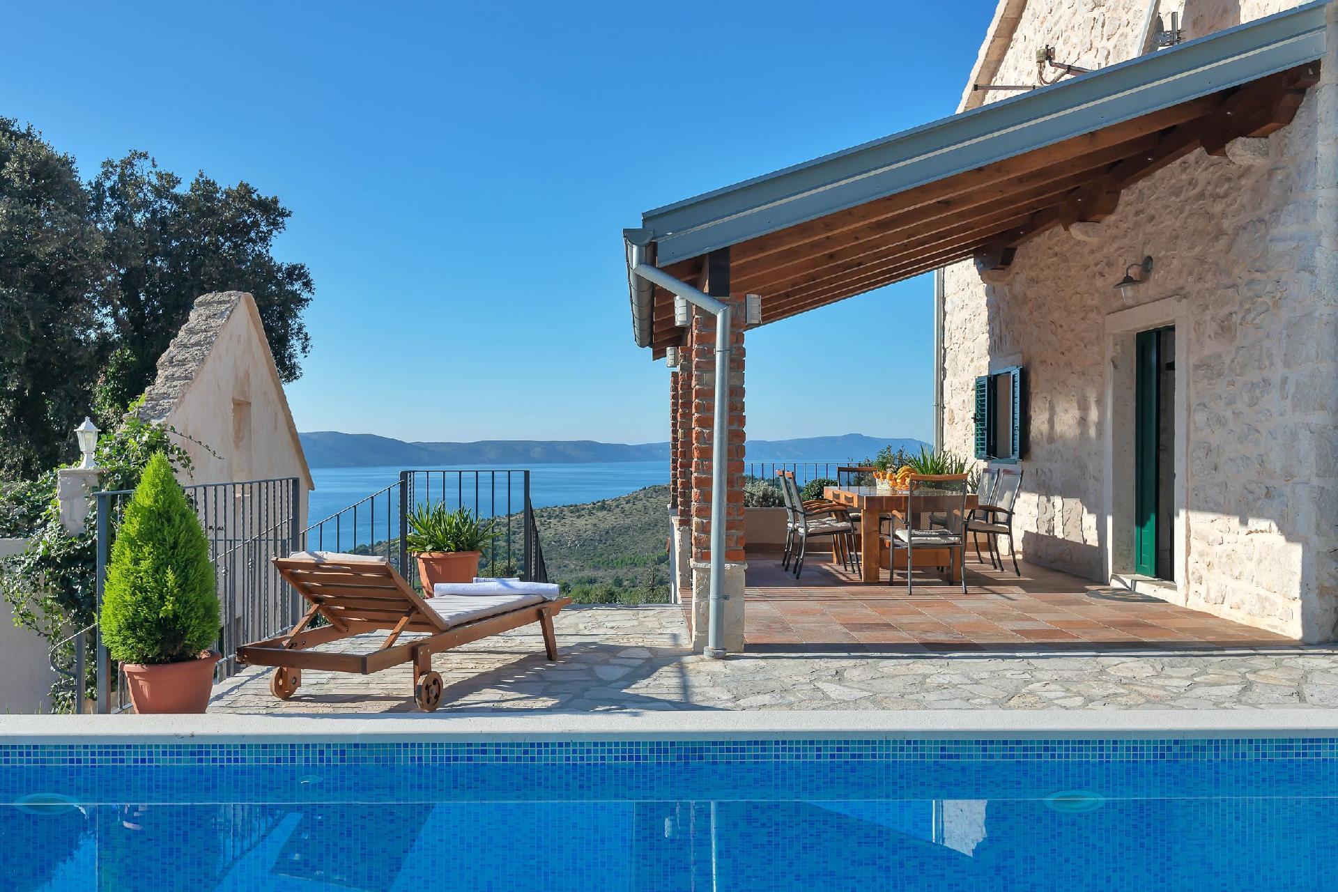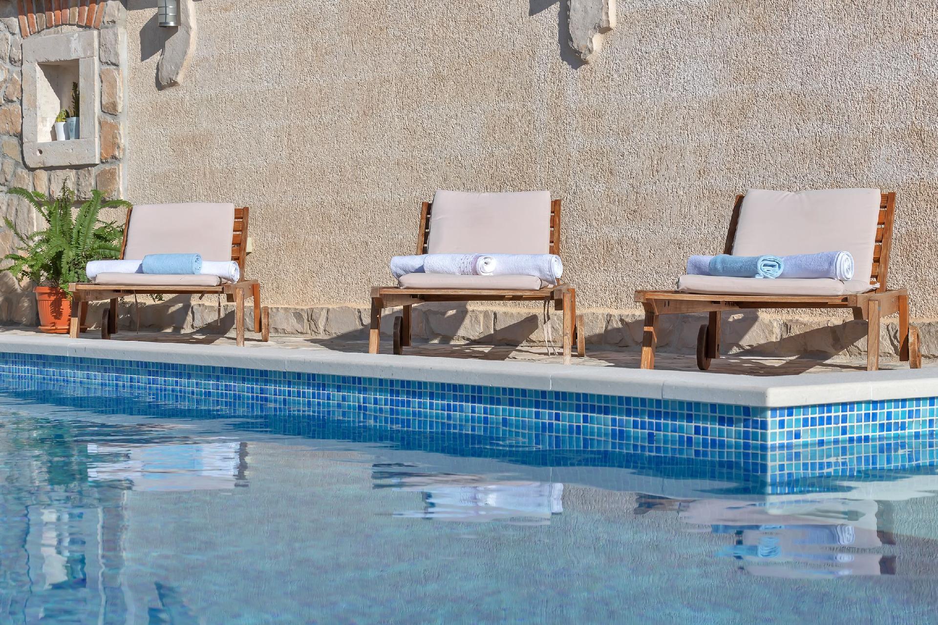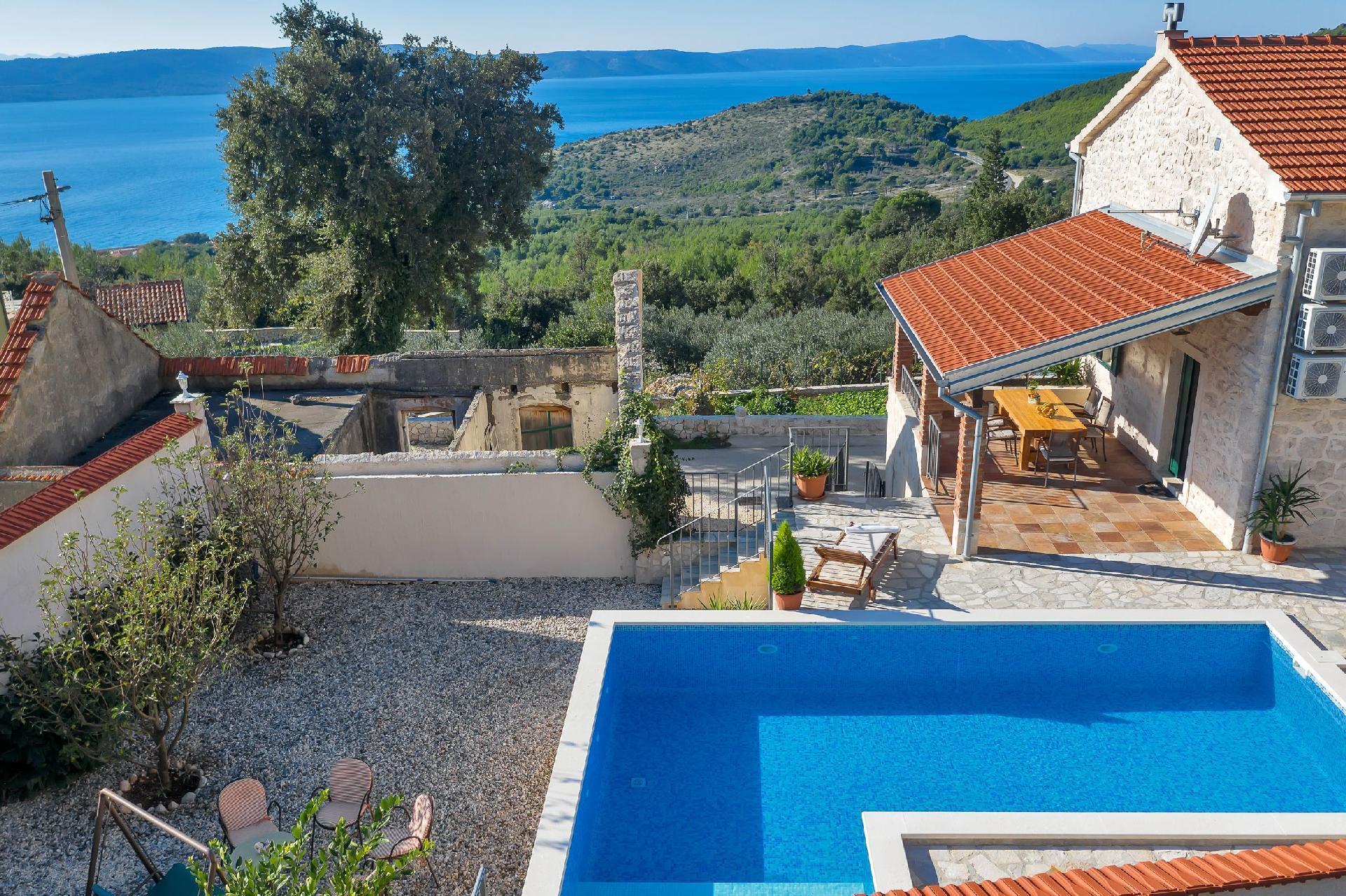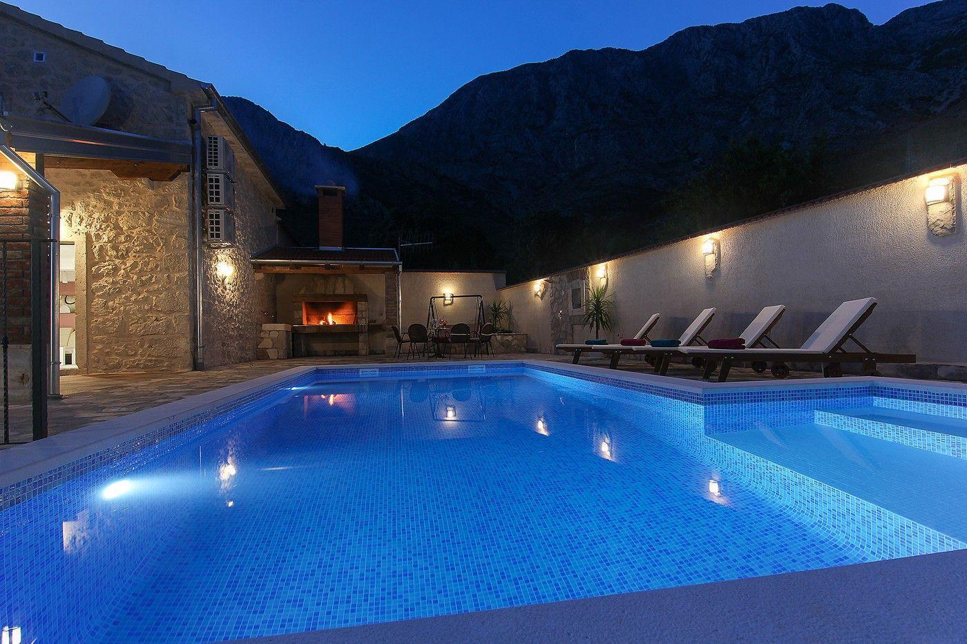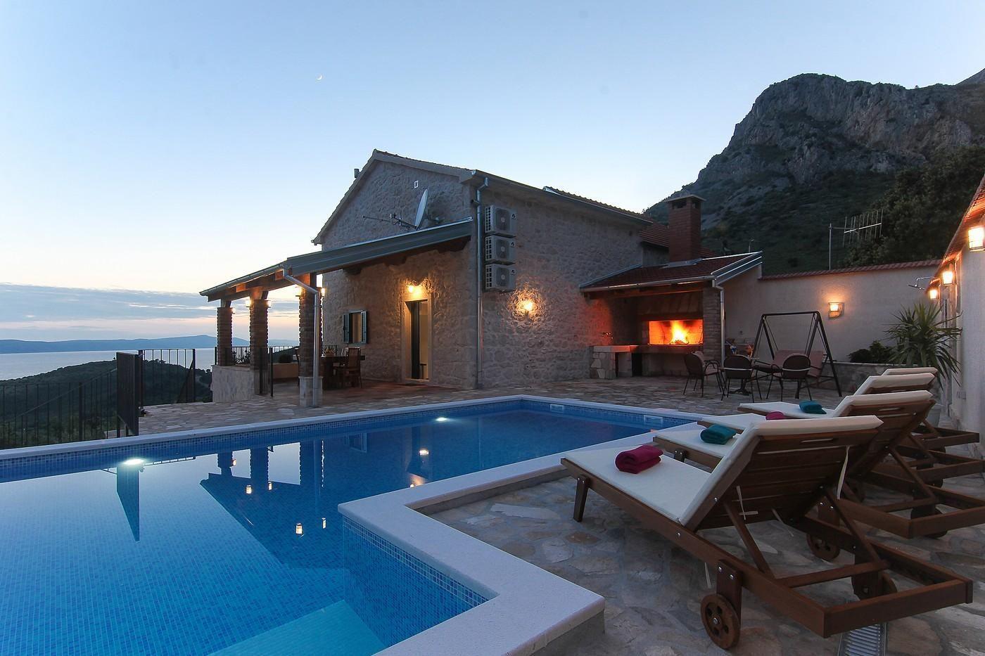 Holiday house Mya with heated pool is located 20 km south of the town of Makarska, 1.0 km from the sea and the beach. The completely renovated stone house has three bedrooms with double bed, three bathrooms with shower.