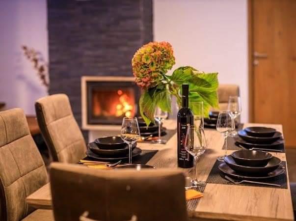 In summer, guests can enjoy swimming in the pool, cycling along the river and forest paths, while evenings are perfect for barbecues with local wine. In winter, relax by the fireplace, unwind in the jacuzzi or sauna, and enjoy board games with the family.