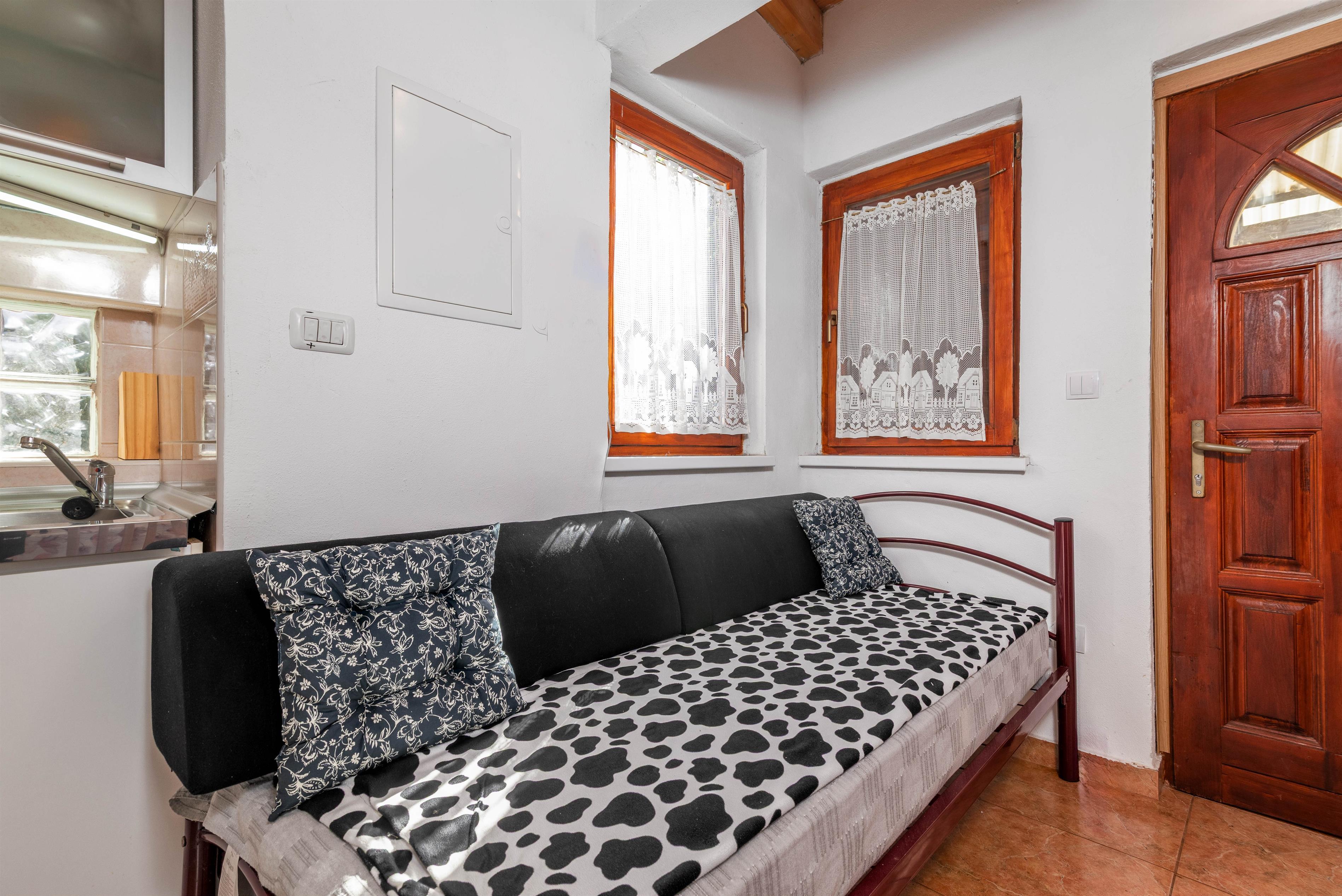 House can accommodate 3 guests. Beds are situated in 1 sleeping rooms, but also in the dining room, within 32m2. Guests can use a private terrace to enjoy the warm summer evenings. Food can be prepared using barbecue which is shared with other guests too.
