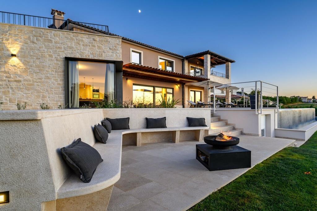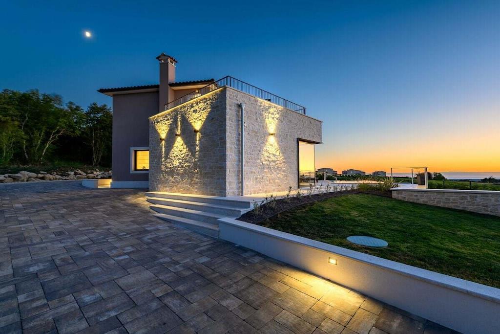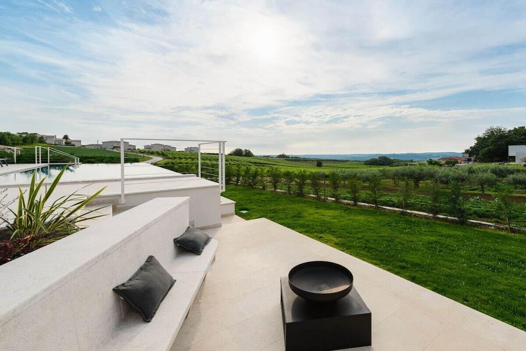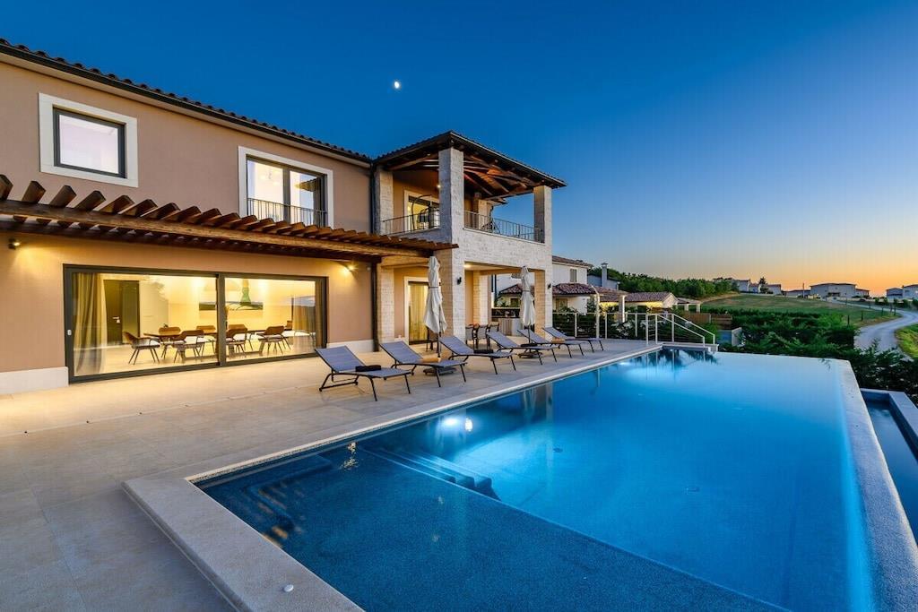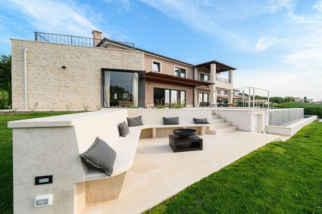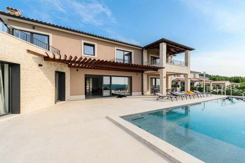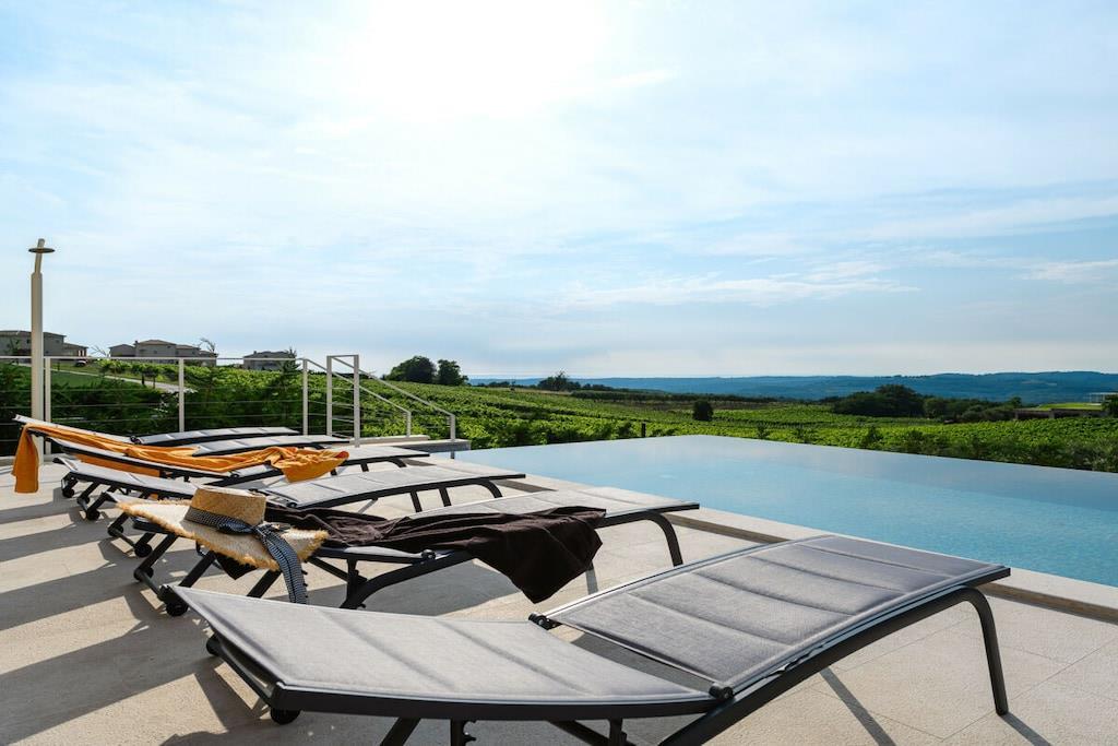 Nestled amidst the greenery of the Vižinada hills, overlooking vineyards and a beautiful sea view, lies the luxurious Villa Faloniga. It takes its name from a nearby natural spring that has provided life since ancient times. This exquisite luxury holiday home near Bajkini features four elegant double bedrooms, each with its own en-suite bathroom, a spacious kitchen, and a dining area. The cozy living room, as well as the entire villa, is inspired by earthy colors and the beauty of nature, creating a uniquely relaxing atmosphere—in connection with nature. The infinity pool, which changes color in combination with the sun, sky, and clouds, adds a charming touch. Come and fall in love with this villa near Bajkini, where you can enjoy the peace and beauty of nature.