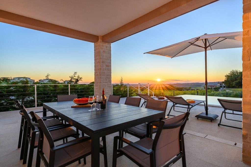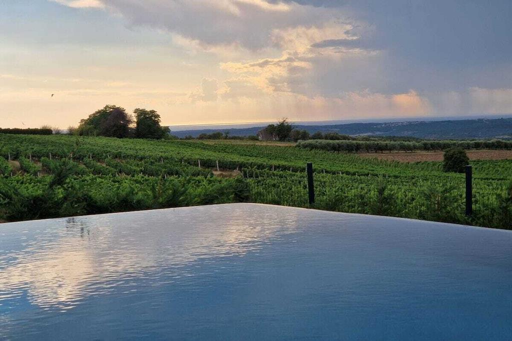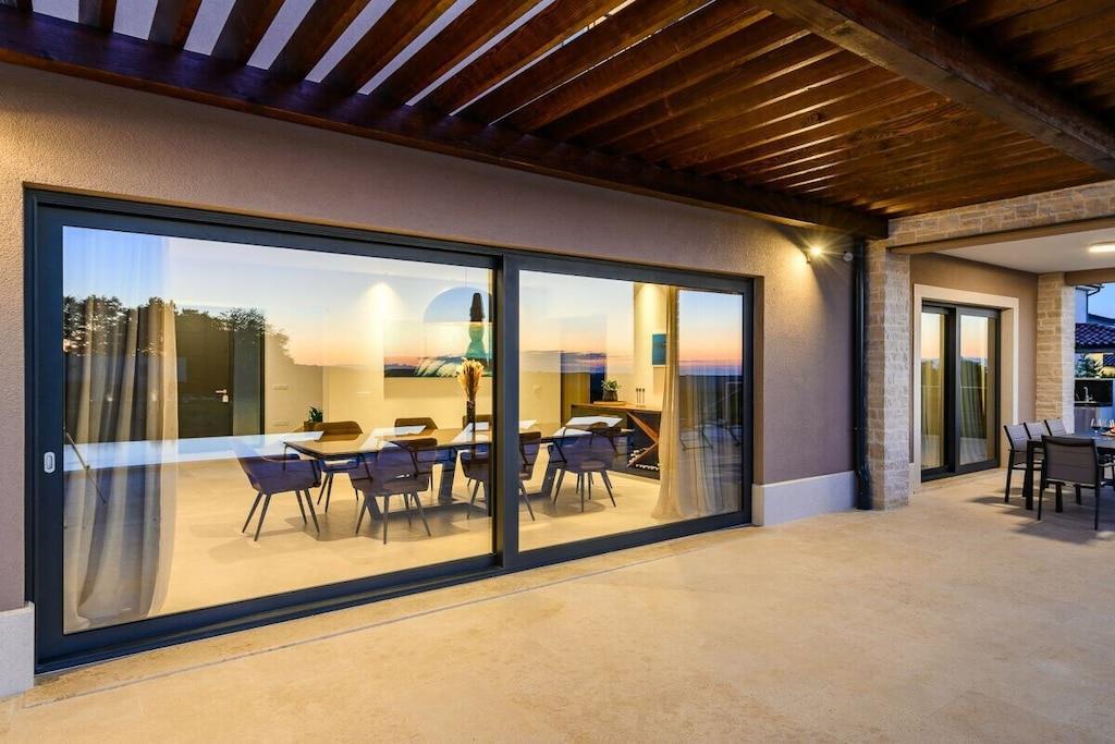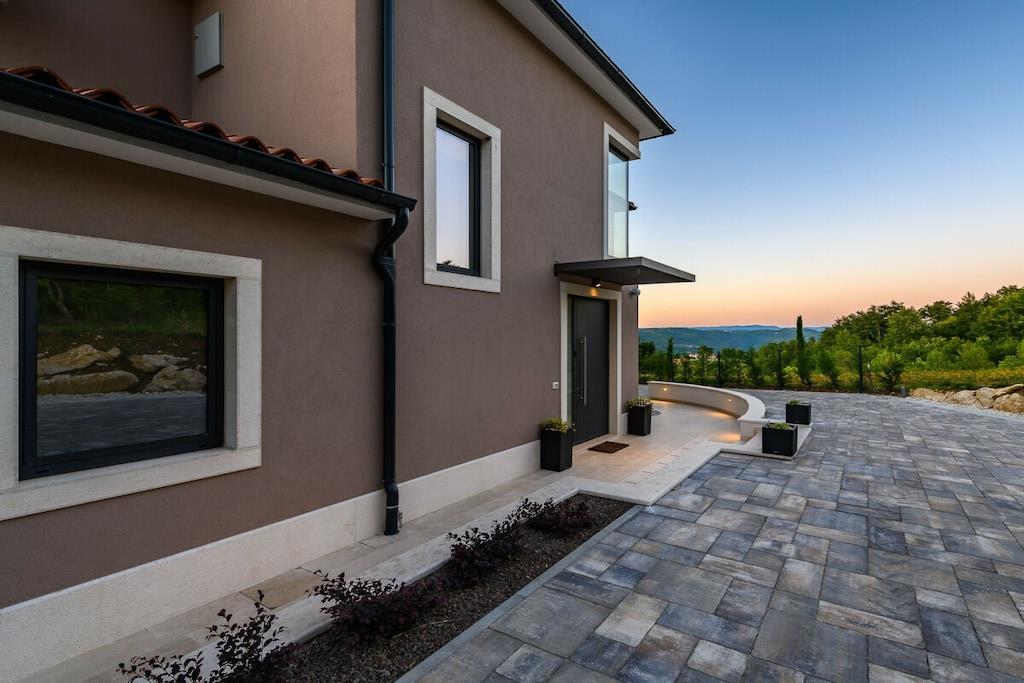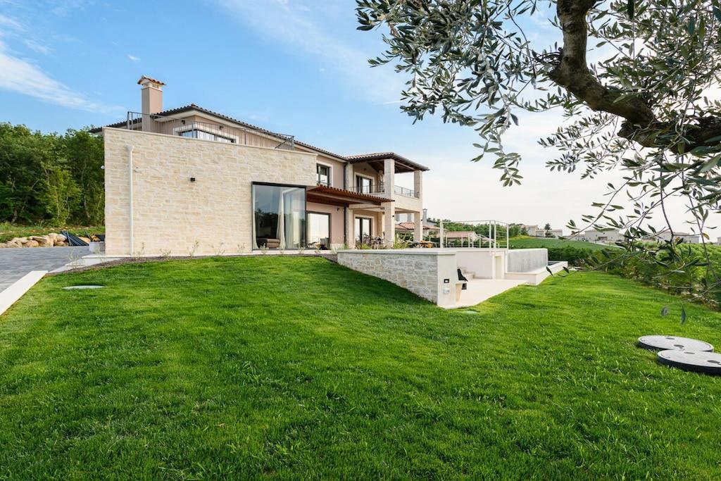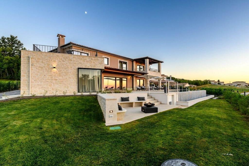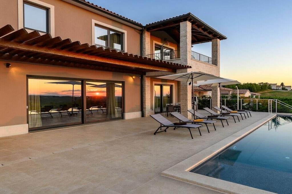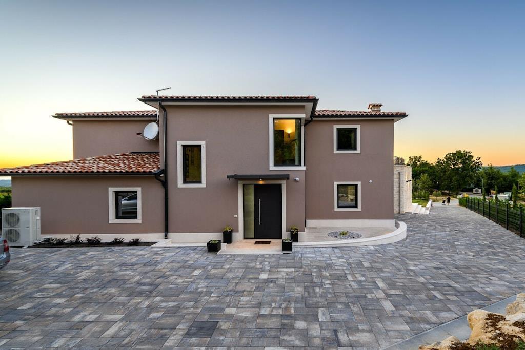 Nestled amidst the greenery of the Vižinada hills, overlooking vineyards and a beautiful sea view, lies the luxurious Villa Faloniga. It takes its name from a nearby natural spring that has provided life since ancient times. This exquisite luxury holiday home near Bajkini features four elegant double bedrooms, each with its own en-suite bathroom, a spacious kitchen, and a dining area. The cozy living room, as well as the entire villa, is inspired by earthy colors and the beauty of nature, creating a uniquely relaxing atmosphere—in connection with nature. The infinity pool, which changes color in combination with the sun, sky, and clouds, adds a charming touch. Come and fall in love with this villa near Bajkini, where you can enjoy the peace and beauty of nature.