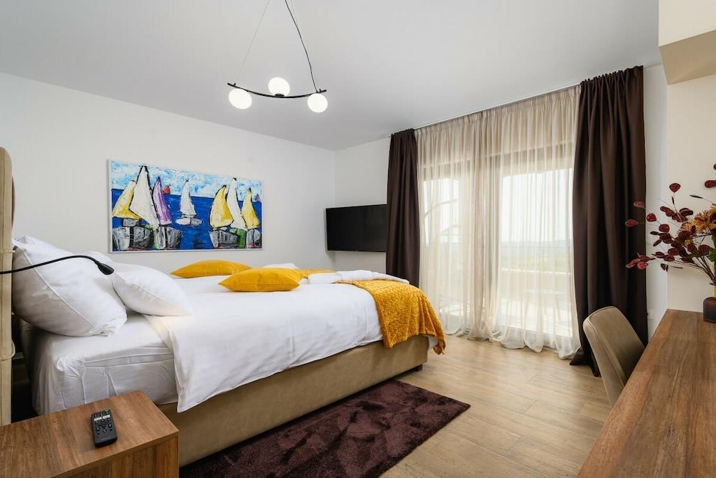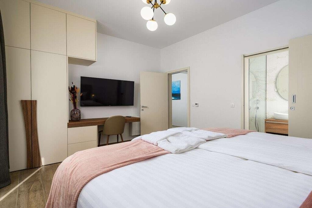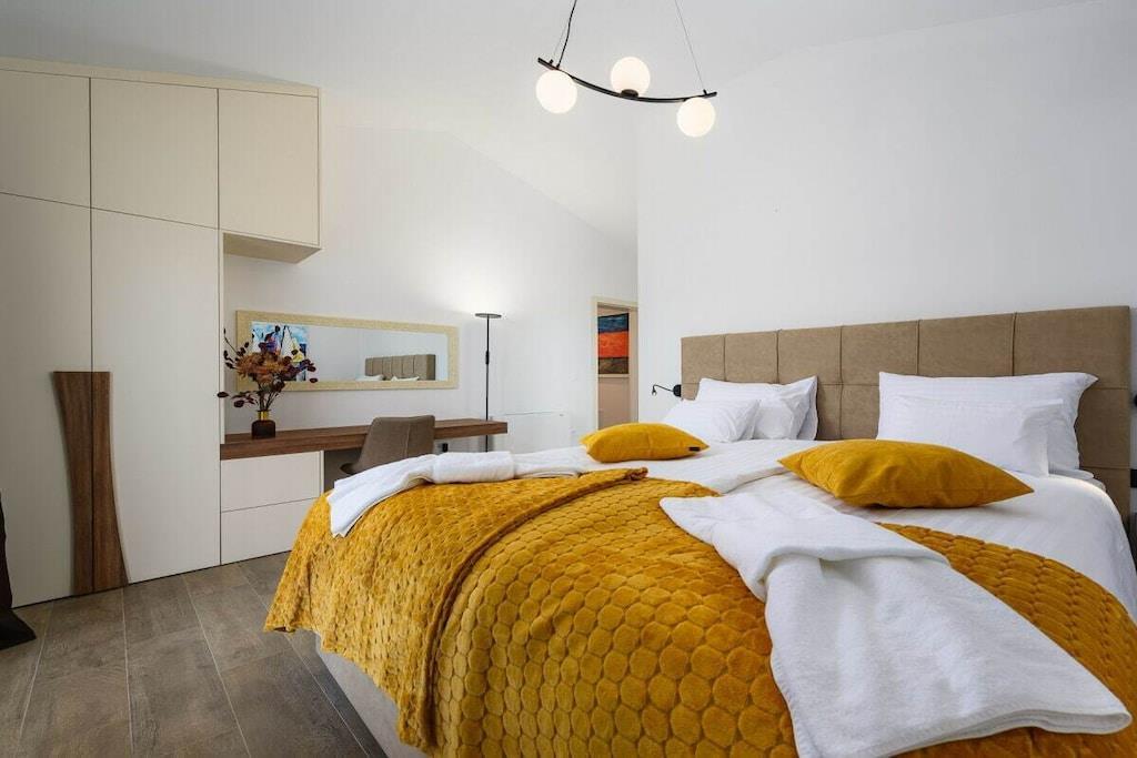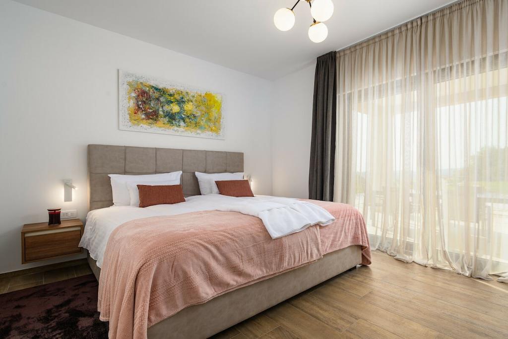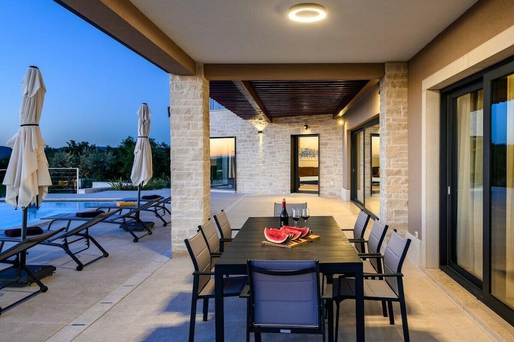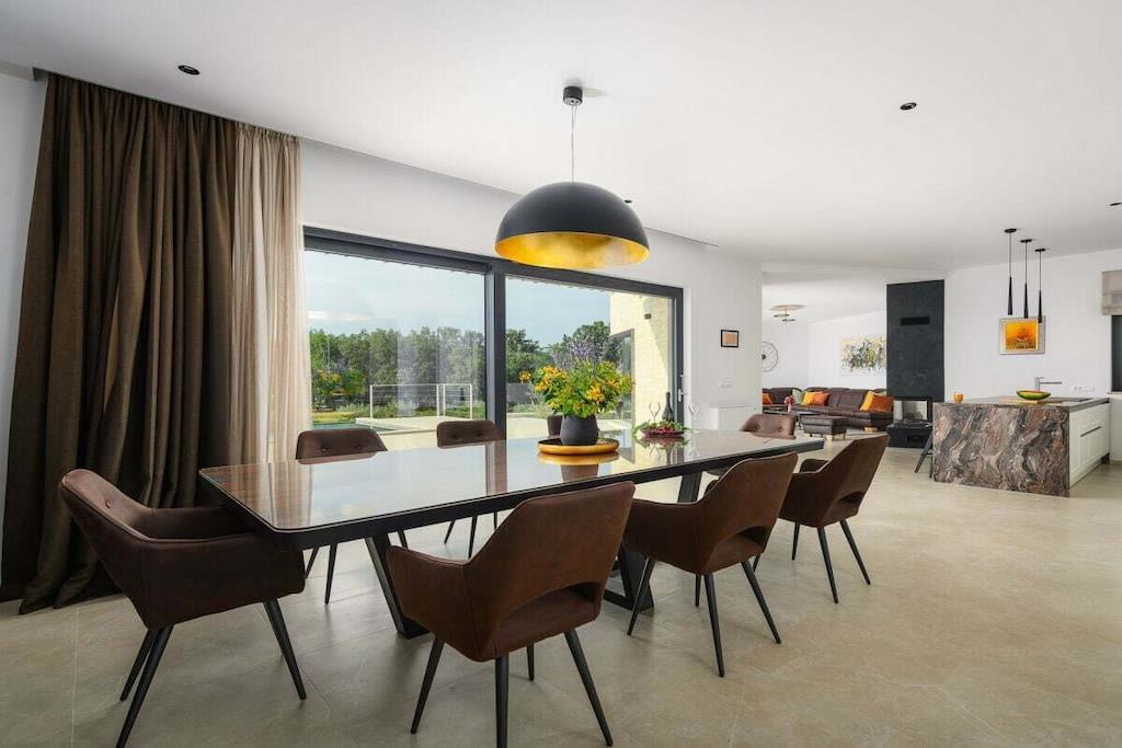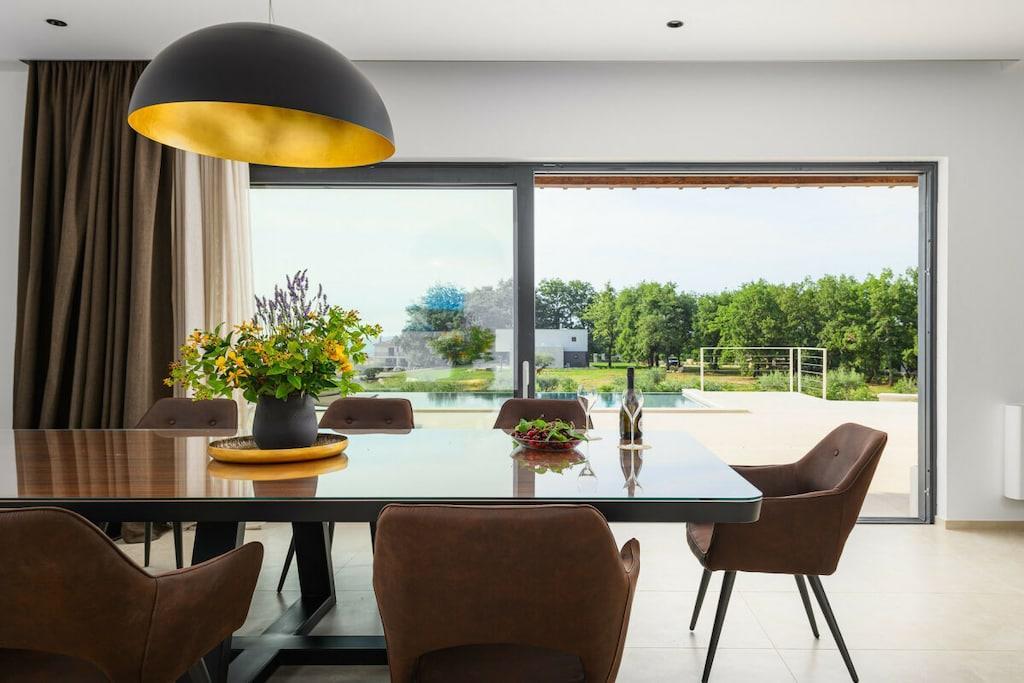 Nestled amidst the greenery of the Vižinada hills, overlooking vineyards and a beautiful sea view, lies the luxurious Villa Faloniga. It takes its name from a nearby natural spring that has provided life since ancient times. This exquisite luxury holiday home near Bajkini features four elegant double bedrooms, each with its own en-suite bathroom, a spacious kitchen, and a dining area. The cozy living room, as well as the entire villa, is inspired by earthy colors and the beauty of nature, creating a uniquely relaxing atmosphere—in connection with nature. The infinity pool, which changes color in combination with the sun, sky, and clouds, adds a charming touch. Come and fall in love with this villa near Bajkini, where you can enjoy the peace and beauty of nature.