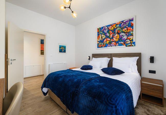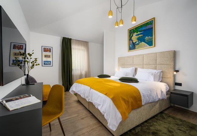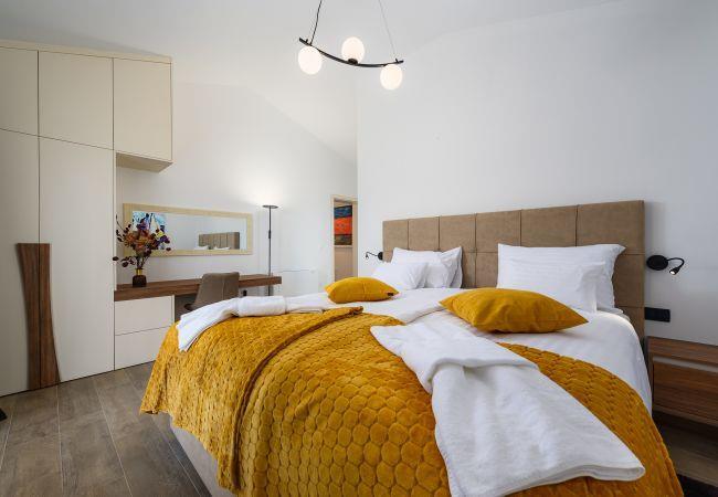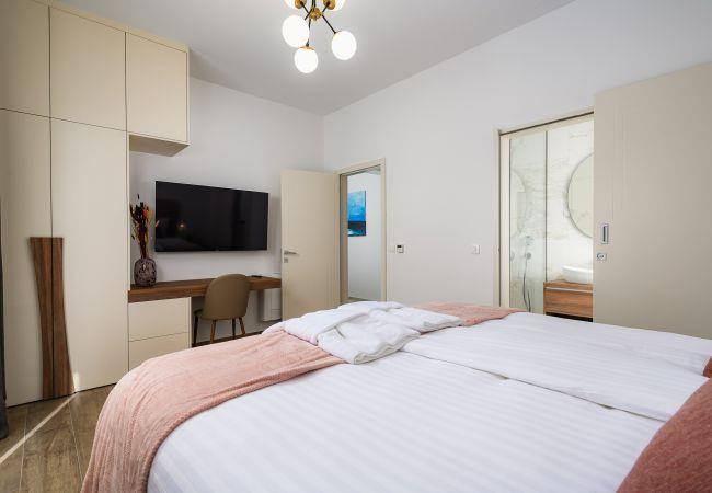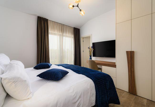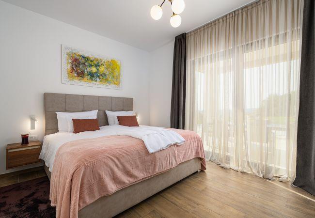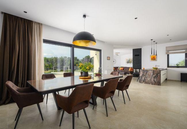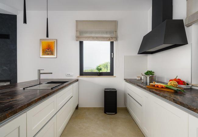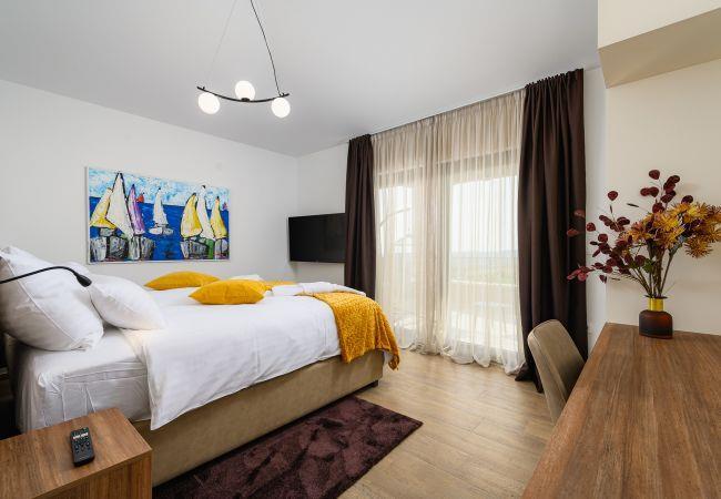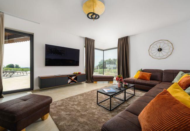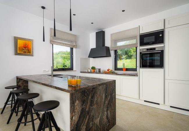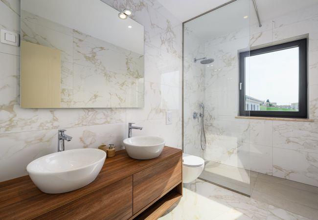 This exquisite Luxury holiday near Bajkini has four elegant bedrooms with double beds, each with its own en suite bathroom, spacious kitchen, and dining area. The comfortable living room, as well as the whole villa, is inspired by earthy colors, and the beauty of nature, to create a uniquely relaxing atmosphere- in touch with nature.