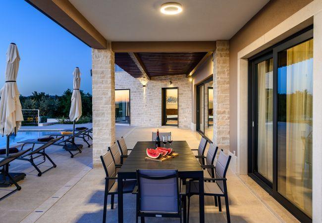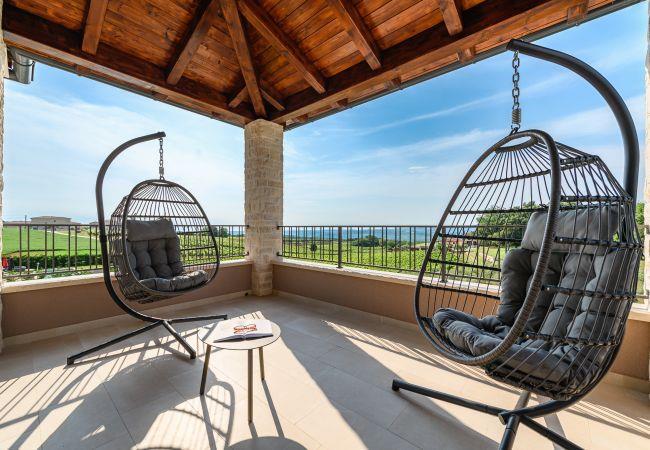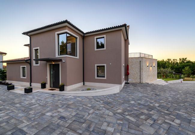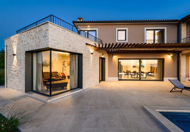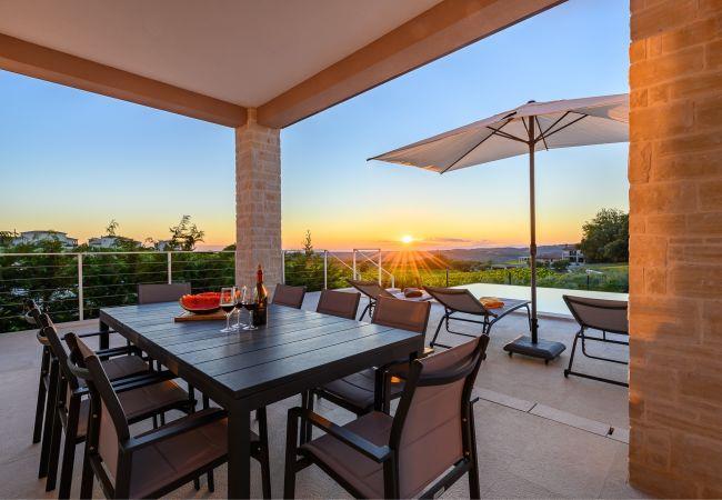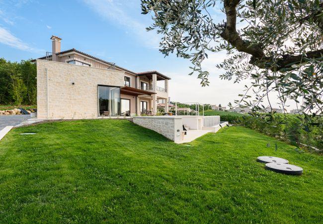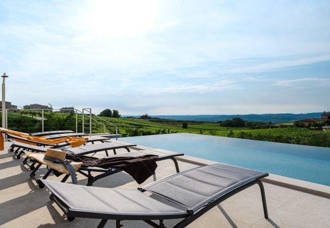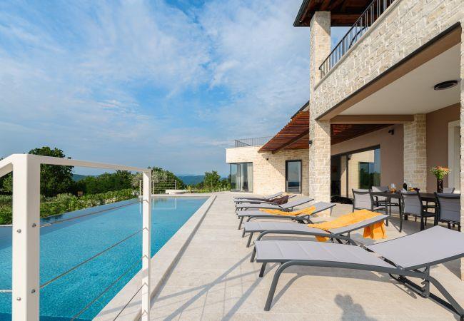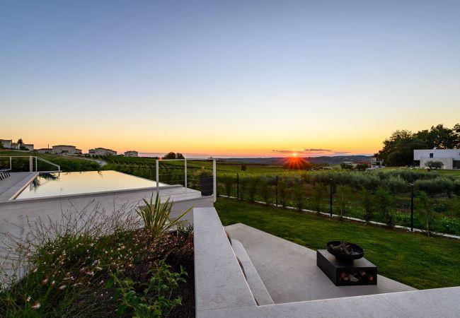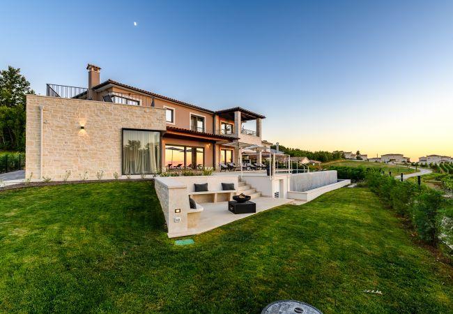 In the greenery of Vižinada hills, overlooking the vineyards with beautiful sea views, there is a luxurious Villa Faloniga. It got its name from a nearby natural water source, which gives life since ancient times.