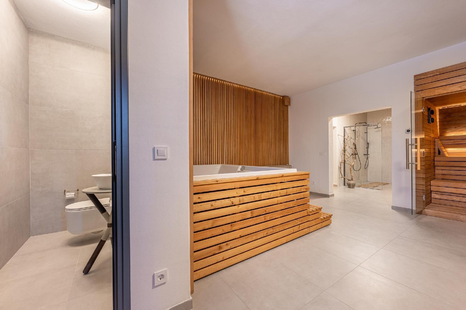 Indulge in the ultimate relaxation in the spa in the villa's basement, featuring a sauna, indoor jacuzzi, and shower. Escape the stresses of everyday life and rejuvenate your senses in this serene retreat.