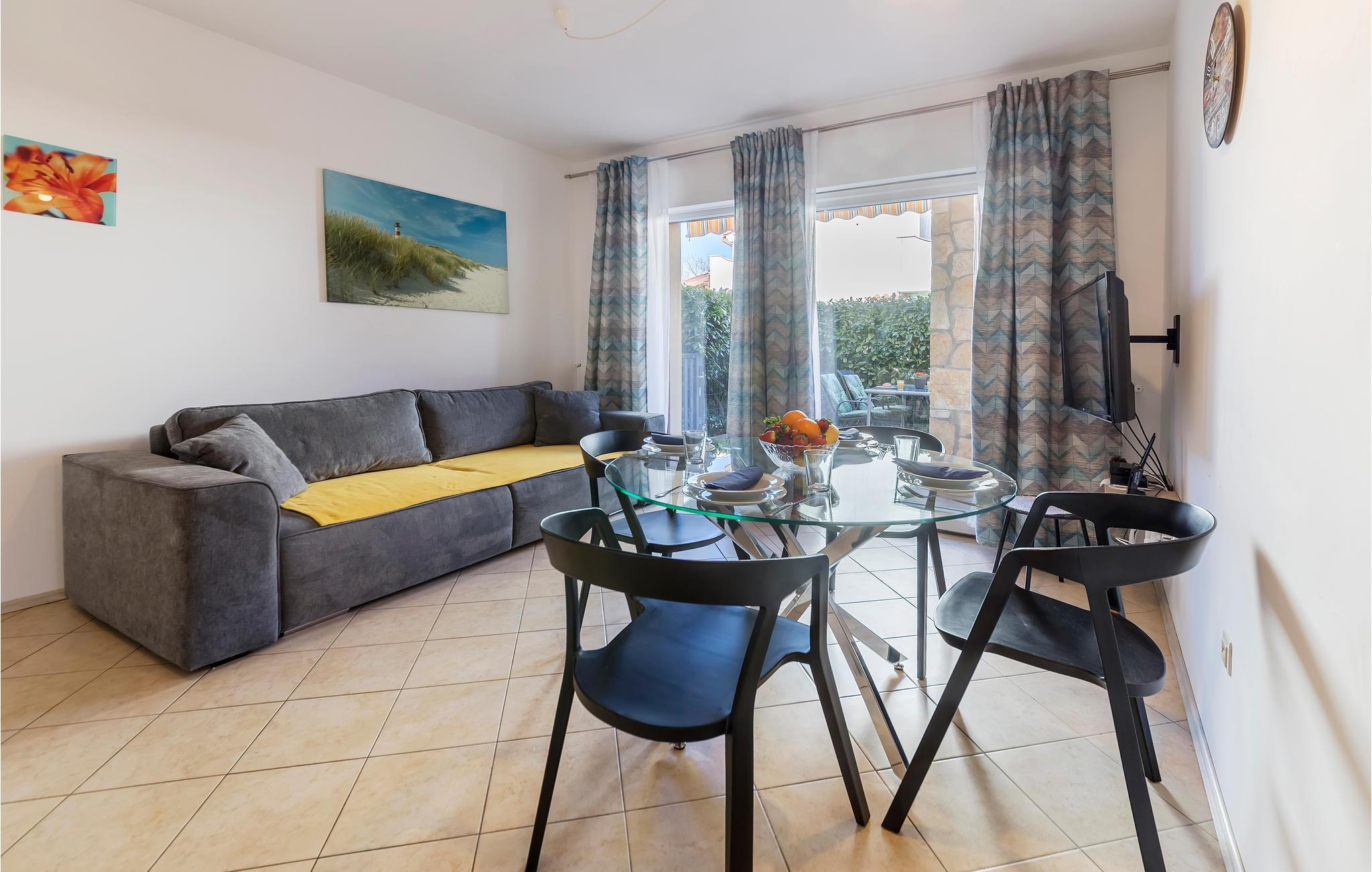 Die Innenräume sind praktisch und schön eingerichtet. Auf der schönen Terrasse mit Markise, umgeben von grüner Vegetation, können Sie Ihren ersten Morgenkaffee genießen oder einfach die Seele baumeln lassen. Es gibt eine große Auswahl an Restaurants in der Nähe, während ein Besuch in Pula und Medulin für den Abend empfehlenswert ist.