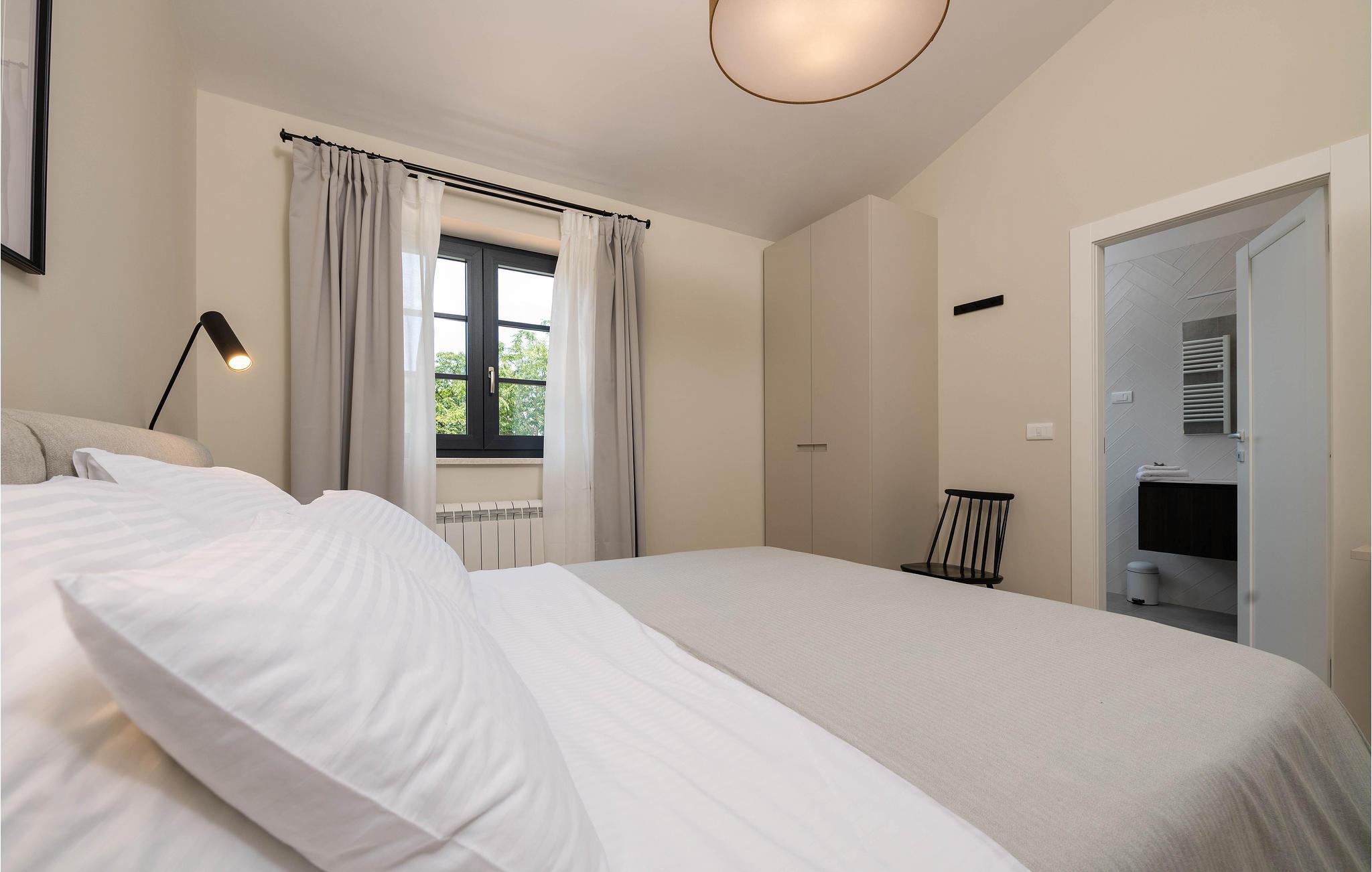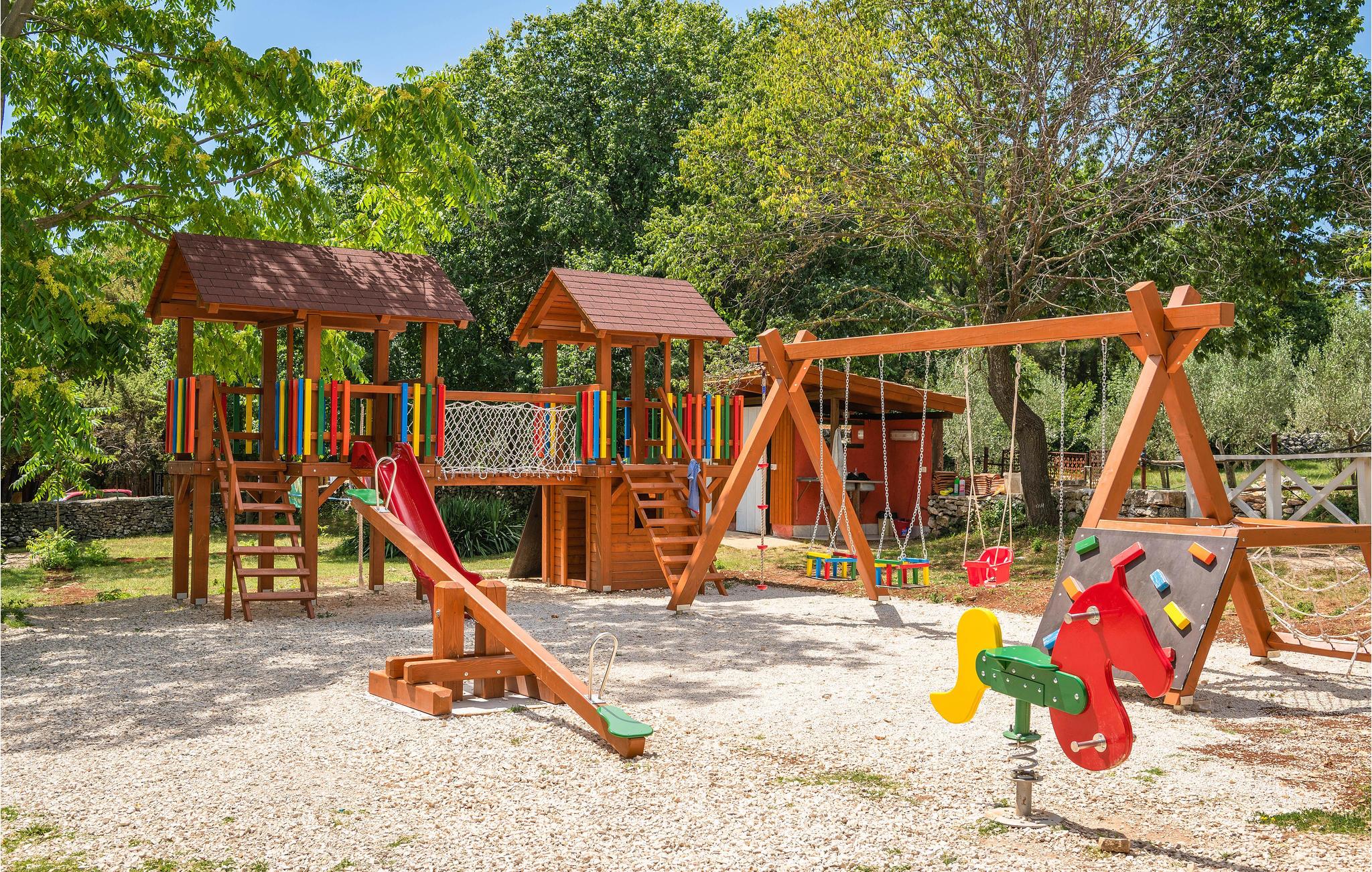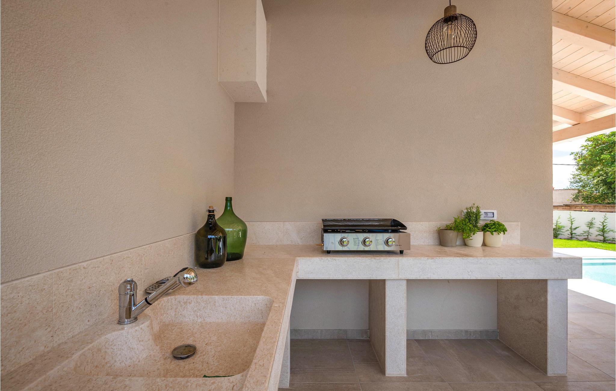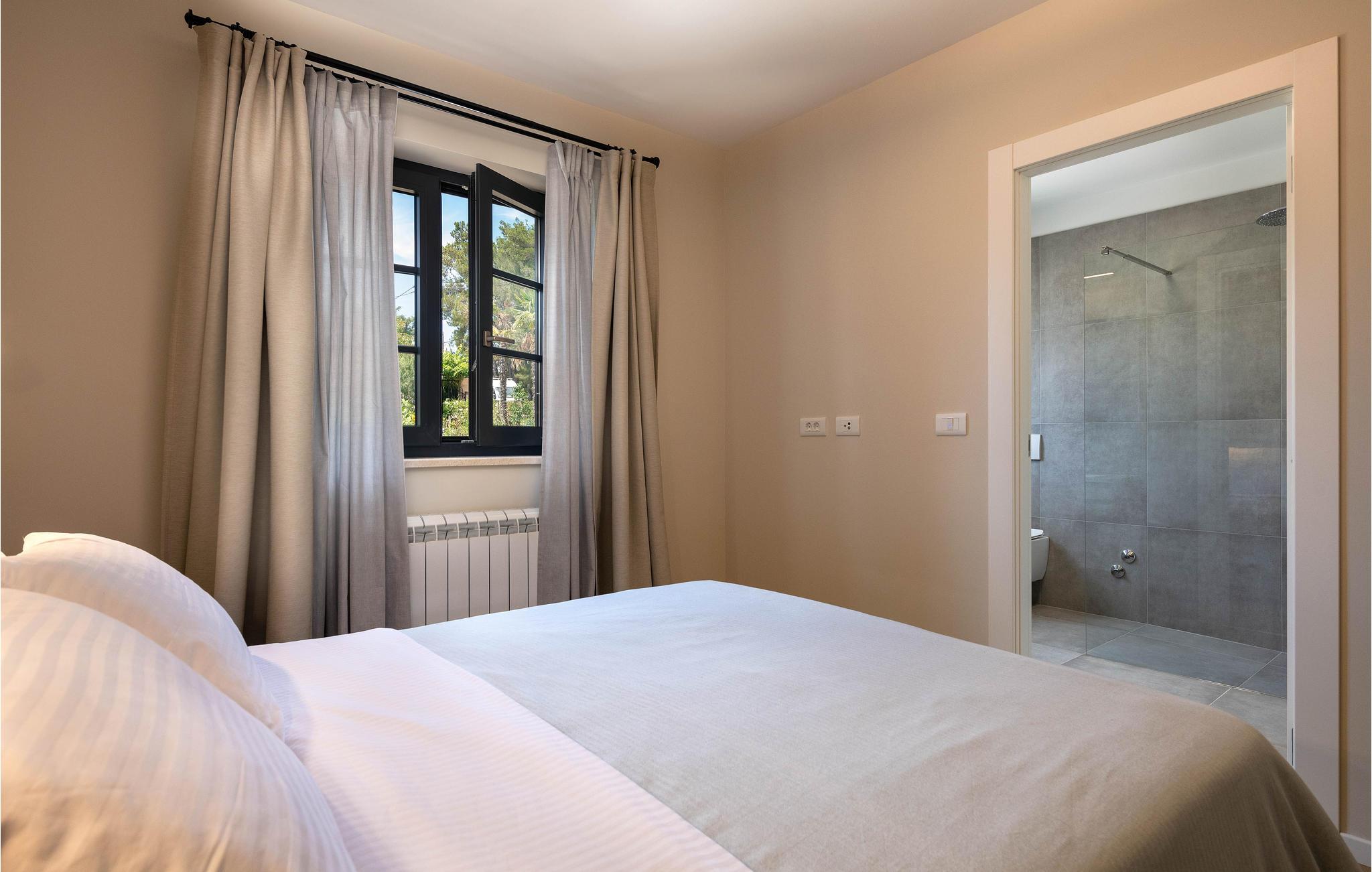 Wenn Sie in einer ruhigen natürlichen Umgebung vollkommen entspannen möchten, ist dieses fantastische Ferienhaus die ideale Wahl für Ihren Urlaub. Es befindet sich in Manjadvorci, einem kleinen Ort auf halbem Weg zwischen den Städten Labin und Pula. Die Innenräume sind mit Qualität und Stil eingerichtet und vollständig an die heutigen Standards angepasst. Der umzäunte Garten wird von einer großen überdachten Terrasse und einem Pool mit Hydromassagedüsen dominiert. Neben dem eingezäunten Grundstück gibt es ein zusätzliches Grundstück mit vielen Einrichtungen zur Unterhaltung der Kleinsten. Die Eigentümer besitzen auch die Barba Tone Ranch, die sich in der Nähe des Hauses befindet und auf der Sie das Reiten lernen können. Für erfahrene Reiter empfehlen wir, die Umgebung bei organisierten Ausflügen mit Pferden oder Quad-Fahrzeugen zu erkunden. Es gibt auch einen kleinen Zoo auf der Ranch, in dem Ihre Kinder gerne Zeit mit Haustieren verbringen. Besuchen Sie den Adrenalinpark Glavani, die Höhle Feštinsko kraljevstvo, Uvala Blaz und Krnicki Porat und entdecken Sie das traditionelle gastronomische Angebot dieser Gegend. Besuchen Sie unbedingt die Touristenzentren von Rovinj, Porec, Rabac, aber auch das antike Pula, das für sein reiches kulturelles Erbe bekannt ist.