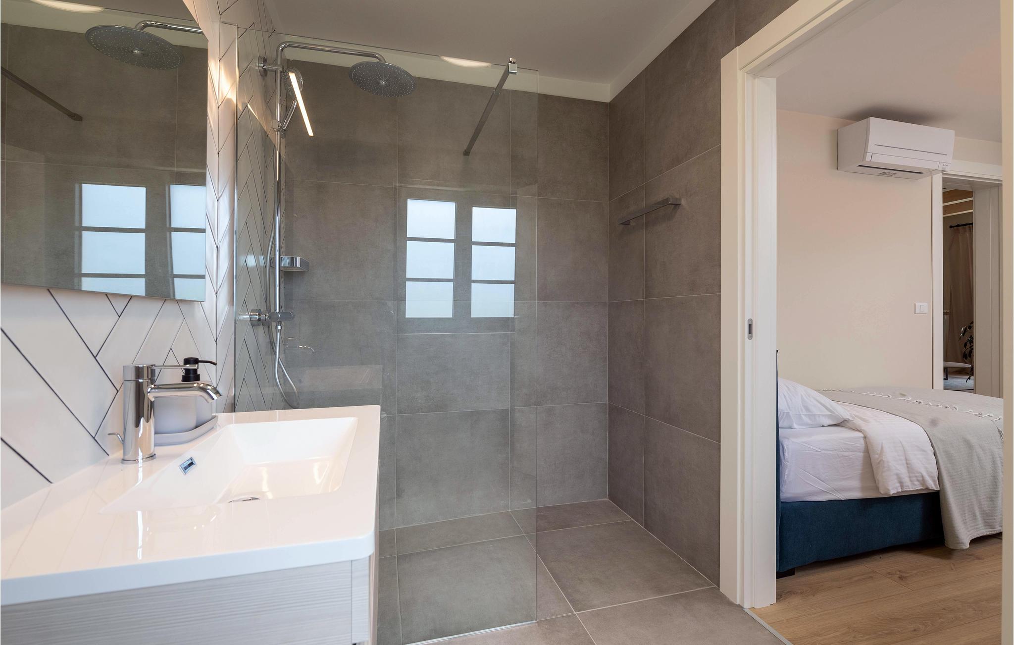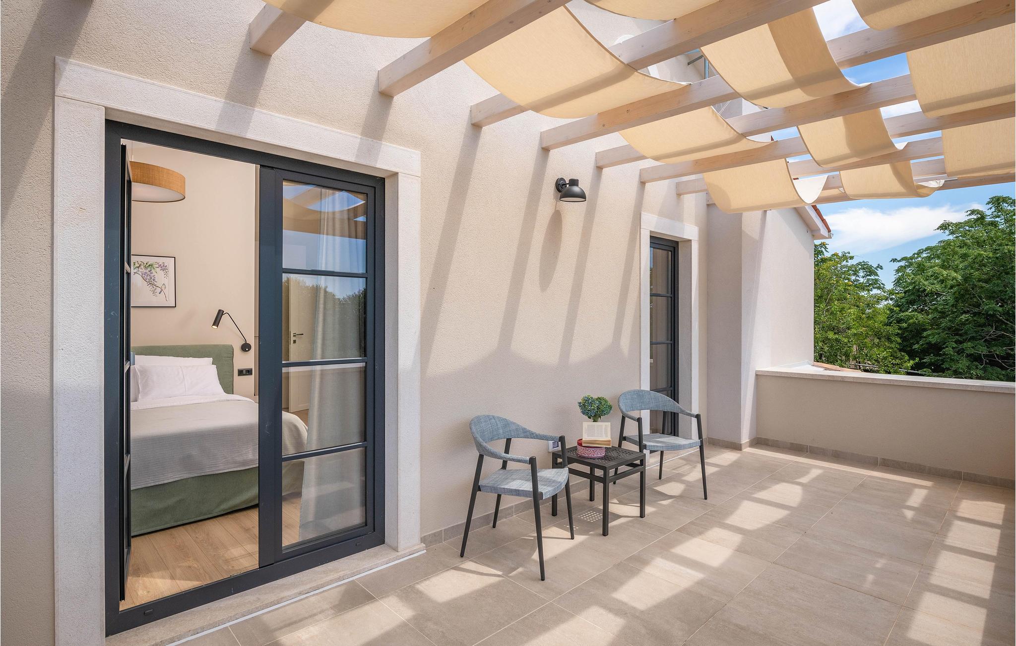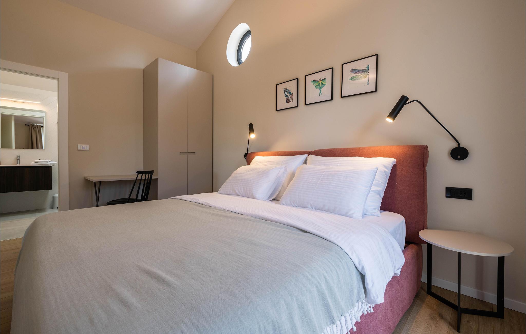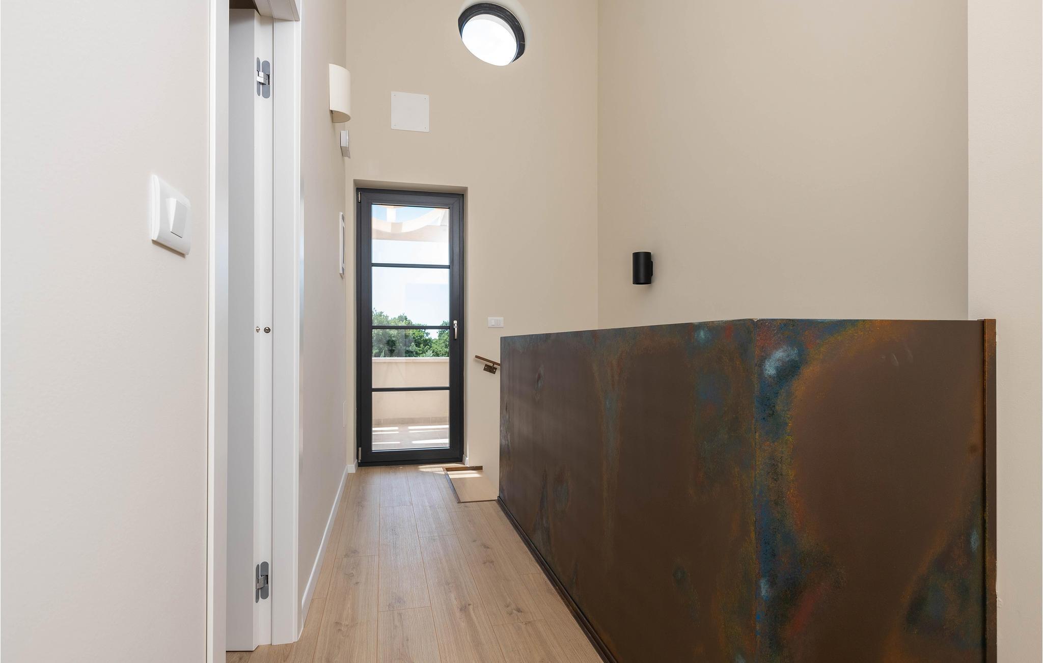 Wenn Sie in einer ruhigen natürlichen Umgebung vollkommen entspannen möchten, ist dieses fantastische Ferienhaus die ideale Wahl für Ihren Urlaub. Es befindet sich in Manjadvorci, einem kleinen Ort auf halbem Weg zwischen den Städten Labin und Pula. Die Innenräume sind mit Qualität und Stil eingerichtet und vollständig an die heutigen Standards angepasst. Der umzäunte Garten wird von einer großen überdachten Terrasse und einem Pool mit Hydromassagedüsen dominiert. Neben dem eingezäunten Grundstück gibt es ein zusätzliches Grundstück mit vielen Einrichtungen zur Unterhaltung der Kleinsten. Die Eigentümer besitzen auch die Barba Tone Ranch, die sich in der Nähe des Hauses befindet und auf der Sie das Reiten lernen können. Für erfahrene Reiter empfehlen wir, die Umgebung bei organisierten Ausflügen mit Pferden oder Quad-Fahrzeugen zu erkunden. Es gibt auch einen kleinen Zoo auf der Ranch, in dem Ihre Kinder gerne Zeit mit Haustieren verbringen. Besuchen Sie den Adrenalinpark Glavani, die Höhle Feštinsko kraljevstvo, Uvala Blaz und Krnicki Porat und entdecken Sie das traditionelle gastronomische Angebot dieser Gegend. Besuchen Sie unbedingt die Touristenzentren von Rovinj, Porec, Rabac, aber auch das antike Pula, das für sein reiches kulturelles Erbe bekannt ist.