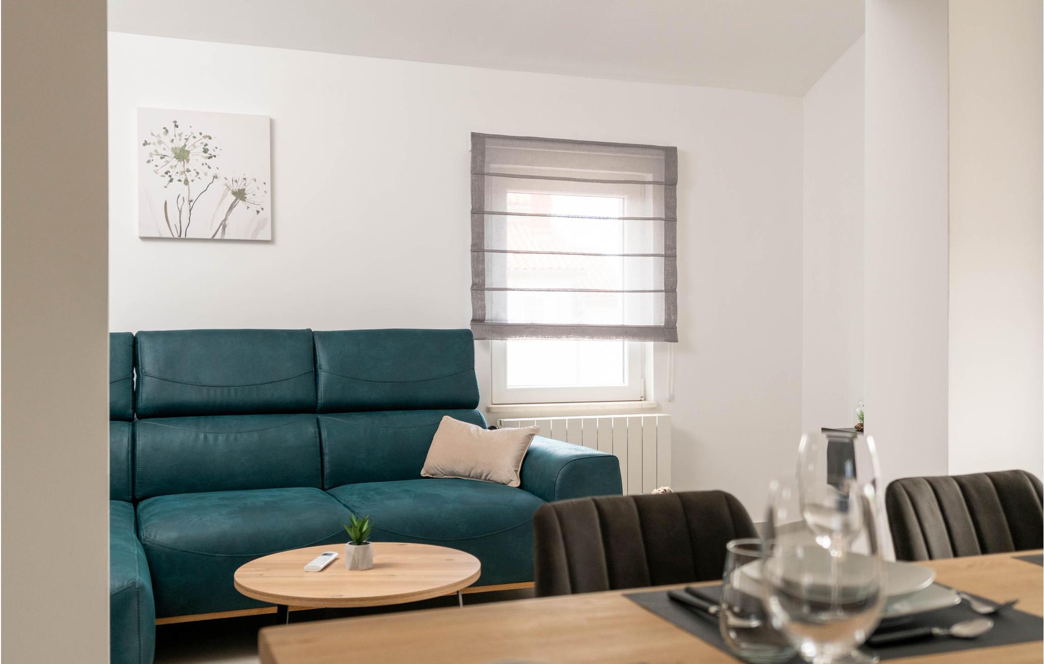 Die moderne Ferienwohnung heißt Sie in Prhati willkommen und empfängt Sie mit einer komfortablen und schönen Einrichtung, die gleich das Gefühl von zuhause ausstrahlt. Genießen Sie das offene Design der dunklen Küche, wo Sie gemeinsam an der Kochinsel die Zutaten für Ihre Gerichte schnippeln können oder im benachbarten Wohnbereich die Beine hochlegen können.