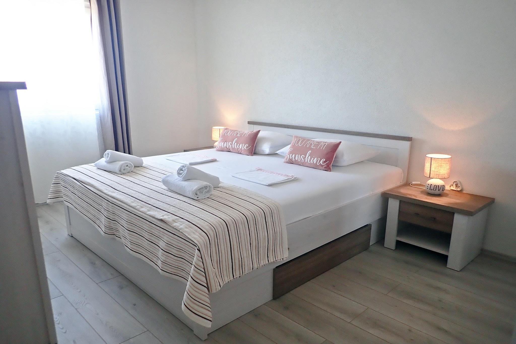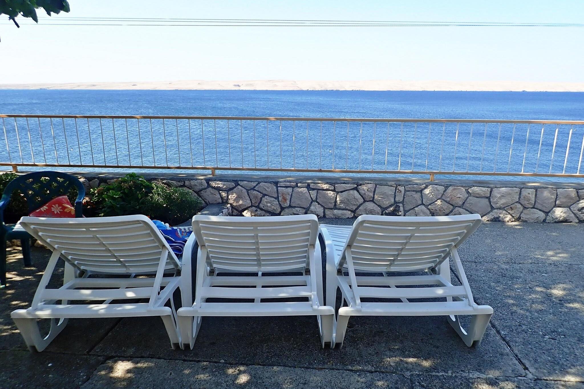 Prime location: bright and modern furnished holiday apartment, only 30 m from the beach and the sea. Enjoy the beautiful sea view from your terrace. In addition, there are sun laungers at the sea beach, which you reach over a view steps down only. The apartment is well equipped and has everything you need for a successful holiday. Sveta Marija Magdalena is located on the coast of the Velebit Canal, about 16 kilometers north of Starigrad Paklenica. Supermarkets, restaurants, cafes, fruit and vegetable markets can be found there. A nearby small shop and a restaurants you will find in the village 2 - 3 km from the holiday home. Details included: Consumption-based energy costs, bed linen, towels, final cleaning, WiFi, tourist tax, registration fee. Activities nearby: The Paklenica National Park, which extends to the sea, is located in the southernmost part of Velebit, the largest mountain range in the Dinaric massif. Speleologists, climbers, hikers, botanists and active hikers get their money's worth here, as do mountain bikers. The main attractions of the park are the two breathtaking gorges Velika and Mala Paklenica with many unusual karst relief shapes and several caves that stretch to the sea from dizzying heights. There the long pebble beaches and the blue sea await all water sports enthusiasts and for underwater fans there is also much to see while snorkeling or diving. Outdoor highlights in the region include canoe safaris and boat trips on the Zrmanja River. The cultural metropolis of Zadar can be reached after approximately 60 kilometers, the historic village of Nin is approximately 70 kilometers away. For an interesting day out, we recommend both, as well as a trip to the famous Plitvice lakes. Not suitable for people with reduced mobility. The beach is accessable via stairs only. The house is situated besides the coastal road, but the apartment in the lower groundfloor, so it is quiet.