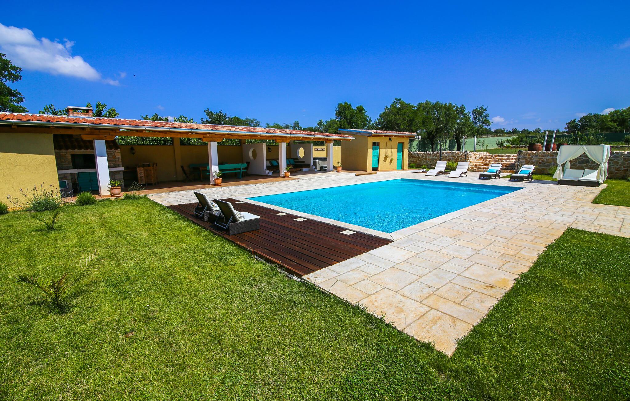 Gönnen Sie sich eine luxuriöse Auszeit in diesem großzügigen Ferienhaus mit Pool, Tennisplatz und zahlreichen Extras.