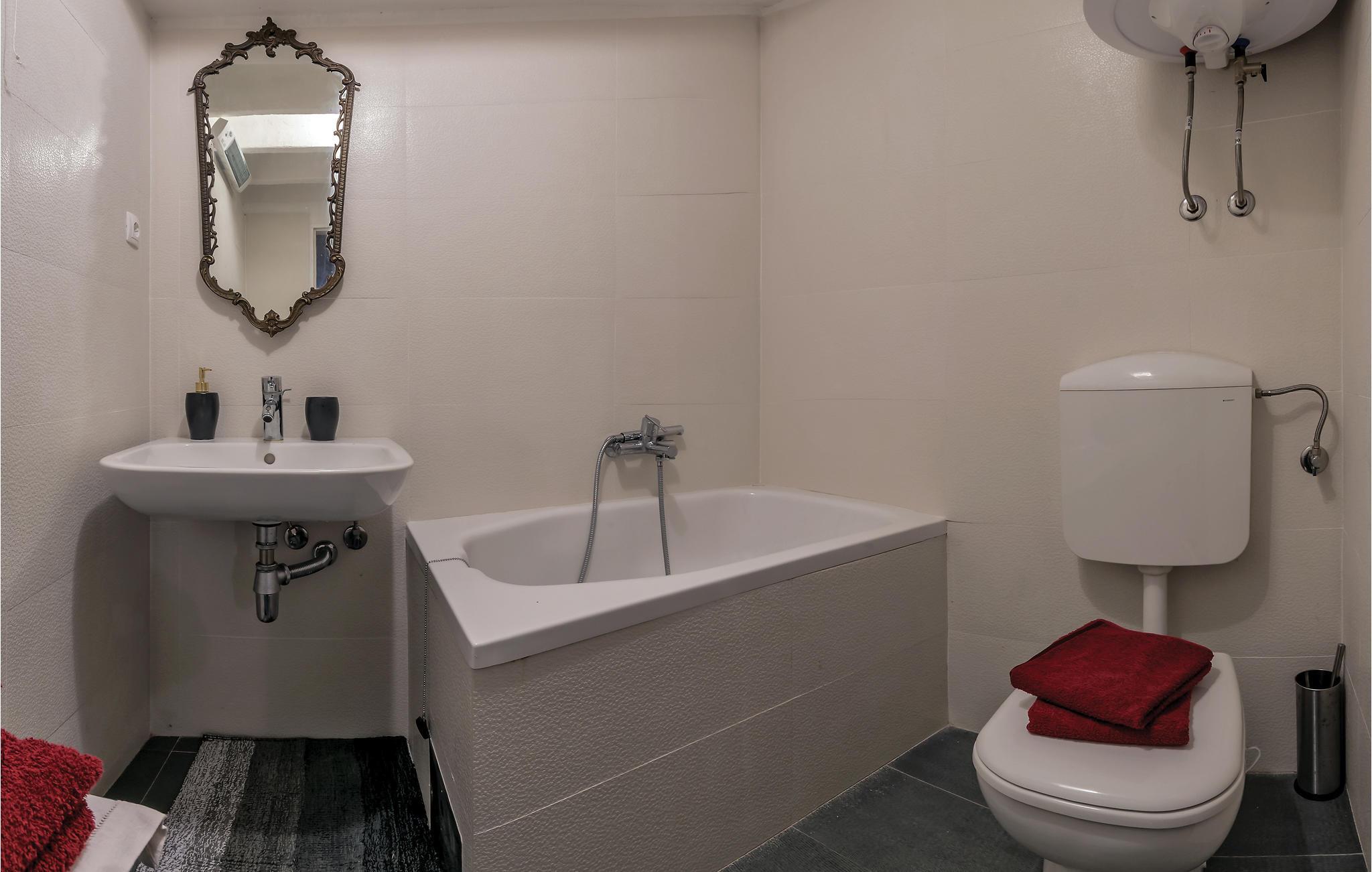 Badezimmer 5m2 (nr. 1) - WC. Warmes und kaltes Wasser. Badewanne