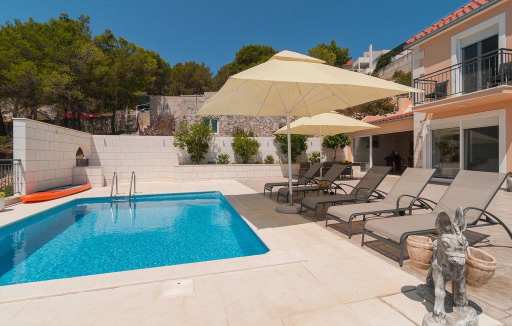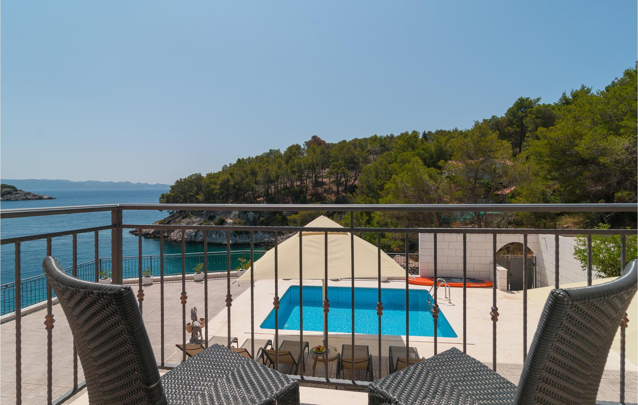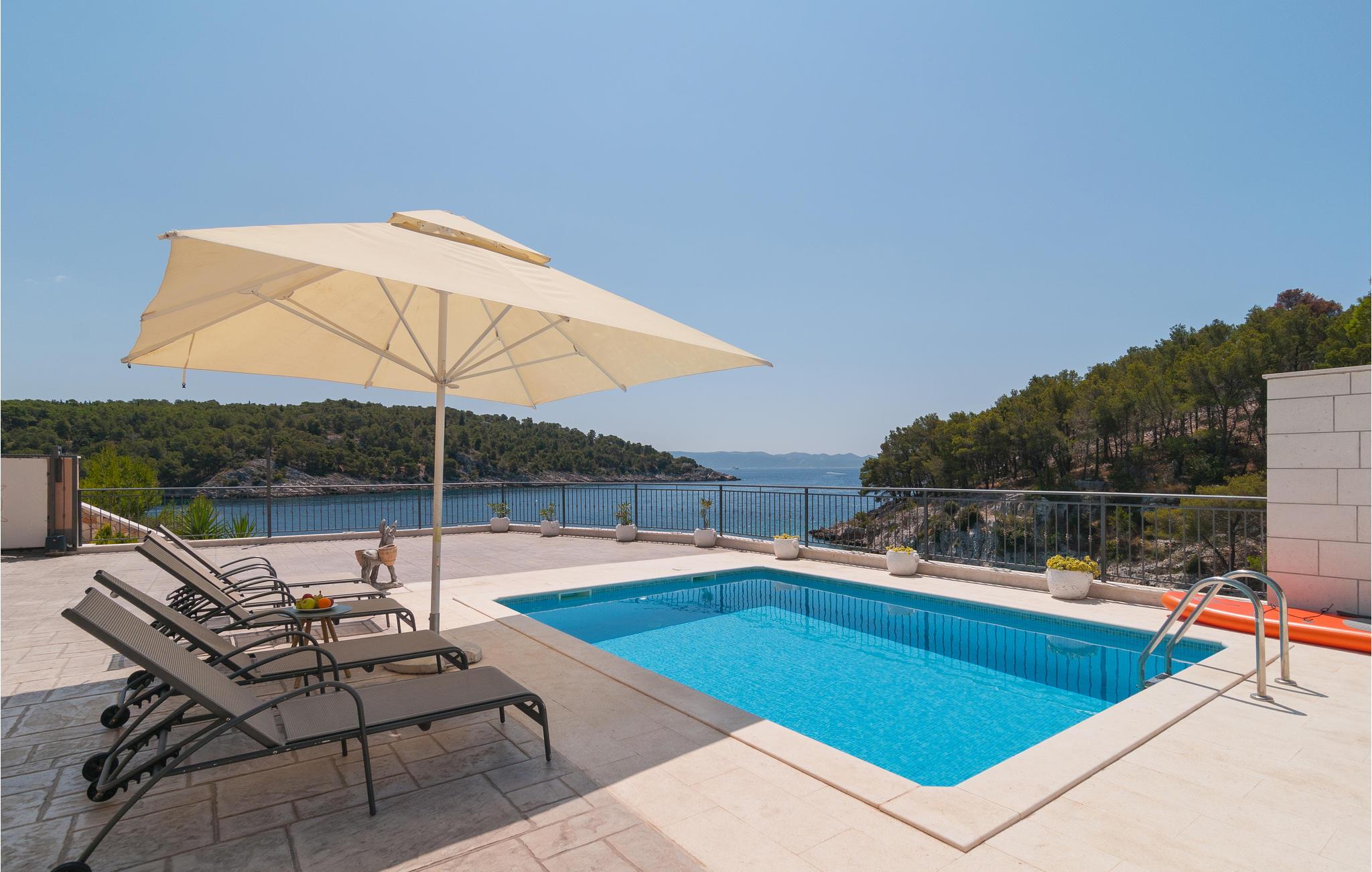 In Milna auf der Insel Brac und fast direkt am Meer befindet sich dieses traumhafte Ferienhaus mit eigenem Pool und wunderschöner Aussicht. Es bietet 6 Personen Platz. Im Erdgeschoss verfügt es über ein Wohnzimmer mit Küche und Essbereich sowie ein Badezimmer, während im Obergeschoss 2 Schlafzimmer mit 2 weiteren Badezimmern sind. Auf dem umzäunten Grundstück, neben dem Pool, steht Ihnen ein Außengrillbereich mit Tisch und Stühlen zur Verfügung.