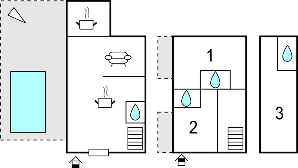 Badezimmer 7m2 (nr. 3) - WC. Warmes und kaltes Wasser. Dusche