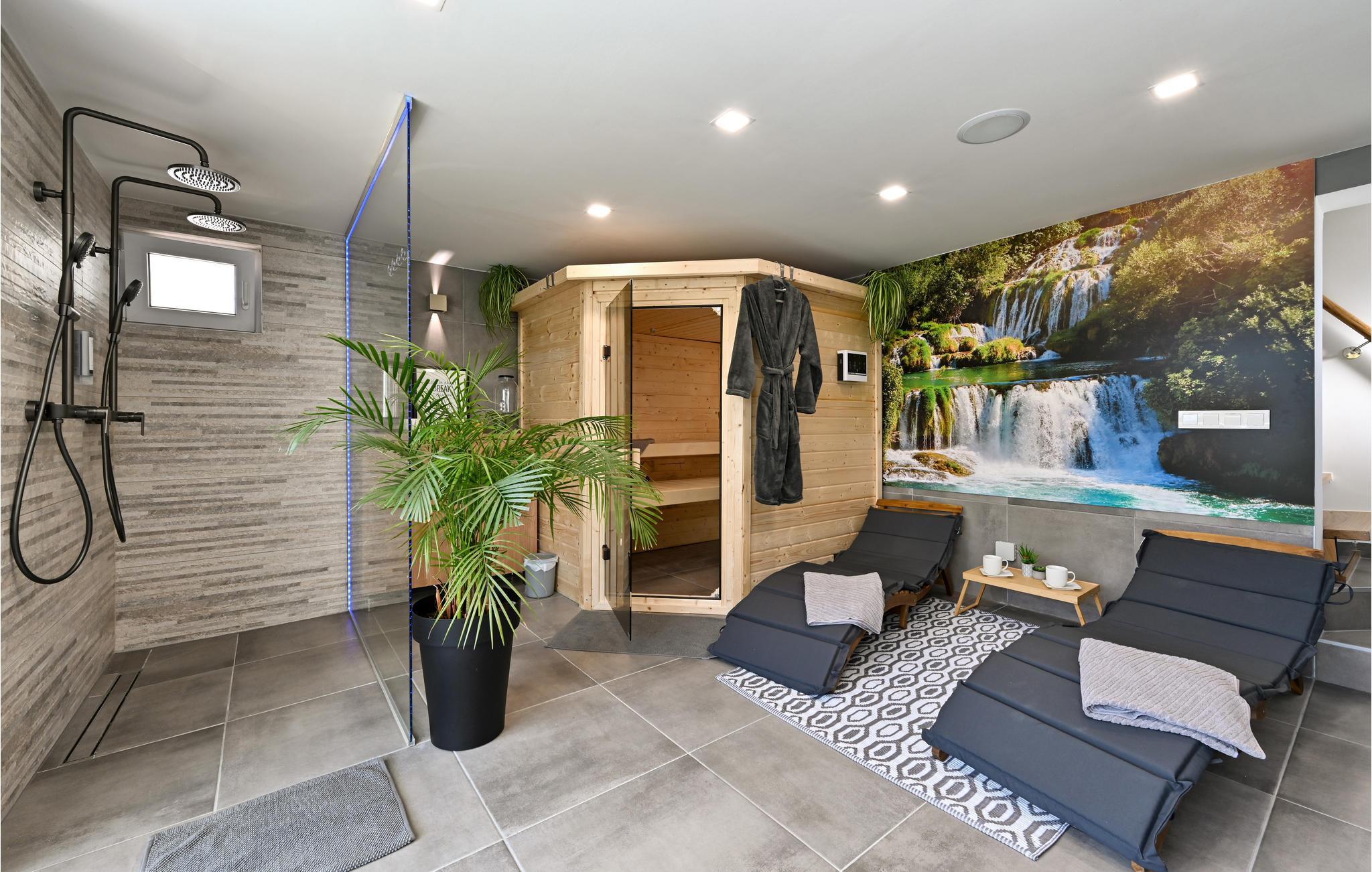 Gönnen Sie sich eine Auszeit von Ihrem hektischen Alltag und fahren auf das Land, das Ihnen Ruhe und Erholung verspricht. Genießen Sie mit Ihrer Familie oder einem befreundeten Paar entspannte Tage in diesem schön dekorierten und einladenden Ferienhaus, das Ihnen Komfort und Behaglichkeit verspricht. Das ansprechende Ambiente lädt Sie zu gemeinsamen Aktivitäten, wie das Kochen oder Relaxen in der Sauna ein. Baden Sie auch im Freien im Whirlpool oder dem Pool im Garten und atmen die frische Luft ein.