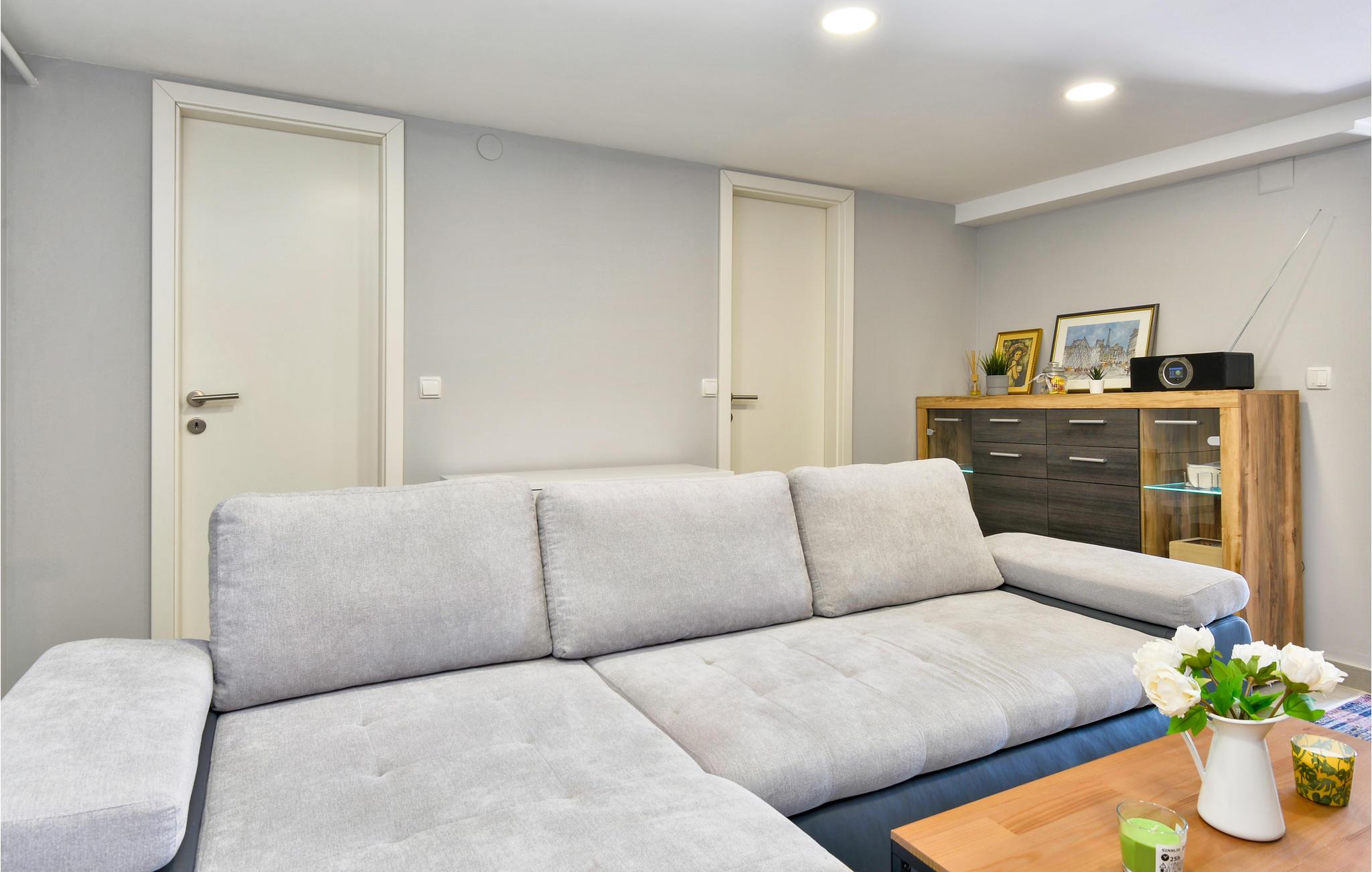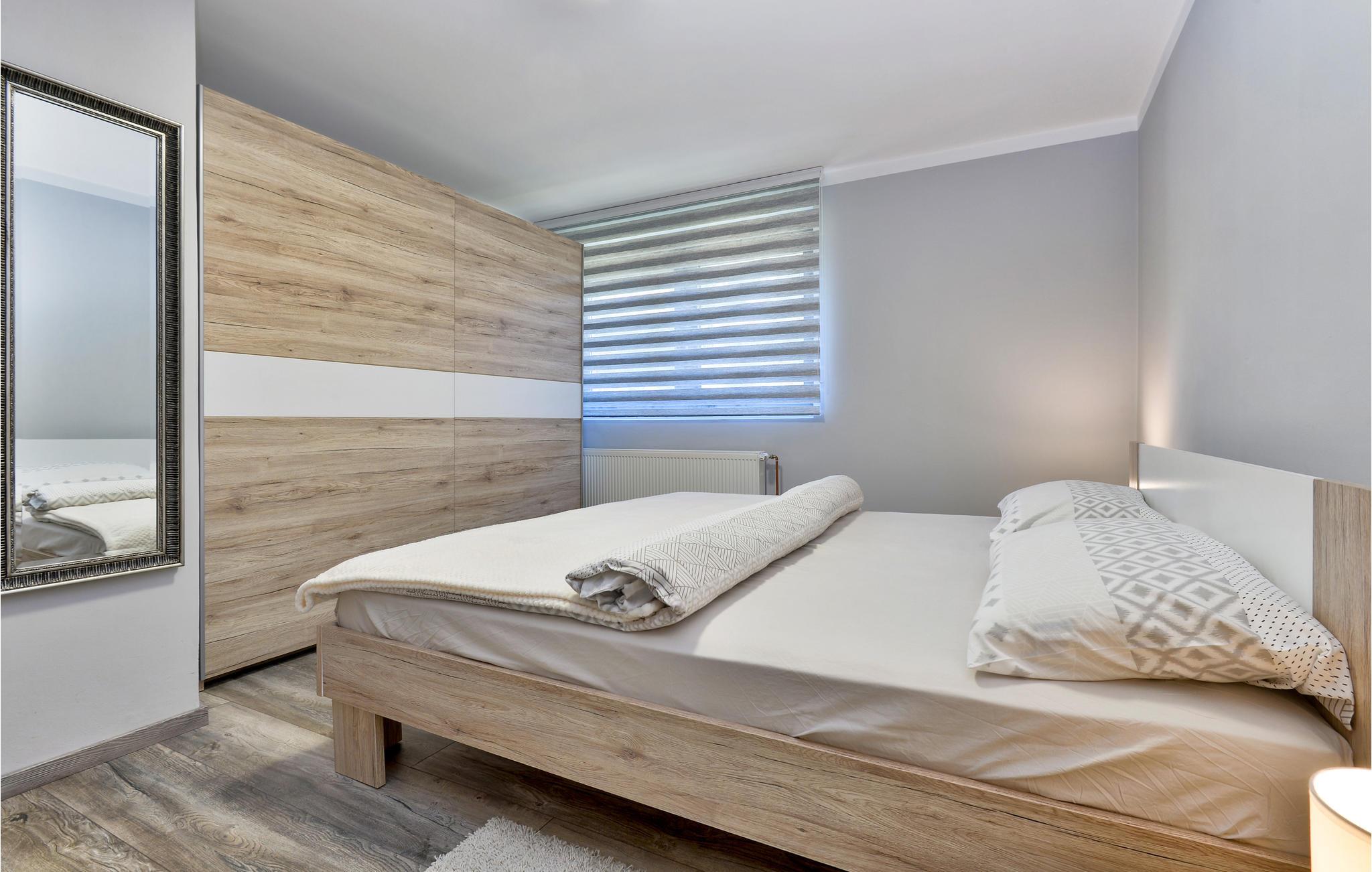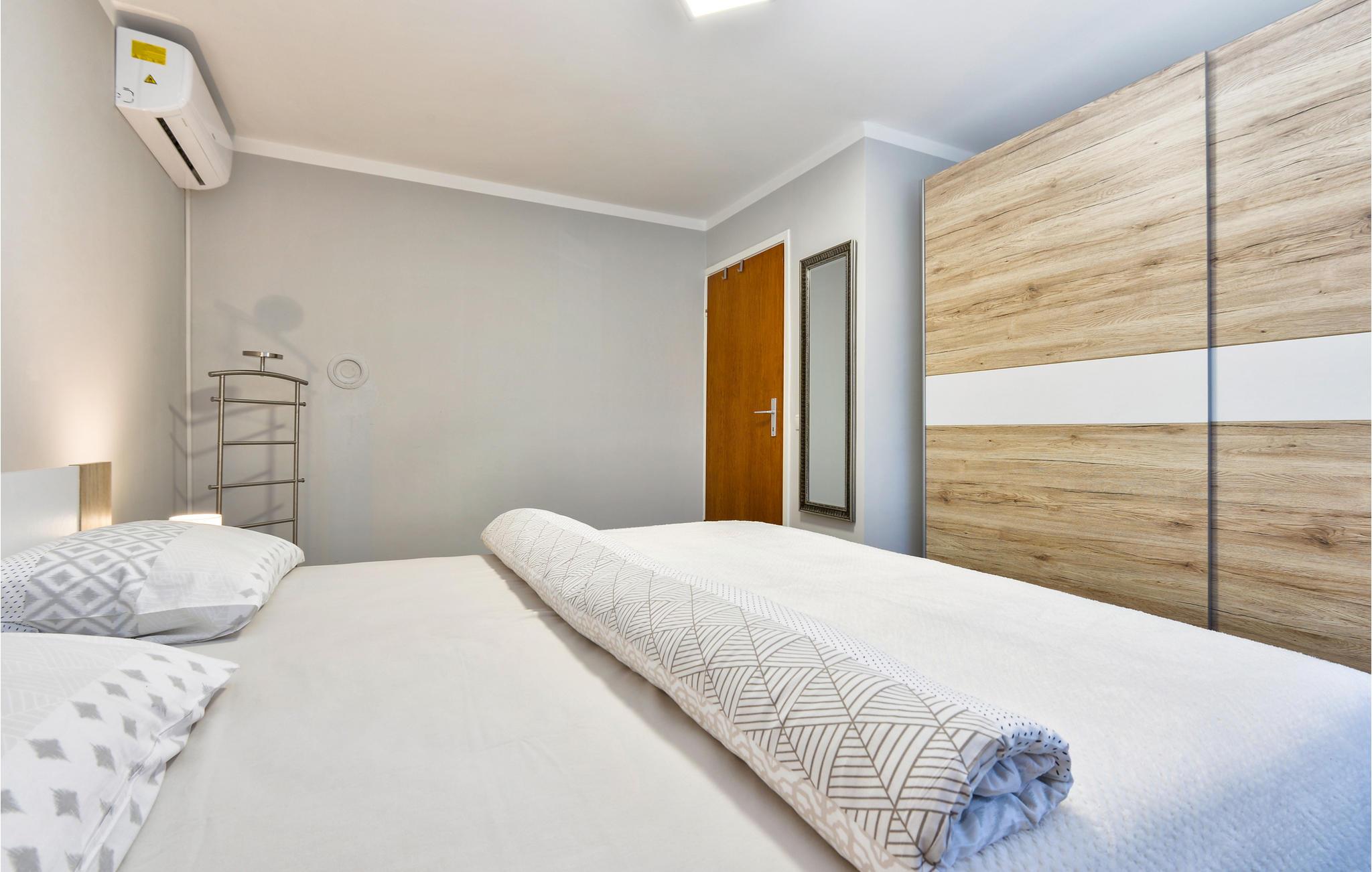 Das komfortable und gemütliche Haus bietet mit 2 Schlafzimmern, die sich im Obergeschoss befinden, Platz für die ganze Familie. Im Erdgeschoss liegt die moderne und gut ausgestattete Küche, das Wohnzimmer mit bequemen Sofas und ein Bad. Dank Klimaanlage genießen Sie hier auch in heißen Sommern angenehme Temperaturen.