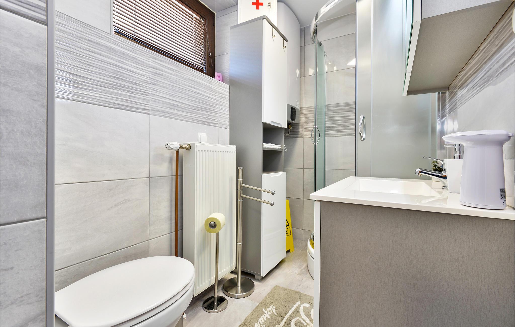 - WC mit warmem und kaltem Wasser, Dusche