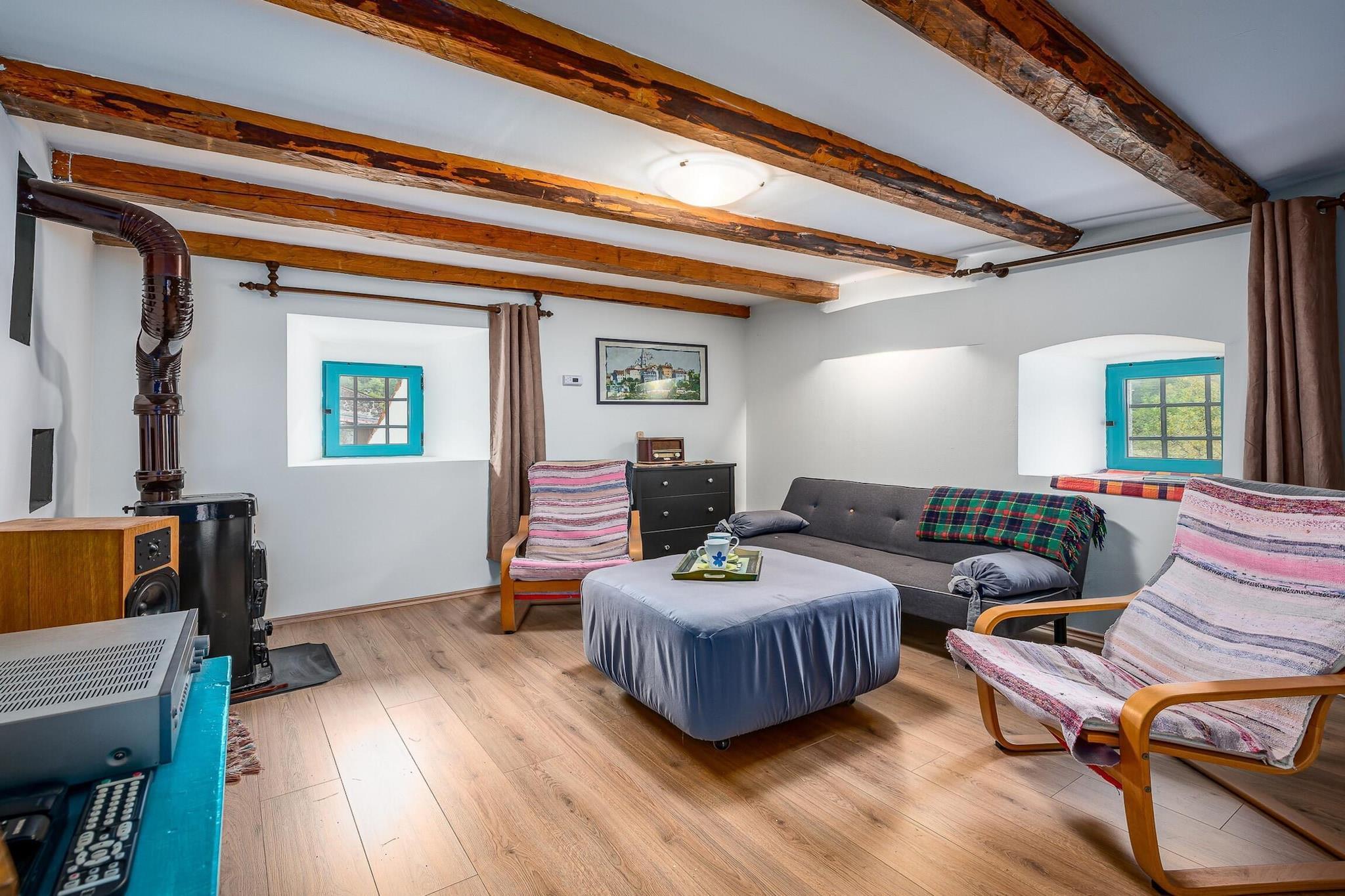 The house in Dane has 1 bedrooms and capacity for 4 persons. Accommodation of 50 m² comfortable and has an exterior, It has mountain and garden. The property is located 0 m nature reserve "Ucka", 20 km city "Buzet", 20 km supermarket "Buzet", 25 km from the restaurant "Lupoglav", 30 km from the restaurant "Buzet", 30 km bus station "Buzet", 35 km sand beach "Opatija", 35 km rock beach "Icici", 35 km thermal springs "Istarske toplice", 50 km ski resort "Platak", 60 km airport "Krk", 60 km train station "Trst", 60 km water park "Istralandia", 80 km airport "Trst", 80 km water park "Aqacolors Porec" and it is located in a a family-friendly zone and in a beautiful rural area. The accommodation is equipped with the following items: garden, outdoor furniture, 30 m² terrace, barbecue, fireplace, iron, internet (Wi-Fi), hair dryer, heat pump, air-conditioned, open-air parking in the same building, 1 TV. The independent kitchen, of hotplate of glass ceramics, is equipped with refrigerator, freezer, dishes/cutlery, kitchen utensils, coffee machine, toaster and kettle.