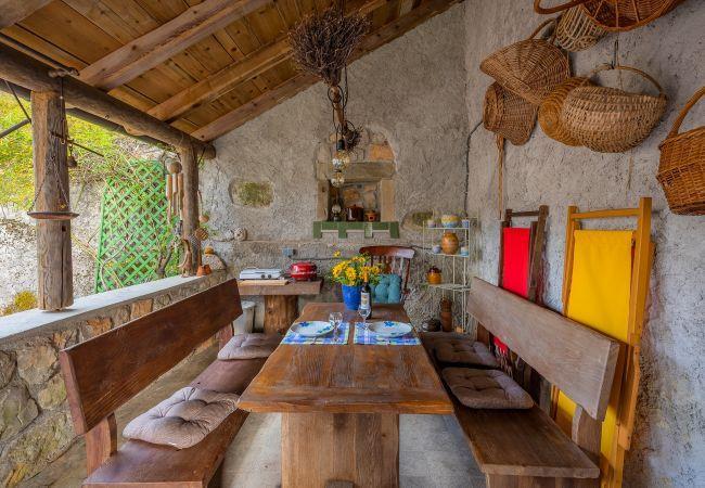 The house is comfortable, has an exterior, and is 60 m² big. It has views of the mountain and the garden.