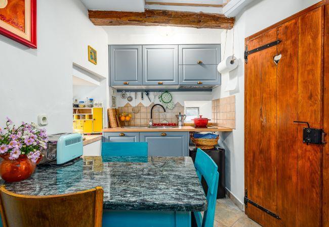 The accommodation is equipped with the following items: garden, garden furniture, 30 m² terrace, fireplace, iron, internet (Wi-Fi), hair dryer, air conditioning (hot/cold), open-air parking the same building, 1 TV.