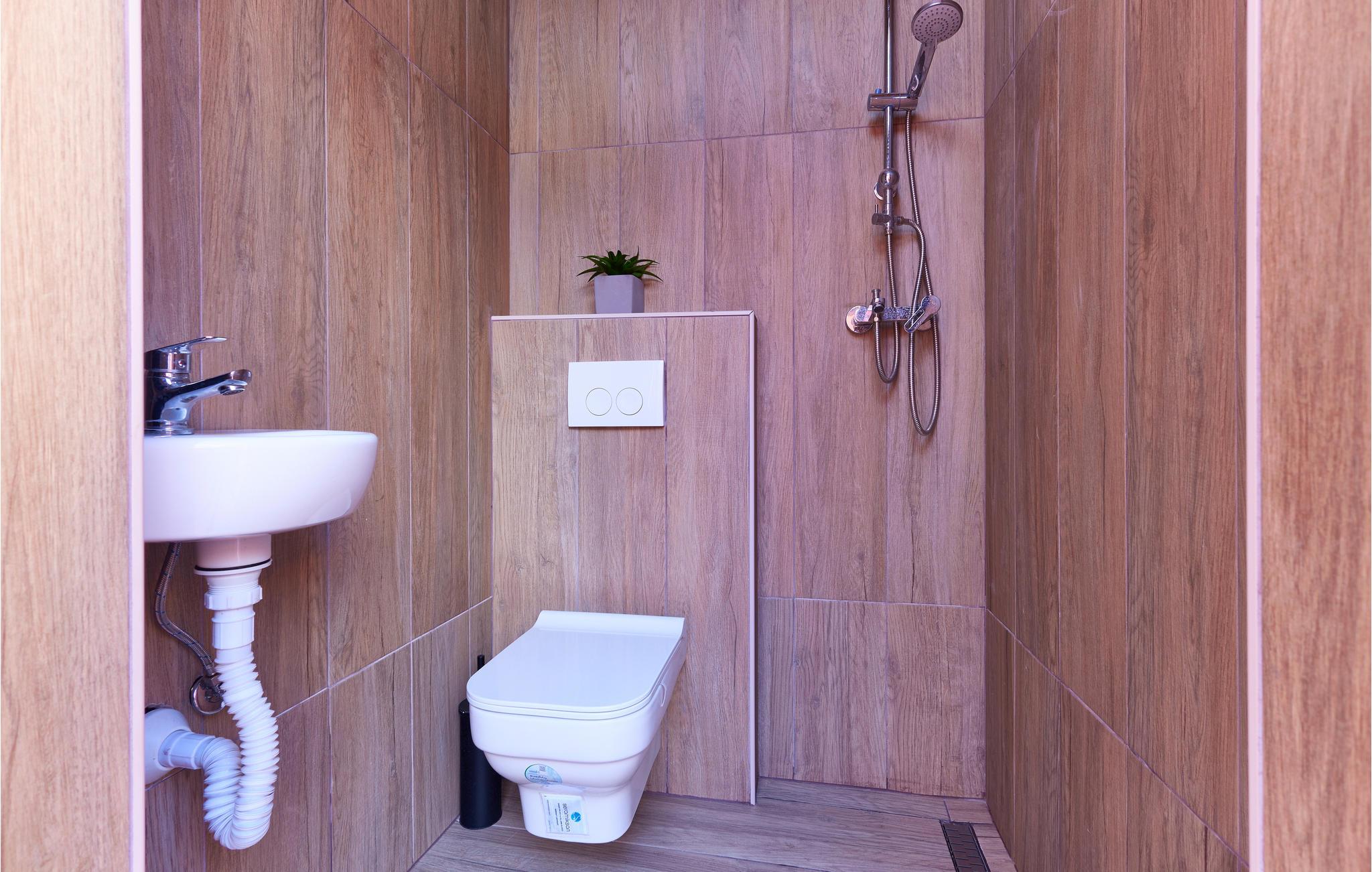 - WC mit warmem und kaltem Wasser, Dusche