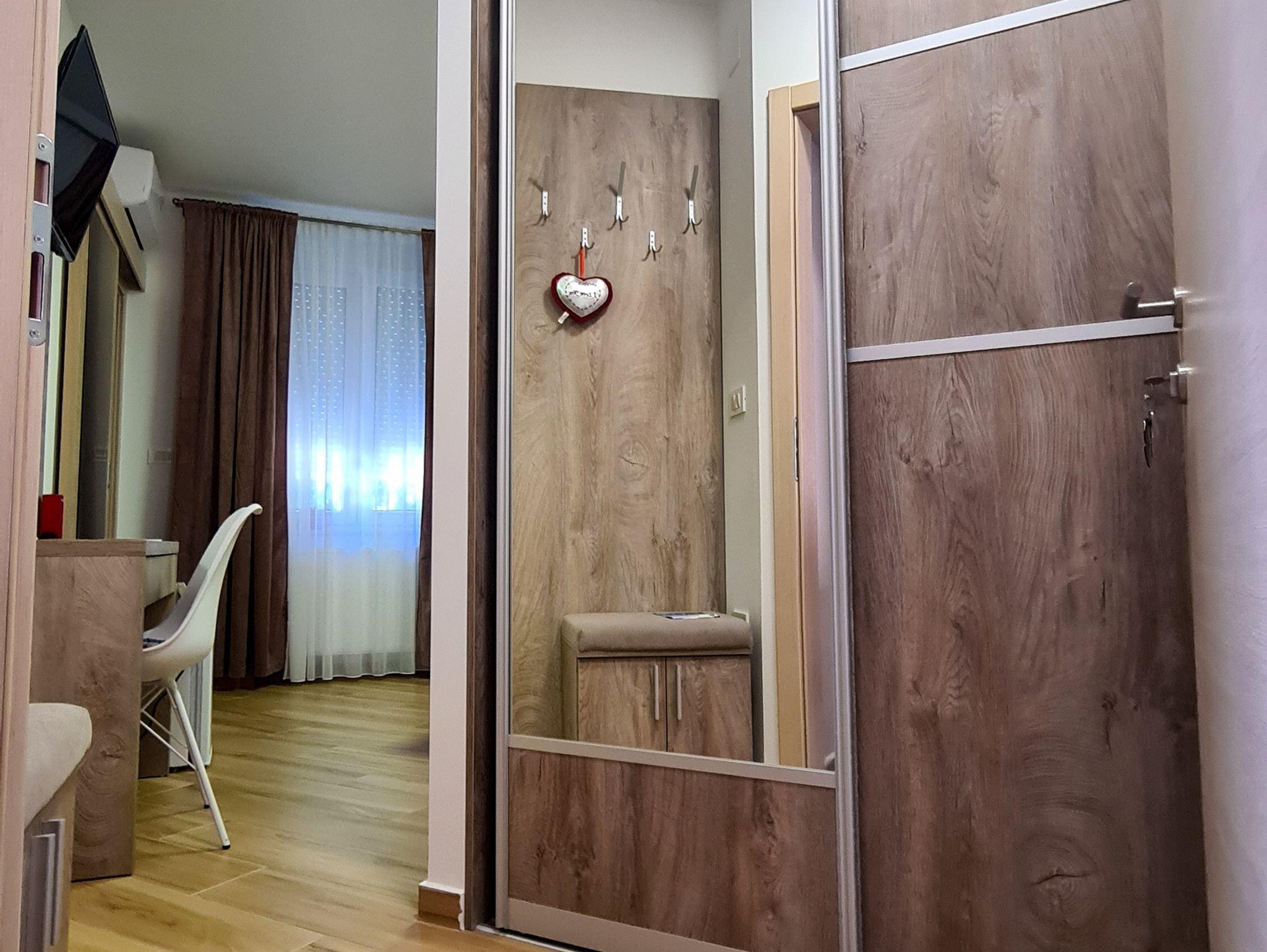 Zimmer bietet Platz für 2 Gäste. Die Betten sind in Schlafzimmern, die es 1 gibt, innerhalb einer Gesamtfläche von 20m2, angeordnet. Die Nutzung einer gemeinsamen Küche ist möglich. Die reservierte Unterkunftseinheit hat keinen Balkon und keine Terrasse. Die reservierte Unterkunftseinheit ist ein Zimmer mit eigenem Badezimmer mit der Möglichkeit der Nutzung einer Küche gegen Zuzahlung (der Preis ist auf der Seite definiert). IM PREIS INBEGRIFFEN: Kurtaxe, Endreinigung, Klimatisierung, Zentralheizung, Parkplatz, Internet, Föhn. VERBINDLICHE ZUSÄTZLICHE KOSTEN: Aufzahlung für Kurzaufenthalte (prozentualer Zuschlag pro Nächtigungsanzahl: 30% - 1, 20% - 2, 10% - 3). UNVERBINDLICHE ZUSÄTZLICHE KOSTEN: gemeinsame Küche (10,00 € pro Nacht), Wäschewaschen (5,00 € Waschen). Die Verfügbarkeit zusätzlicher Dienstleistungen in Ihrem reservierten Termin und die Preise derselben (falls nicht aufgeführt) müssen im Voraus überprüft werden. Zusätzliche Dienstleistungen die in der Zahlungsaufforderung nicht aufgeführt sind werden direkt beim Vermieter bezahlt, angenommen der Gast nutzt auch diese. Ermäßigung auf den Grundpreis: Gratistag 28=25 (bei einem Aufenthalt von 28 oder mehr Tagen erhalten Sie 3 kostenlose Tage für den Aufenthalt bis 31.12.26).