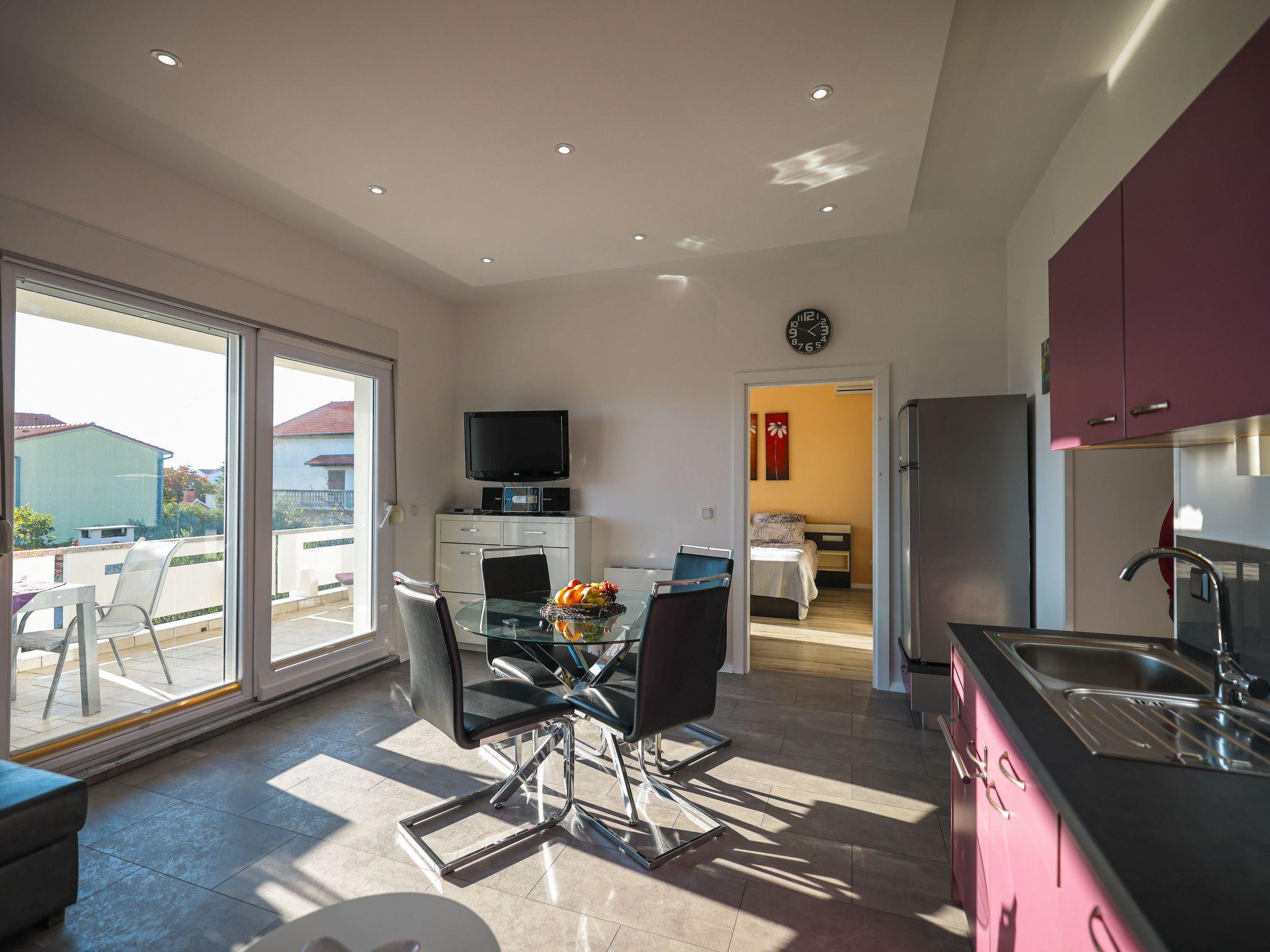 Our generously modernised holiday home is located in a quiet part of the village, without much traffic and with a view of the sea. The centre of Sukošan is approx. 500m and the sea approx. 200m from the holiday home. The main beach "Dijeci raj" (children's paradise) is about 300m away, our self-built jetty is about 200m away (footpath).