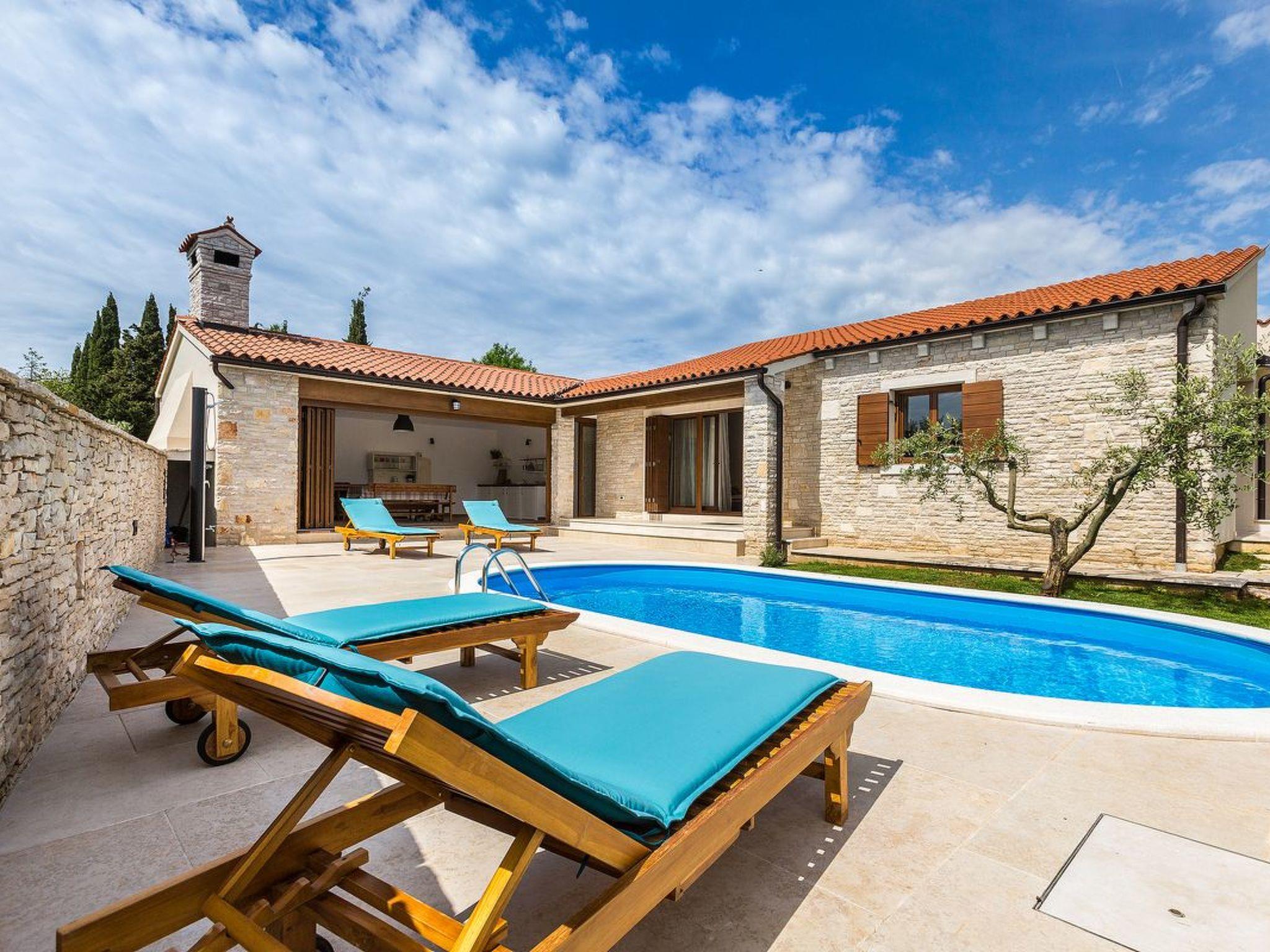 Peaceful countryside, fenced closed courtyard with olive trees, swimming pool and roofed terrace with big fireplace make this house an ideal choice for your next vacation. House is modern and fully equipped for maximum six people. It provides three double bedrooms. Living room is combined with kitchen and has an exit to the beautiful terrace with swimming pool and deck chairs. Kitchen is fully furnished with all the necessary equipment. House provides three bathrooms. Whole house is air conditioned. You also have washing machine, TV/SAT and WiFi. Bed sheets and towels are included in price. Parking is in house courtyard. Pets are also welcomed (extra cost). Guests also have 4 bikes in price.