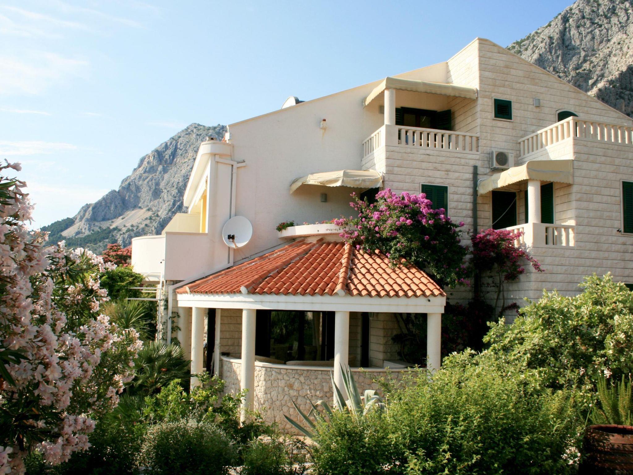 Villa Margitta****An oasis of peace at the Makarska Riviera Our Villa**** with its 5 exclusive apartments has only 150 m distance to the beach and offers a fascinating view over the sea and surrounding islands. It is fitted into a unique ambient with a beautiful garden, in which one can find all types of Mediterranean plants. A special charm is created by typical Dalmatian stonewalls, adjoining vineyards and diverse vegetation. The garden and yard were award winners of the Blue Flower for Croatia and the Sun Flower for Dalmatia in 2007. The Villa invites to spend restful and relaxing holidays in our comfortable and tasteful furnished apartments, which all have a balcony or terrace with sea view. Our beautiful terrace melted into the nature invites to spend relaxing hours and assures pure satisfaction. For more enjoyment we offer a tennis court to our guests, who like sports. Additionally, we have parking spaces and a guest’s barbecue.
