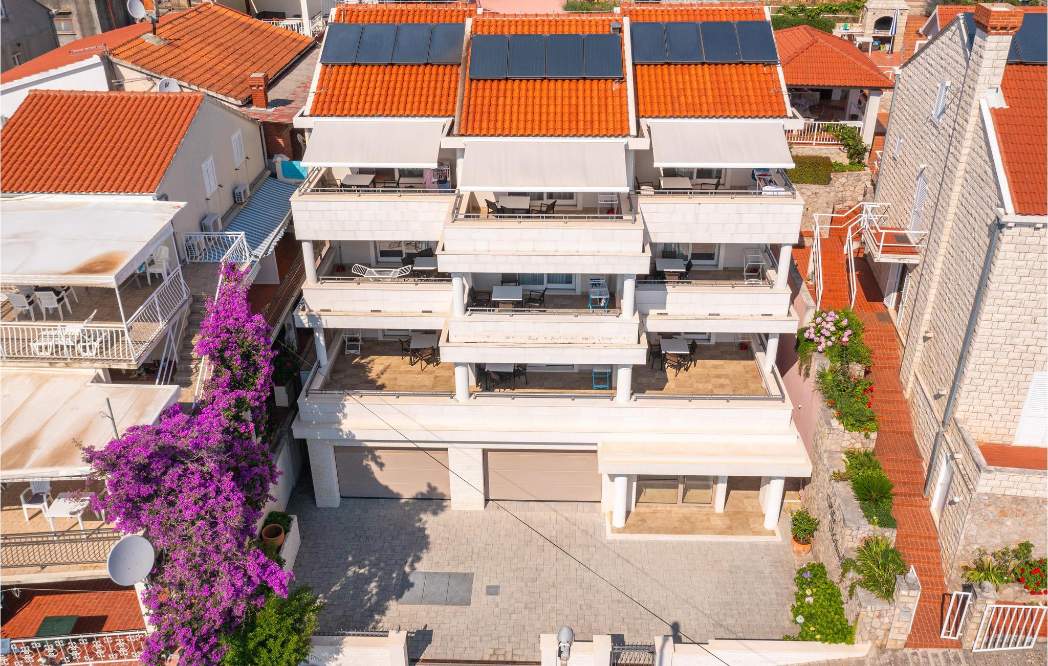 Anschließend können Sie sich im Gemeinschaftspool des Apartmenthauses erfrischen, sich in die Sonne legen und mit den übrigen Gästen ins Gespräch kommen. Erfreuen Sie sich auch der tollen Sonnenterrasse, die zum Meer ausgerichtet ist und Sie zum Verweilen einlädt. Am Abend können Sie am gemauerten Gemeinschaftsgrill leckere lokale Grillspeisen zubereiten und auf Ihrem Balkon mit Meerblick genießen.
