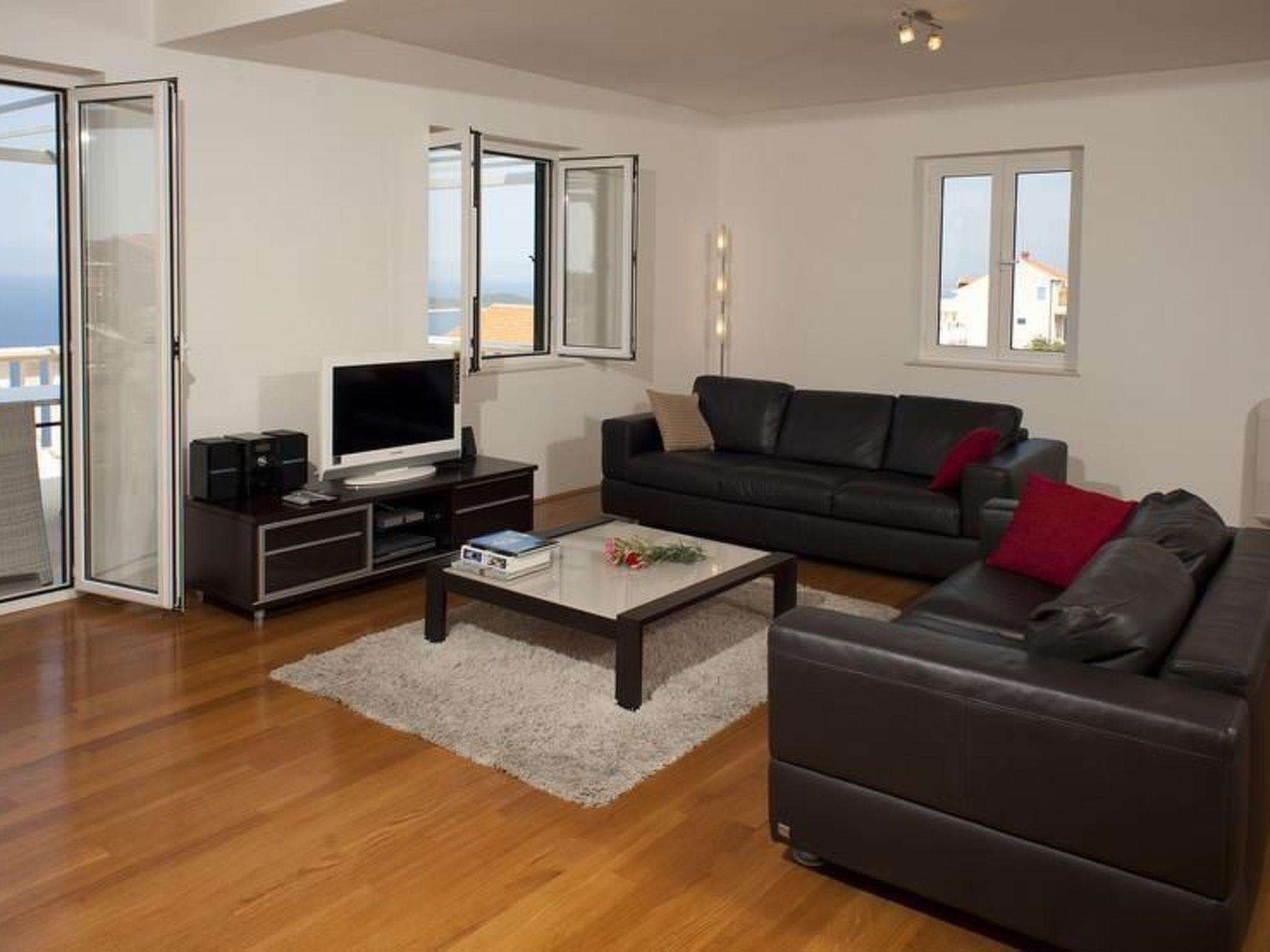 The outside space of this holiday house is just as inviting, offering exclusive use of a refreshing pool and a landscaped garden that invites relaxation and outdoor activities. Guests can enjoy leisurely afternoons on the terrace or sip their morning coffee on the balcony, soaking in the tranquil atmosphere. The property's outdoor amenities are designed to make the most of the beautiful Dalmatian climate.