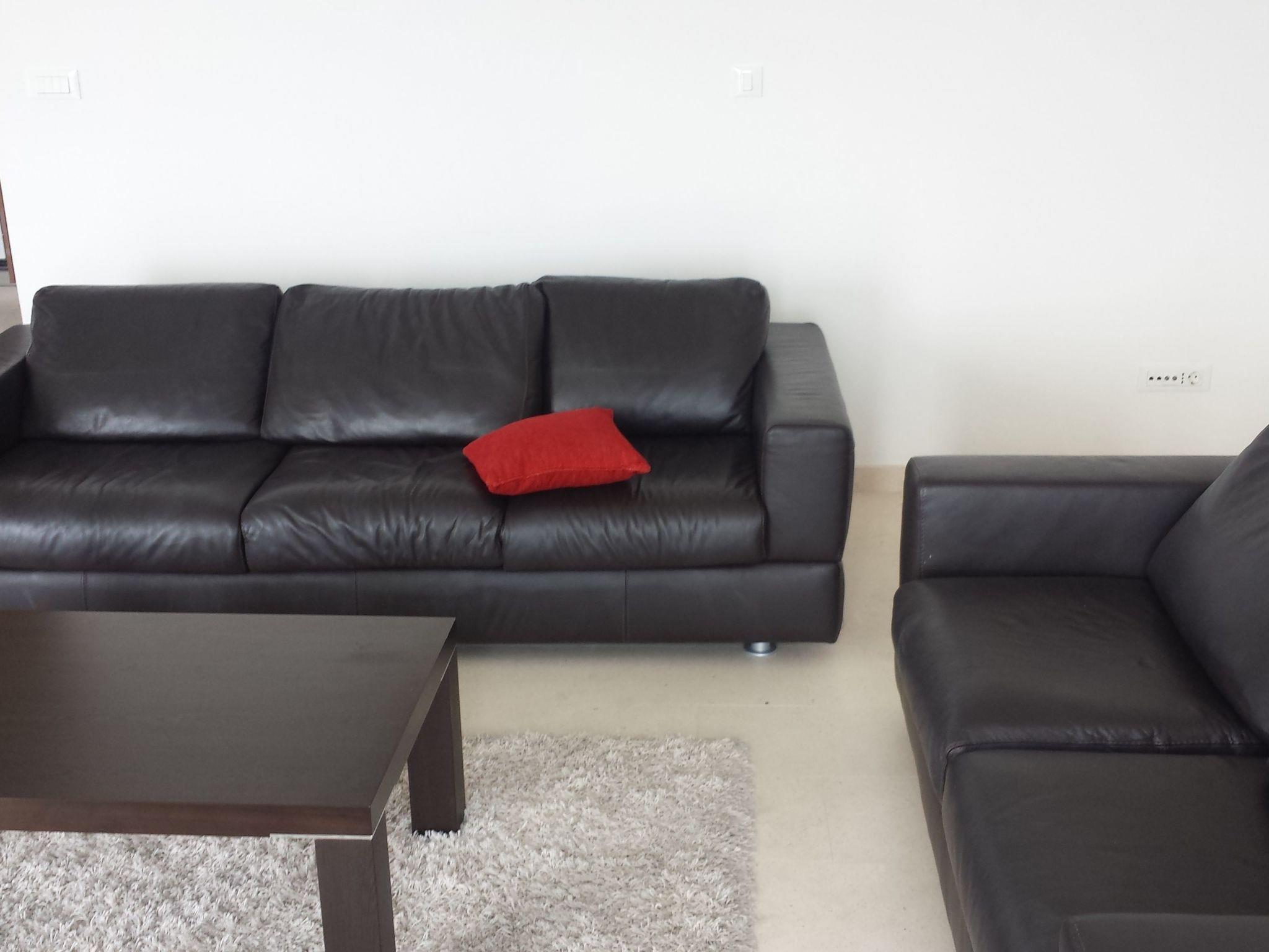 Step inside to find a luxuriously appointed interior where every detail caters to your comfort. The air-conditioned setting embraces you with cool tranquility, ensuring a pleasant escape from the summer heat. Lounge in the spacious living room, outfitted with plush leather sofas, while entertainment is guaranteed with a TV, DVD player, and stereo system. An open kitchen, adjacent to the living area, provides all the essentials for culinary exploration, including a ceramic hob, dishwasher, microwave, coffee machine, and electric kettle, making meal preparation a breeze.