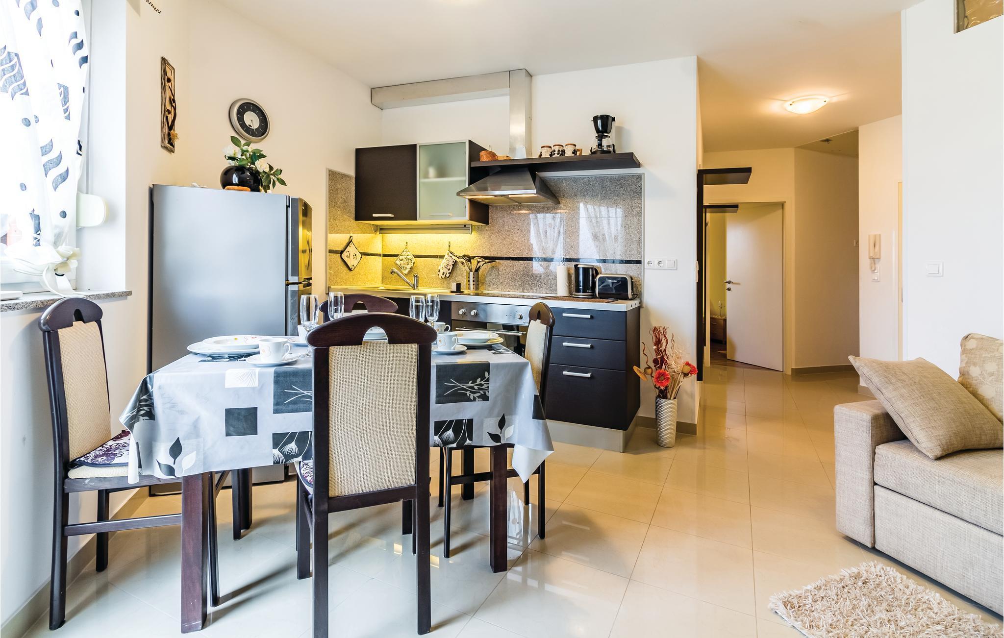 In Peroj, einer friedlichen Ortschaft, nicht weit von der antiken Stadt Pula entfernt, befindet sich diese Ferienwohnung im zweiten Stock eines Wohngebäudes. Die Innenräume sind harmonisch und mit liebevollen Details eingerichtet. Insbesondere wird Sie der Meerblick begeistern, den Sie vom Balkon aus haben. In der Nähe gibt es auch ein Wellnesscenter, für zusätzliche Entspannung und in etwa 1 km Entfernung können Sie die schönen Strände von Peroj genießen. Nutzen Sie die Gelegenheit und fahren zum Hafen von Fažana. Unternehmen Sie eine Bootsfahrt zum Nationalpark der Insel Brijuni mit einer Inselgruppe von 14 einzelnen Inseln. Genießen Sie die herrliche Natur in dieser Oase der Ruhe und erleben die harmonische Tierwelt.